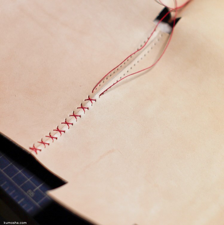 こちらも赤いステッチを施していきます。