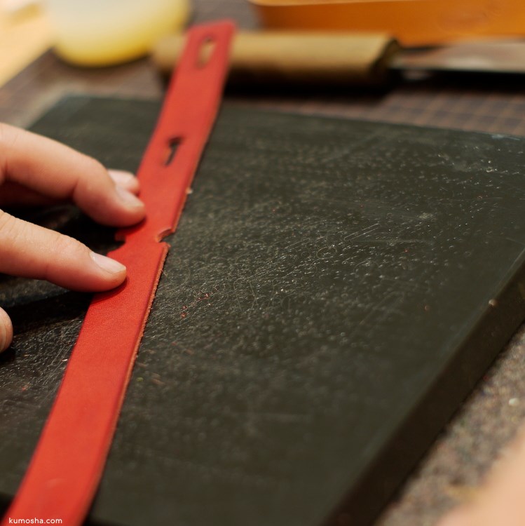 4日から毎日熊谷八木橋百貨店さんにて開催されている実演販売のため、日中に作業を行いました。お作り下のはトートバッグの持ち手をおさえるベルト。このベルトは1枚革に穴を開けて革の性質を利用して、カバンが広がるのを防ぐものです。しかし、ベルトを外すと無くしてしまう問題点があったので、最終的に新しい設計でやり直しました。