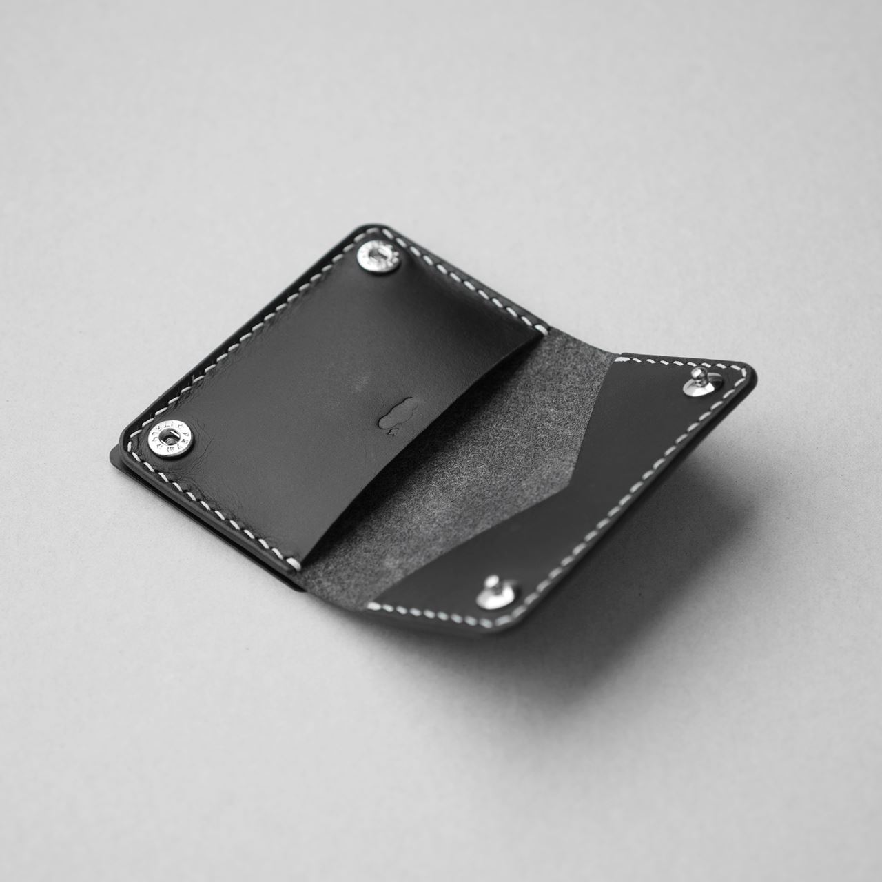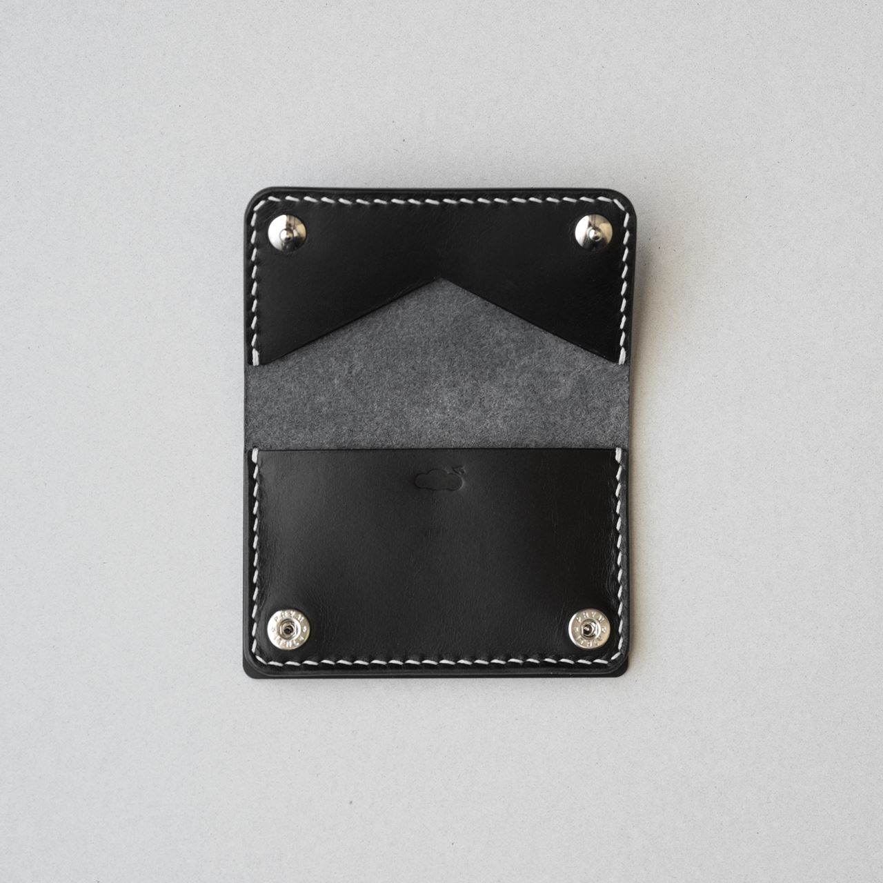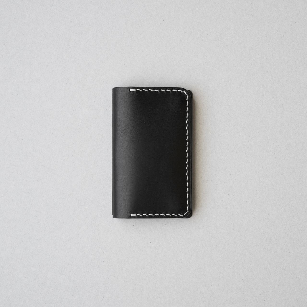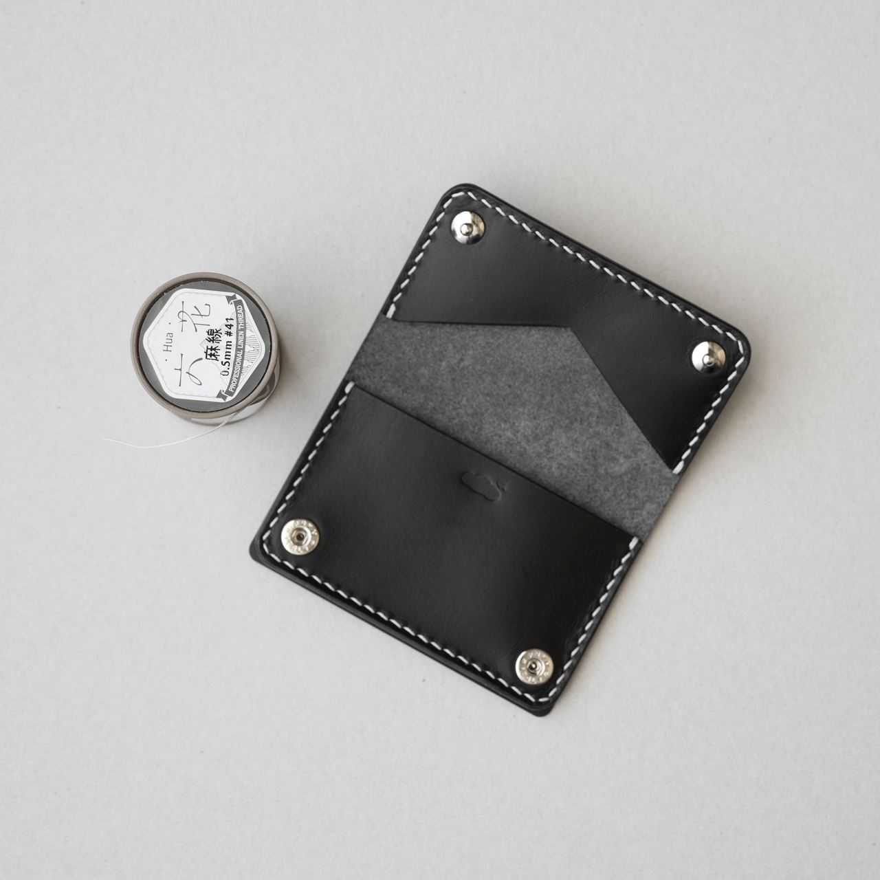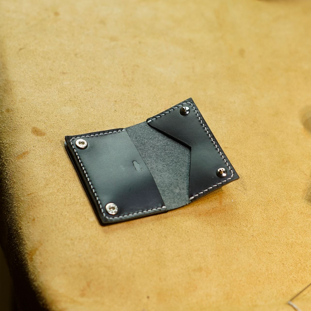 黒革に41銀鼠ステッチのシックなミニマリスト財布1型ができました。