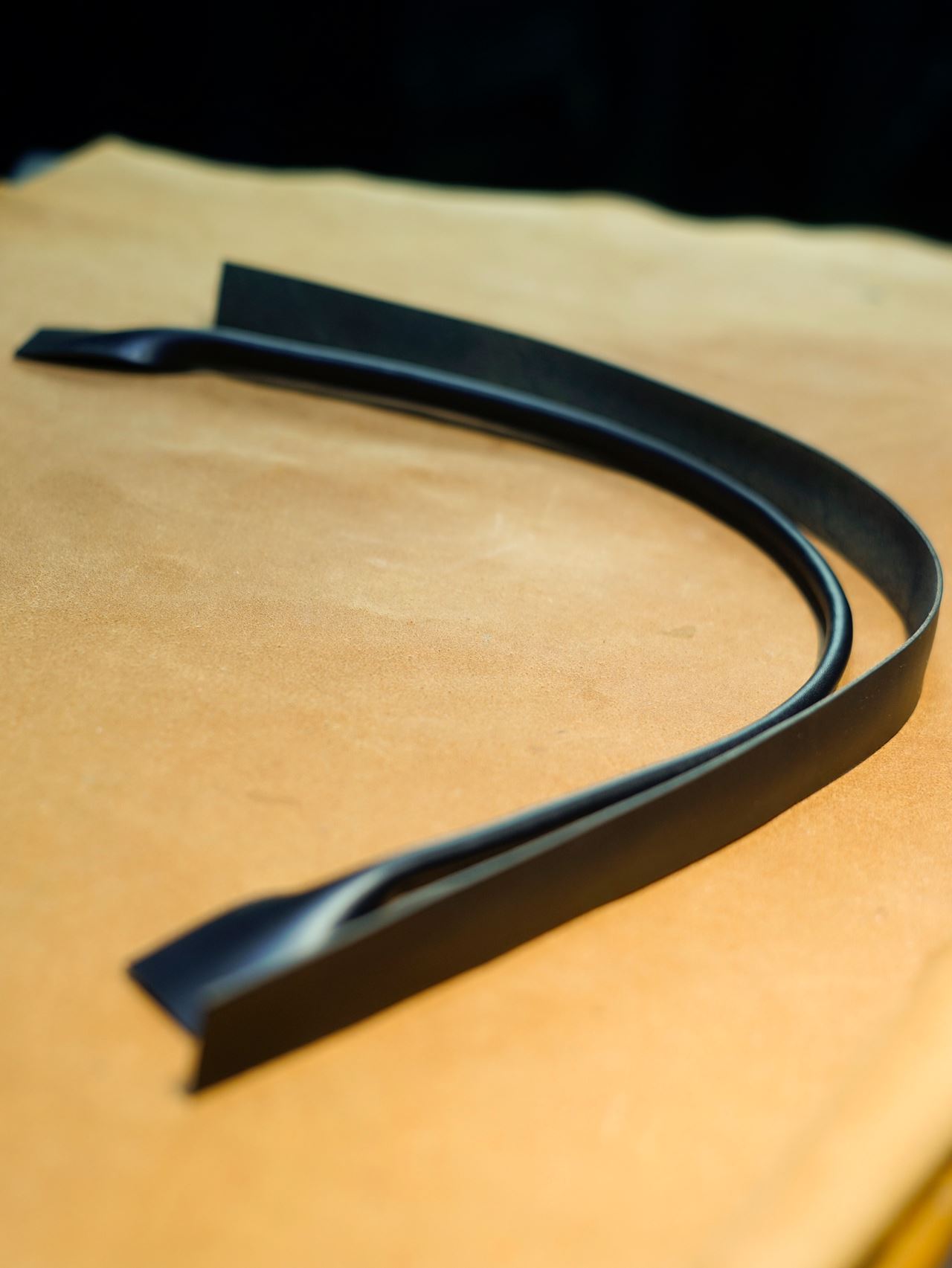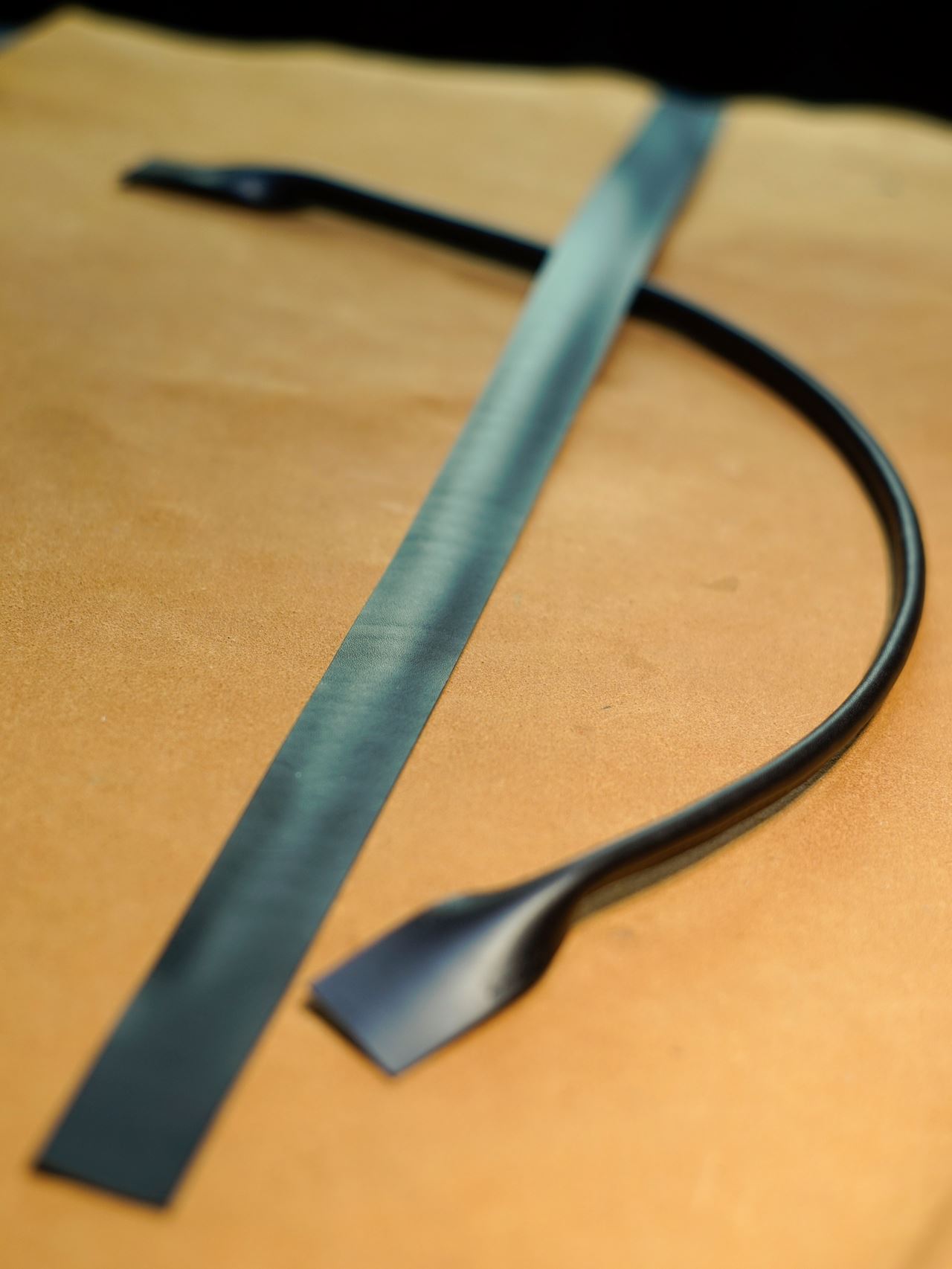 2本目も縫いあがりました。今のところ縫っただけでコバ磨きは後ほど行います。イタリアンハードはコシとハリのある革です。艶のある持ち手に仕上がりました。