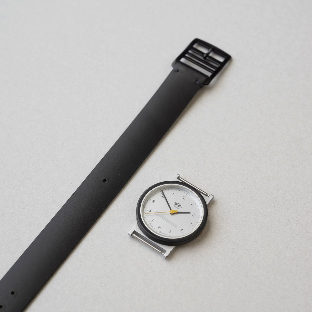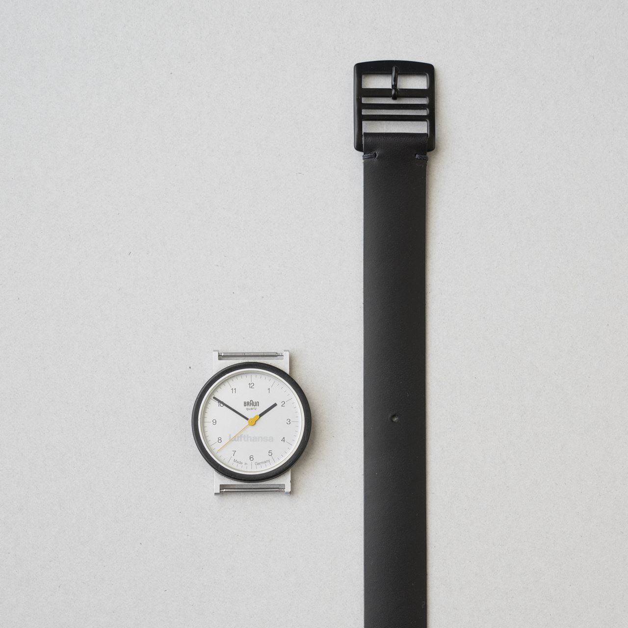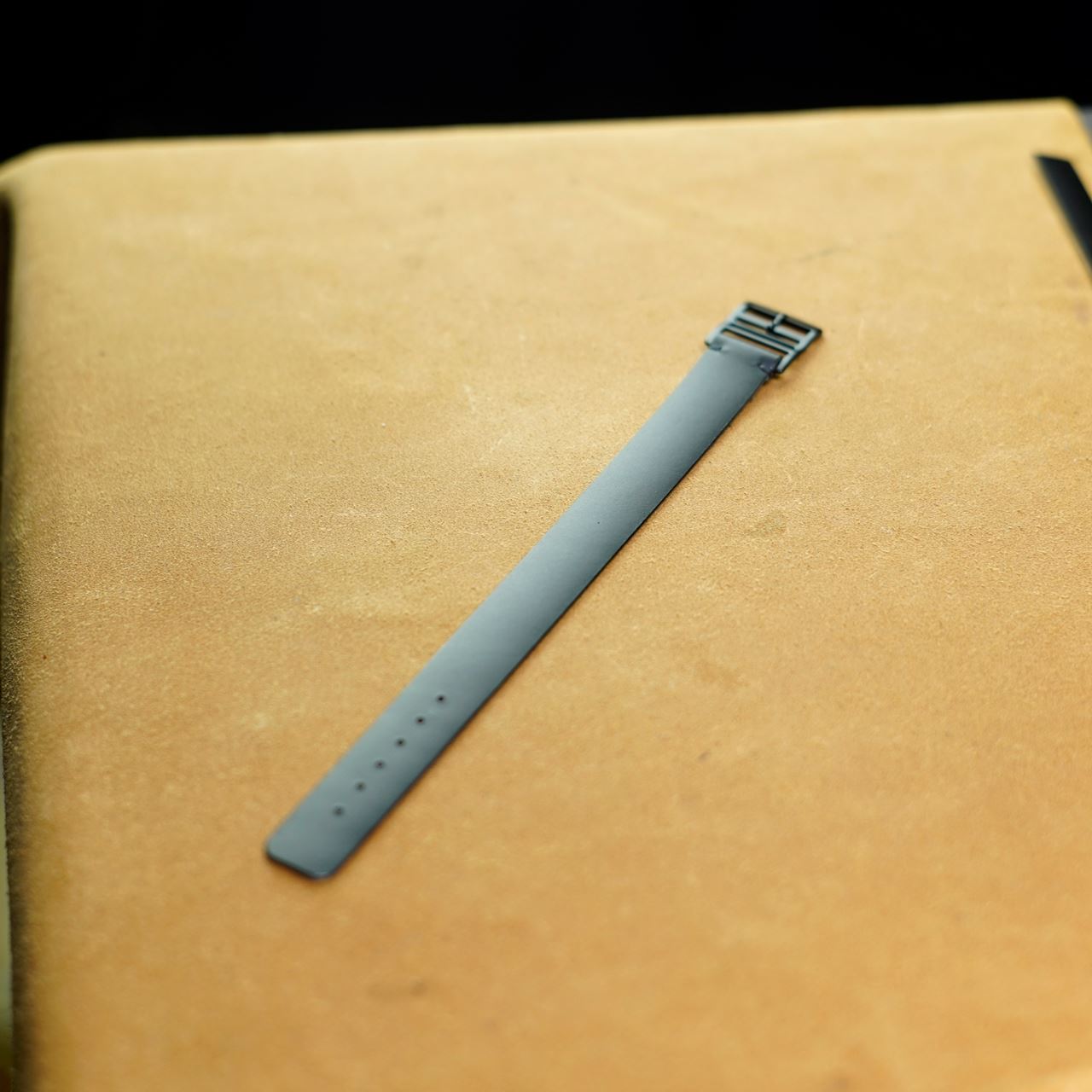 ドイツBRAUNの名作時計AWシリーズのためのレザーストラップです。薄くてもハリのあるイタリア鞣し革を、貼り合わせや縫い合わせをせず1枚革で使用しています。また、バックルはスイス軍式を採用し、ベルトループを無くすことで、AWシリーズのデザインポリシーにマッチしたシンプルなストラップになりました。