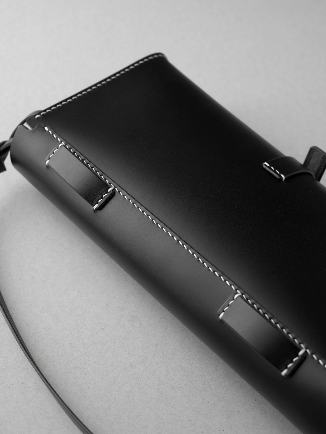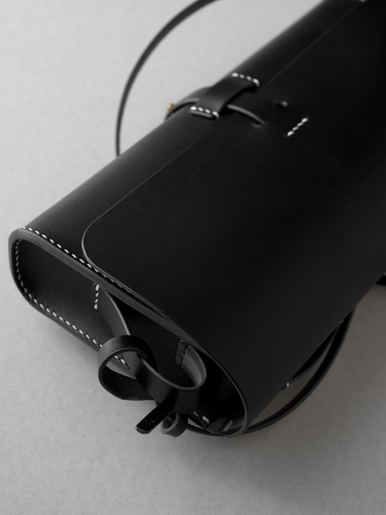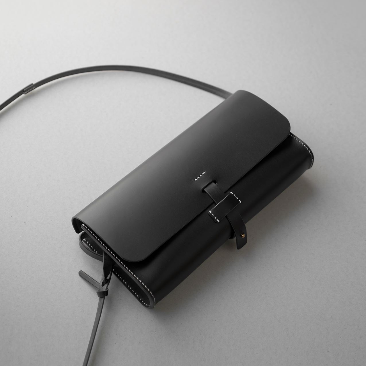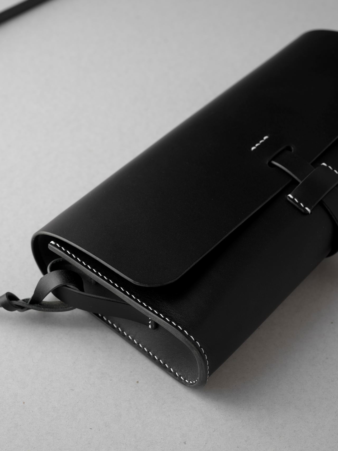 くも舎の耳つき肩かけカバンは、最上級のヌメ革を使用した横長の小さなバッグです。サイズは一般的な長財布や文庫本、携帯電話などが入る大きさです。カバンの側面には大きな耳がついていますので、長いベルトをつければショルダーバッグになります。