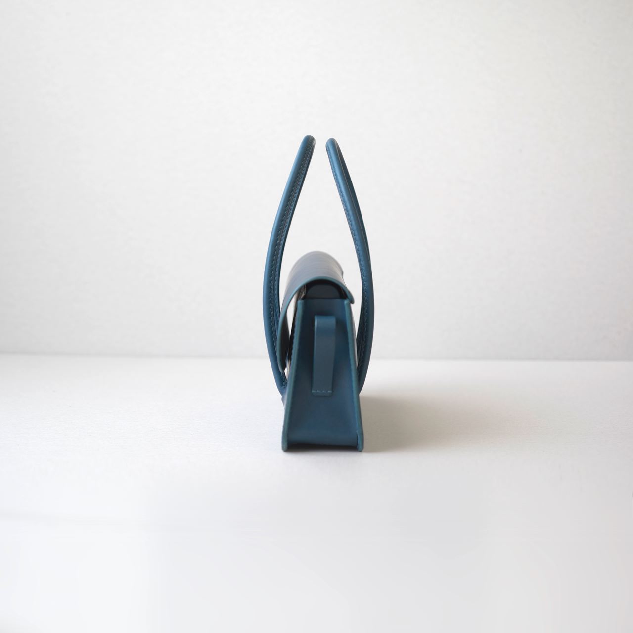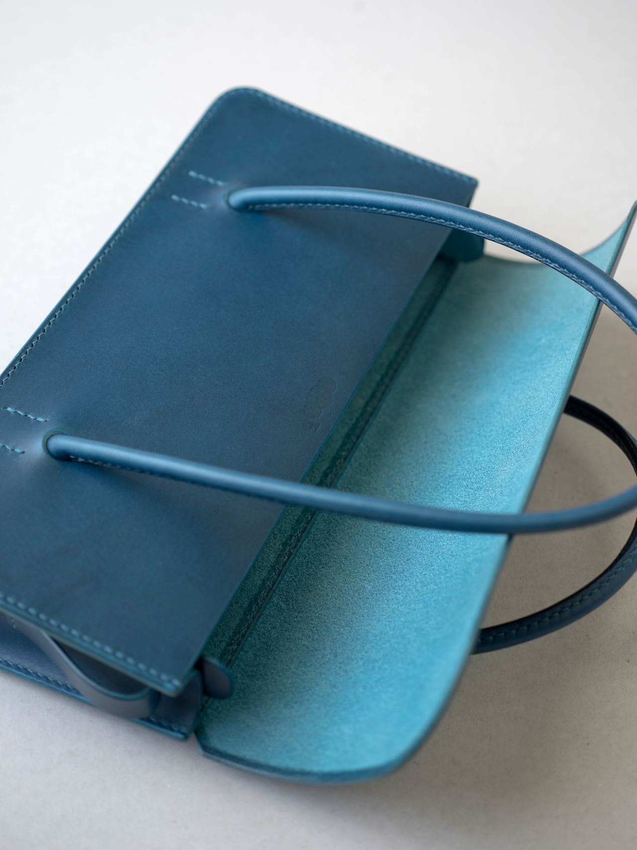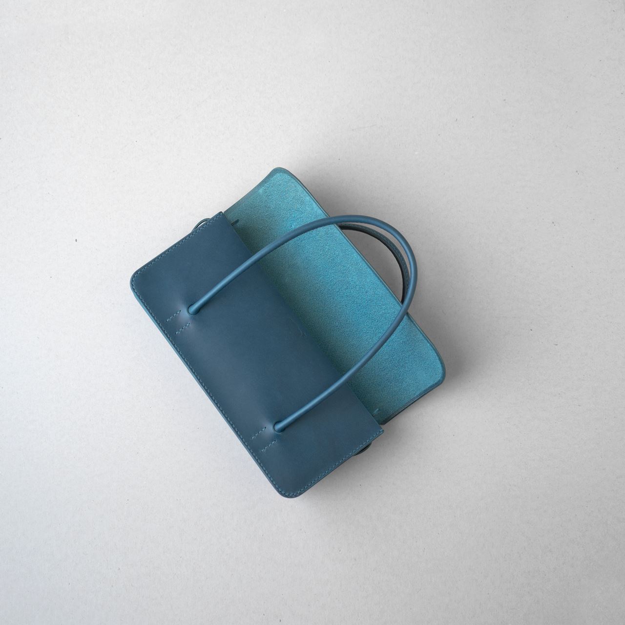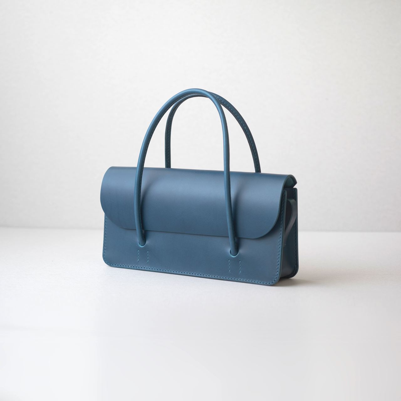 厚手の植物タンニン鞣し革と麻糸の手縫いでつくった、横長の小さな手さげカバンです。サイズは一般的な長財布や文庫本、携帯電話などが入る大きさです。