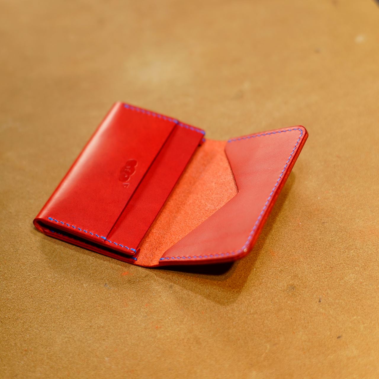 今日はAさんからご依頼いただいた、赤カードケースの制作です。