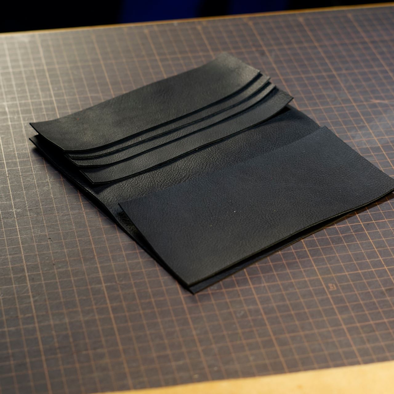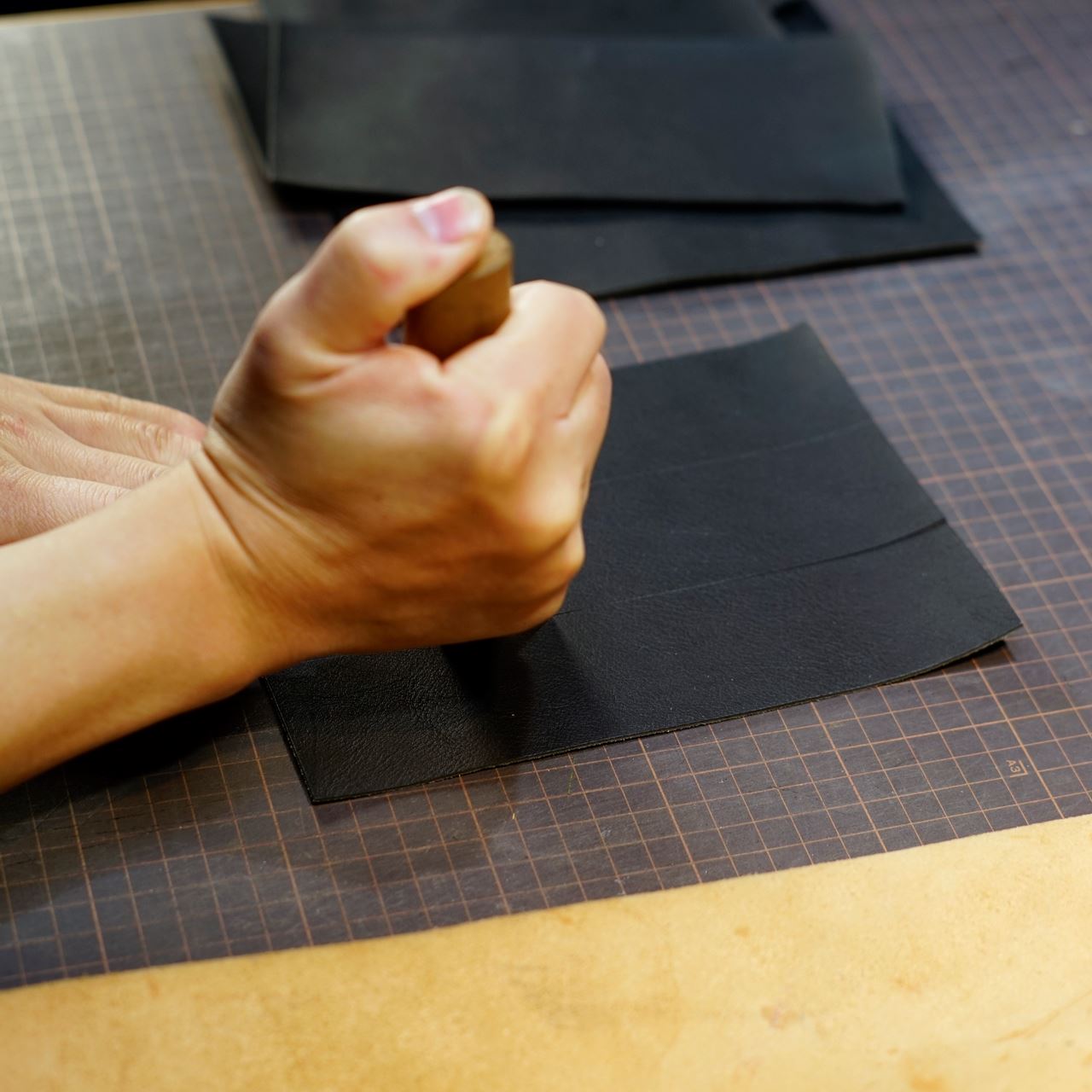 今回のご依頼はイタリアンシボのネロ(黒)となります。革をカットしてパーツを揃えます。