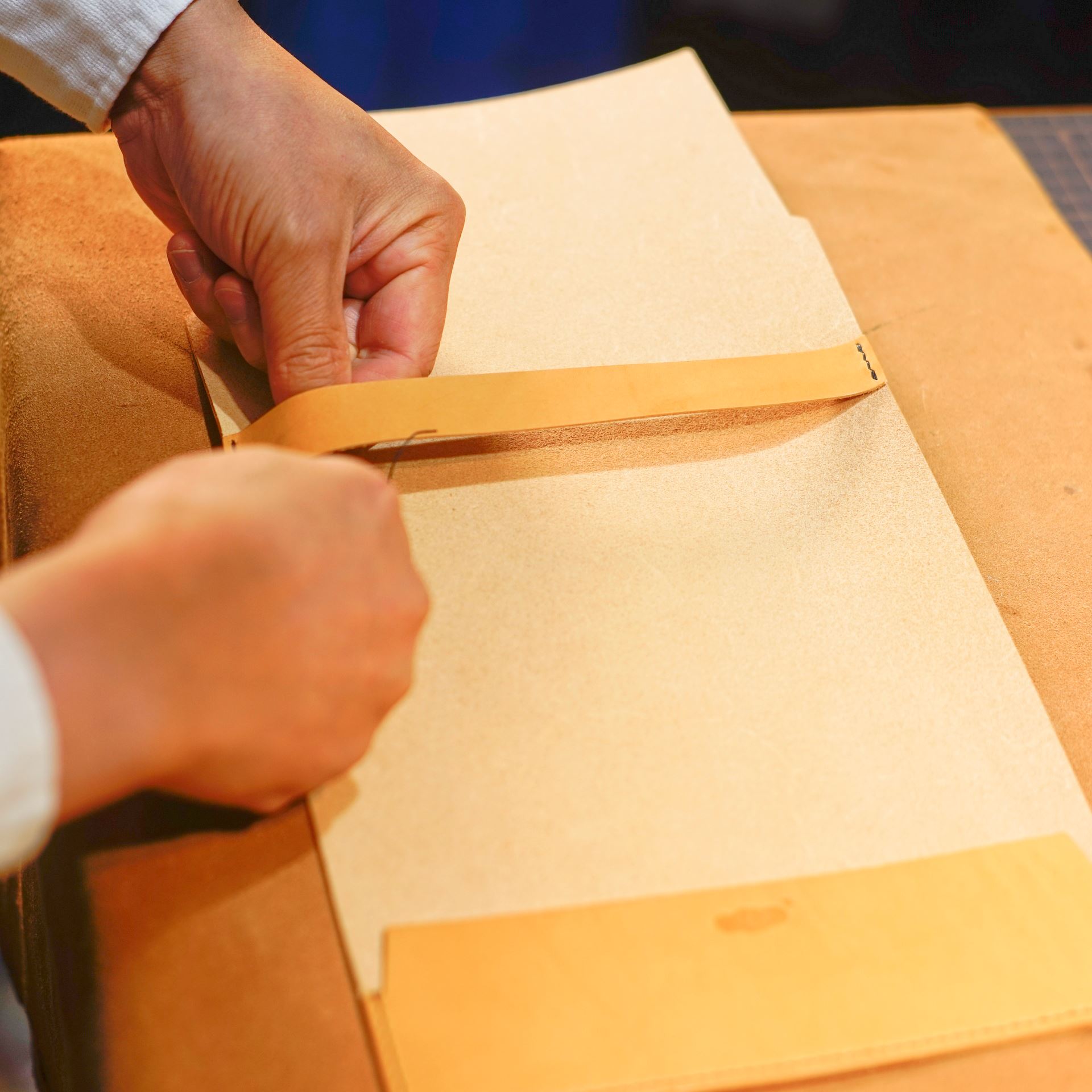 今日はKさんお二方、Sさんお二方からご依頼いただいたブックカバー2型の制作を行いました。