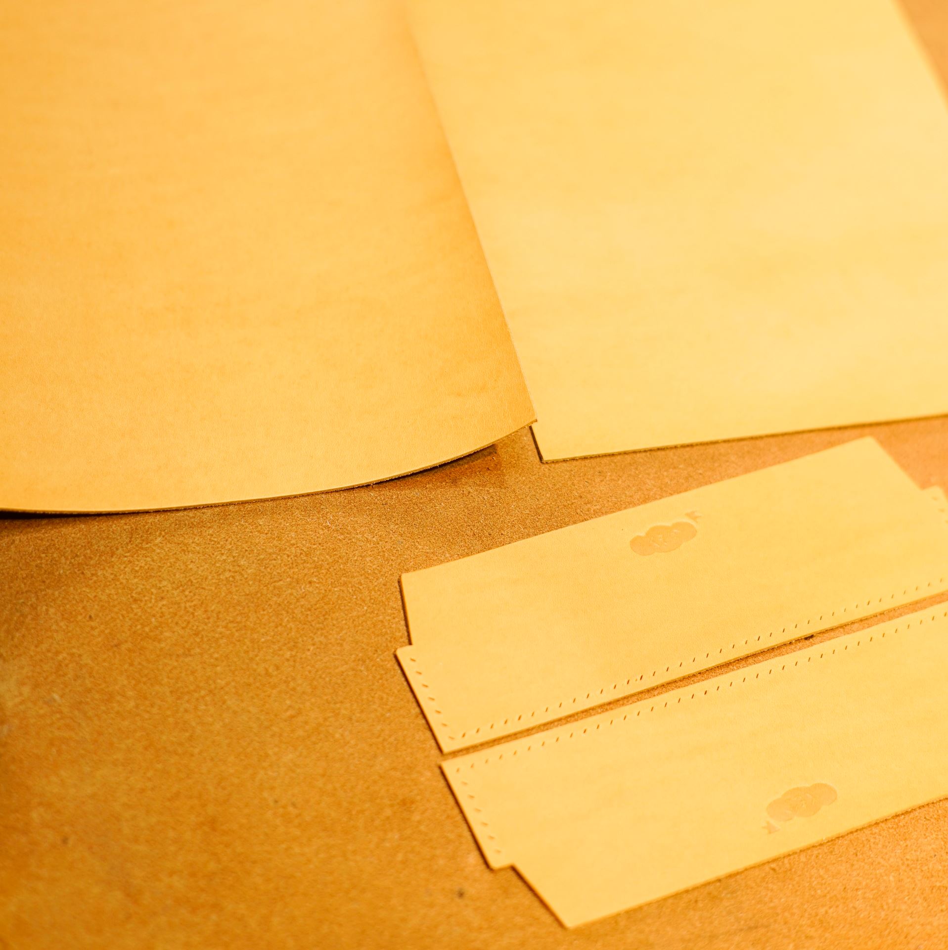 生成り革をカットして、くも舎刻印、目打ち、軽いコバ磨きを済ませておきます。