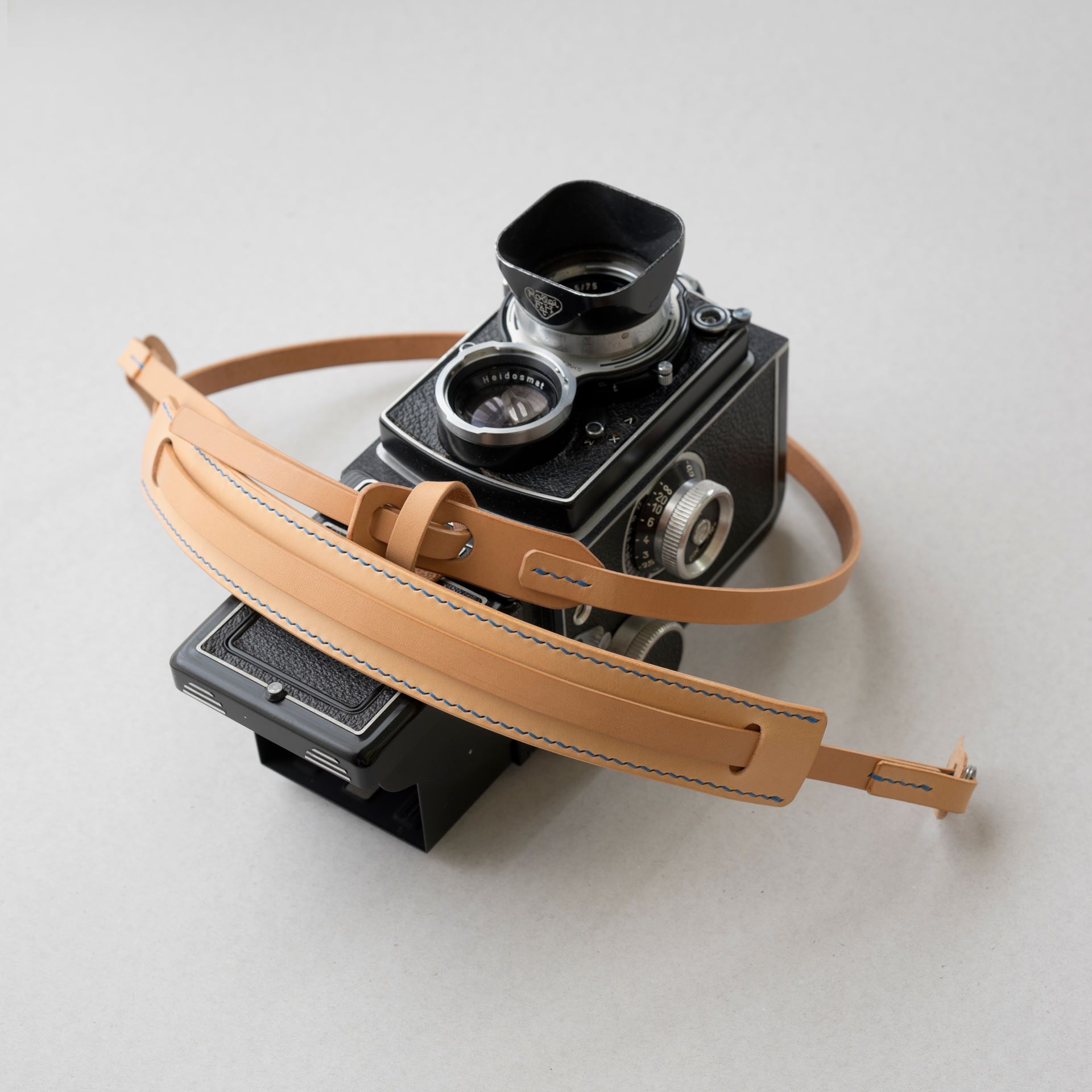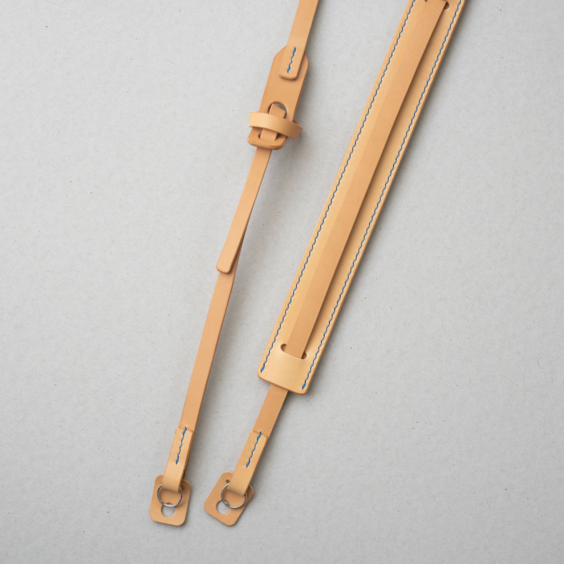 Aさんからご依頼の生成り革のカメラストラップ2型を制作しました。