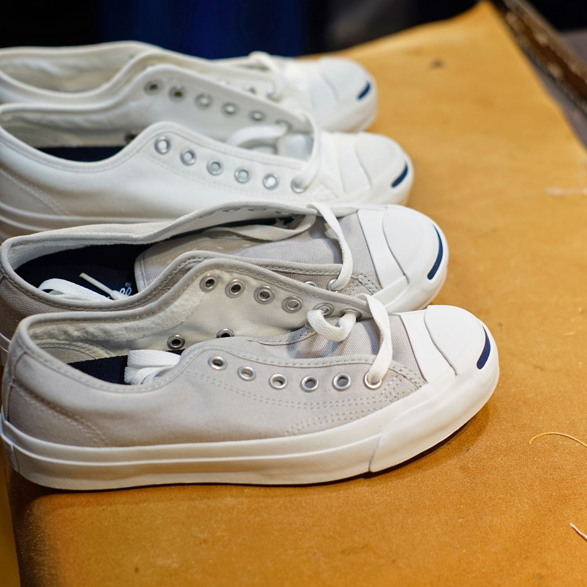 白いキャンバススニーカー全般に言えることですが、普通に水洗いすると乾いたときに黄ばみます。青ひげ改も水洗いする際は下記の洗い方を参照の上、洗っていただくと黄ばみを抑えたクリーニングが可能ですよ。