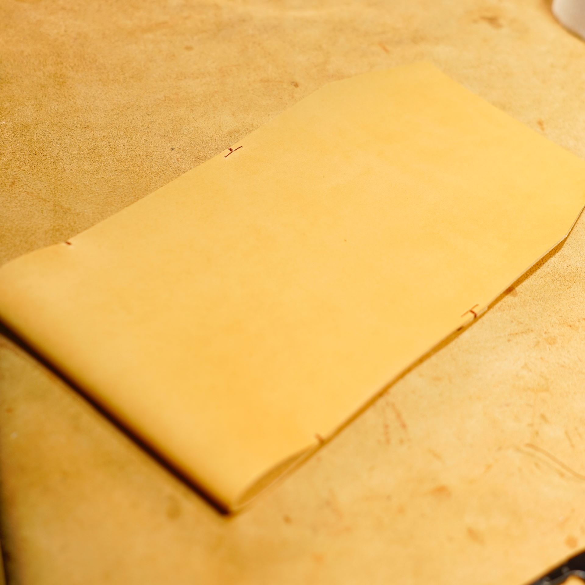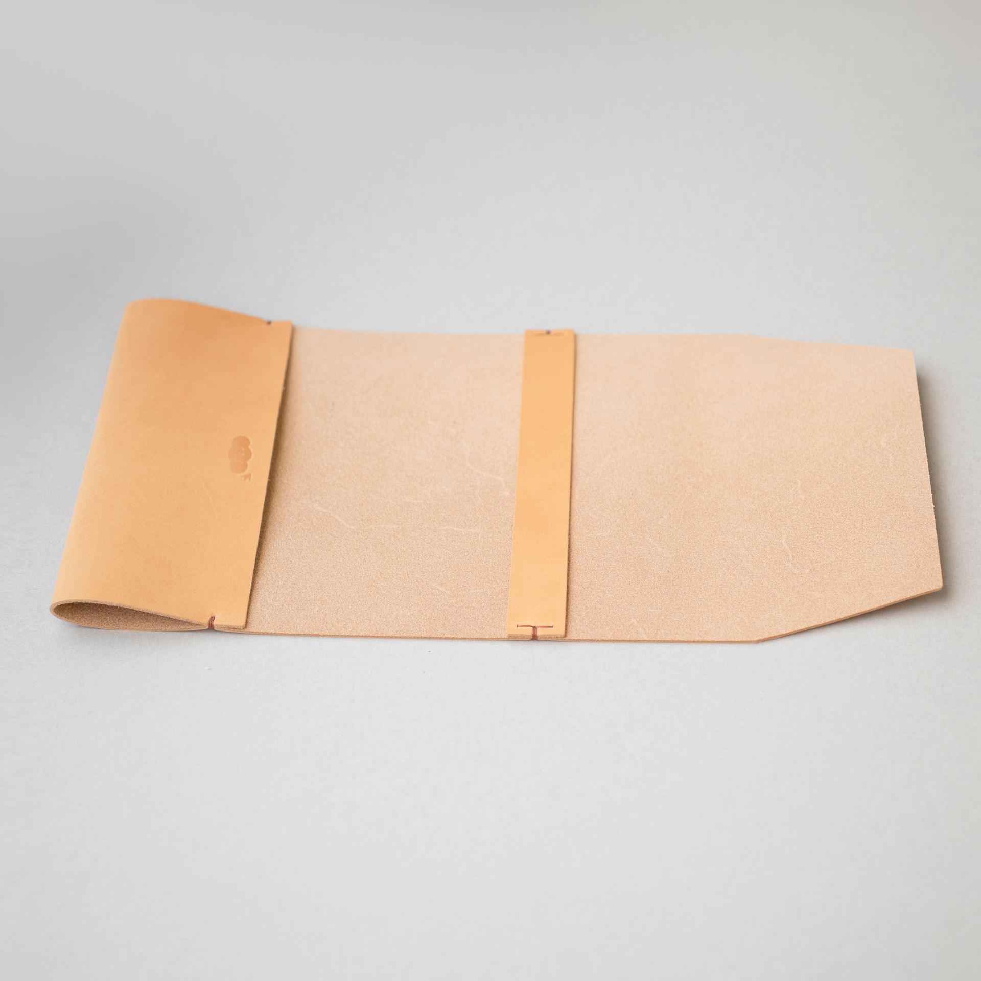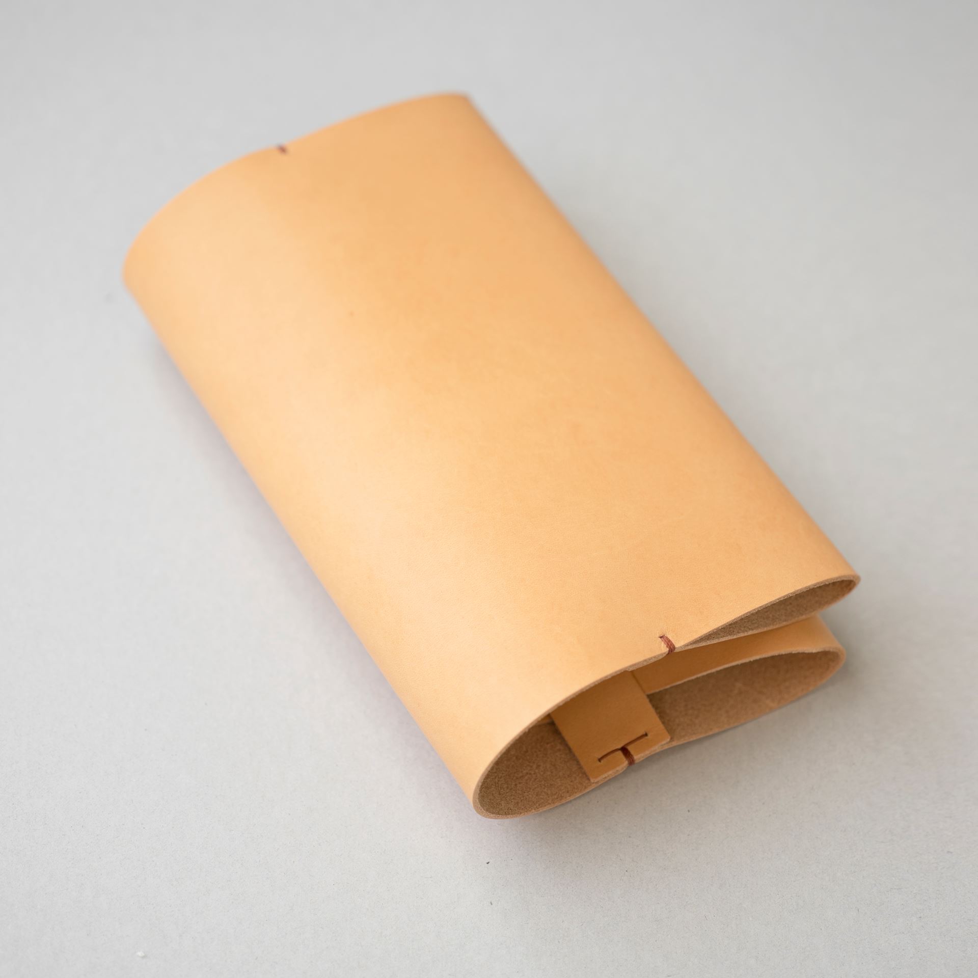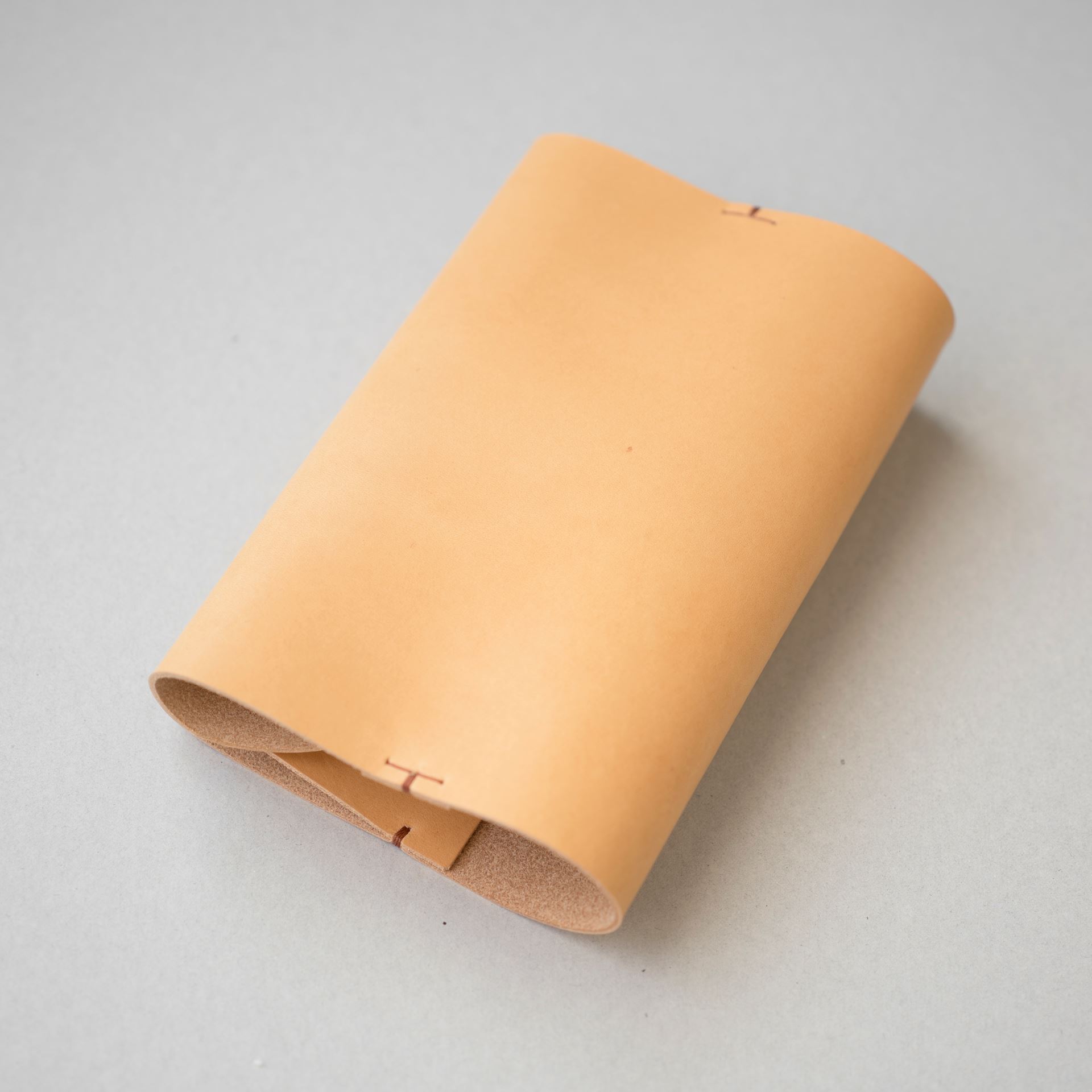 文庫本用ブックカバーです。植物タンニン鞣し革に麻糸で手縫いを施したシンプルなつくりです。本の厚みにあわせて調整可能です。
