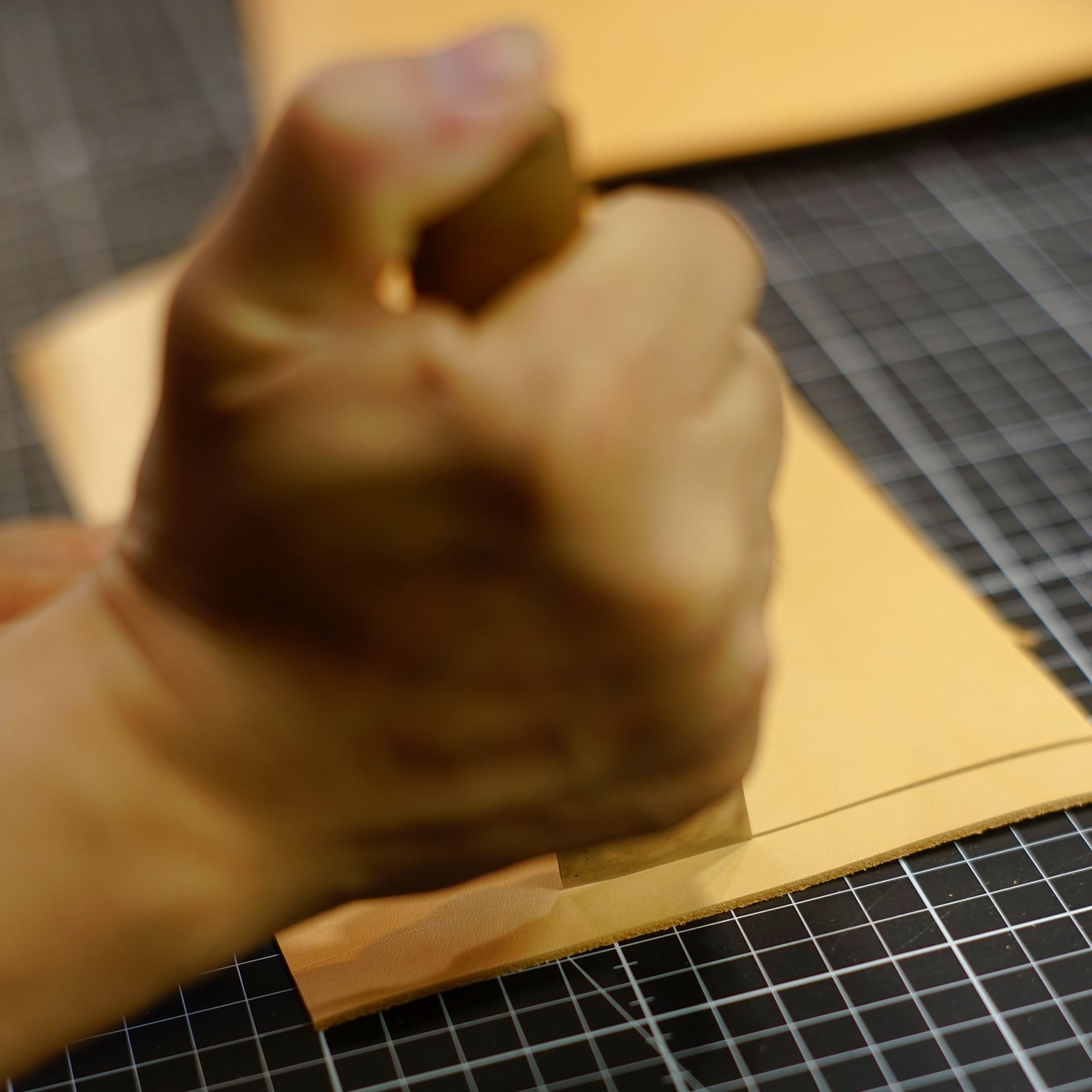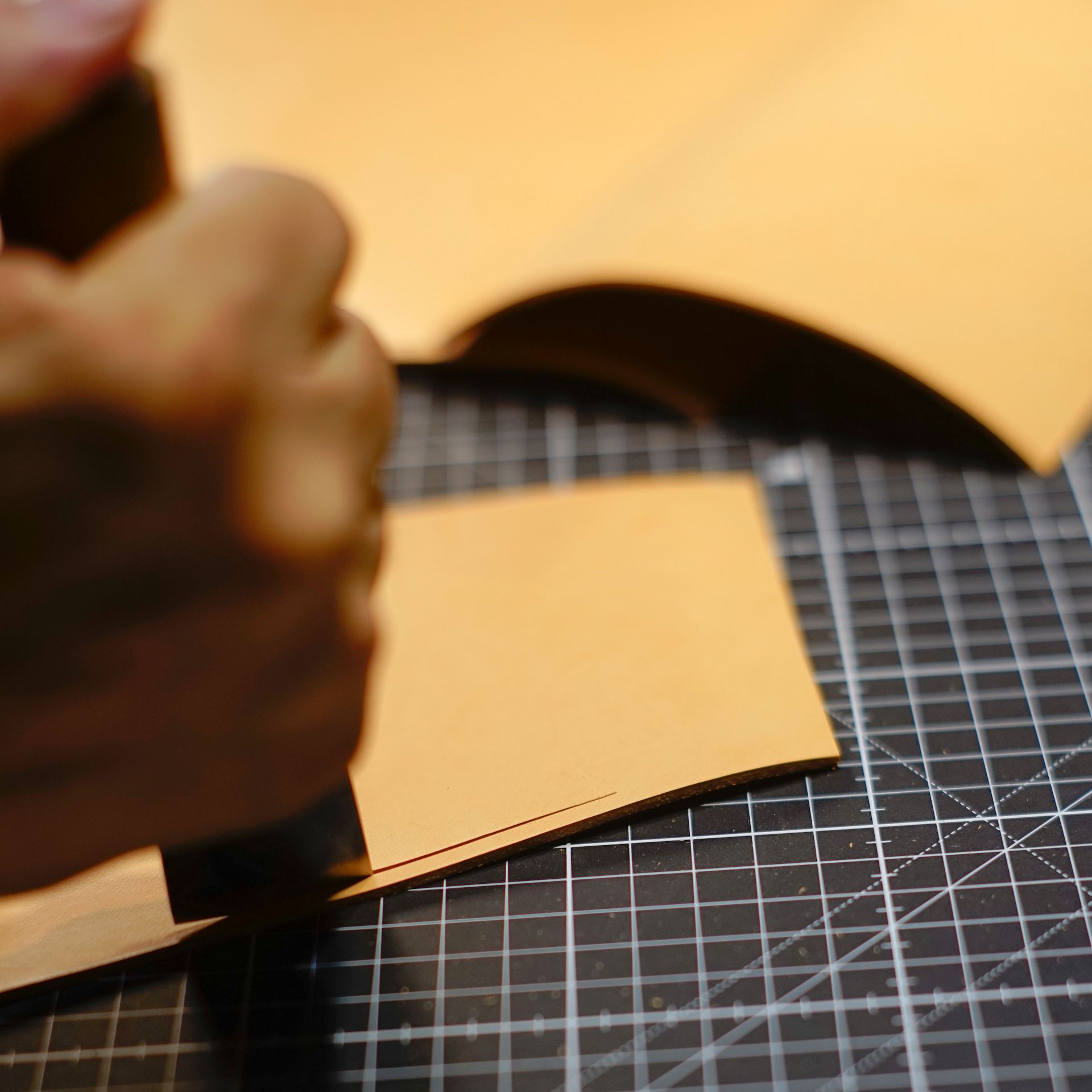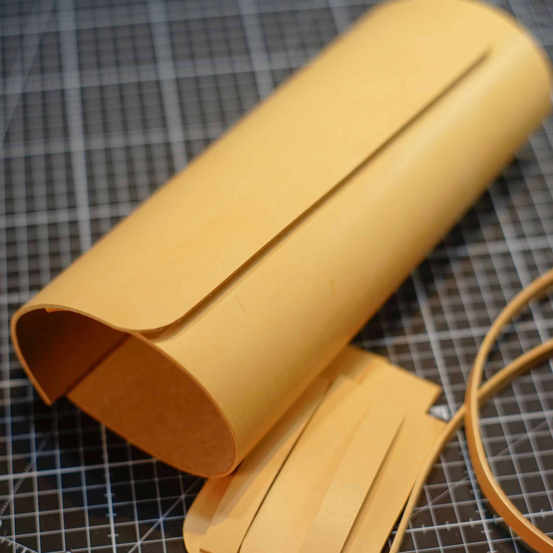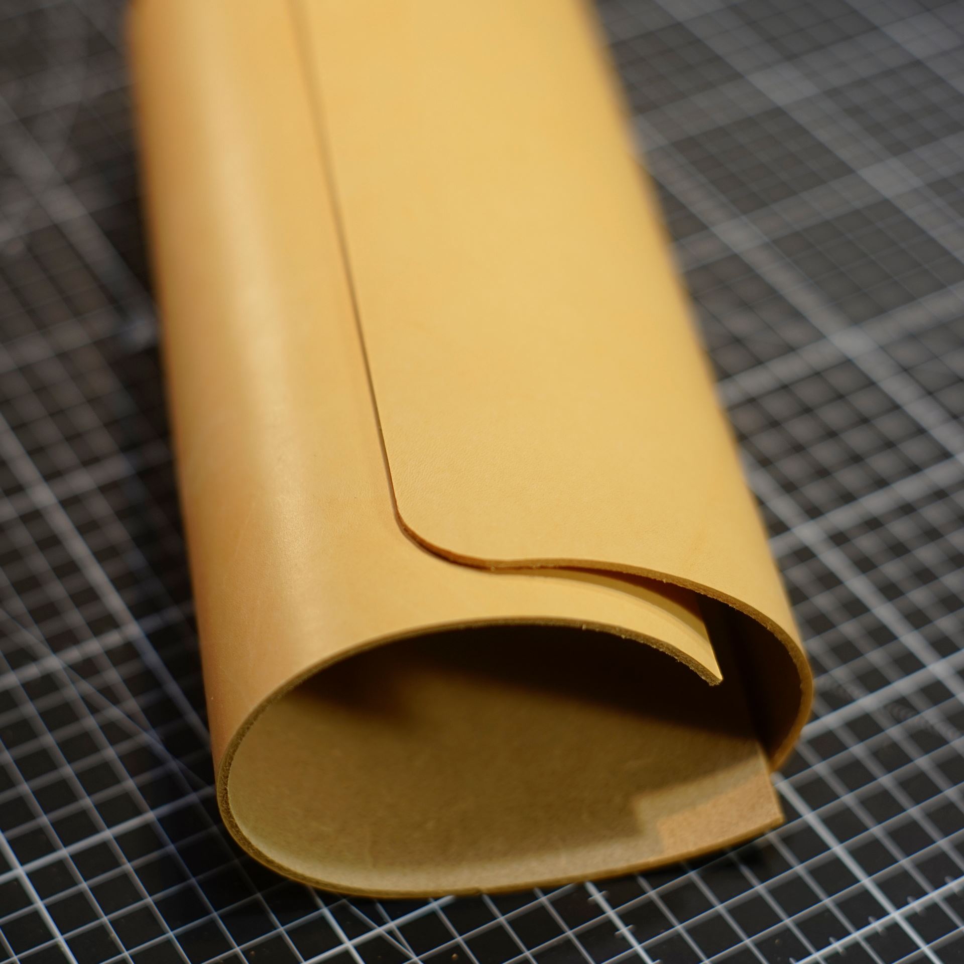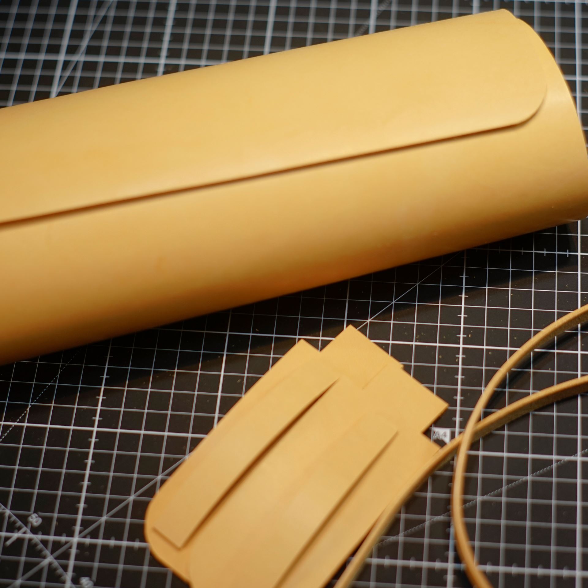 イタリアンハードの生成りを型紙に合わせてカットします。本当に新しいカッターマット慣れてきました。0.5mmの目盛りが大活躍で作業性が向上しています。