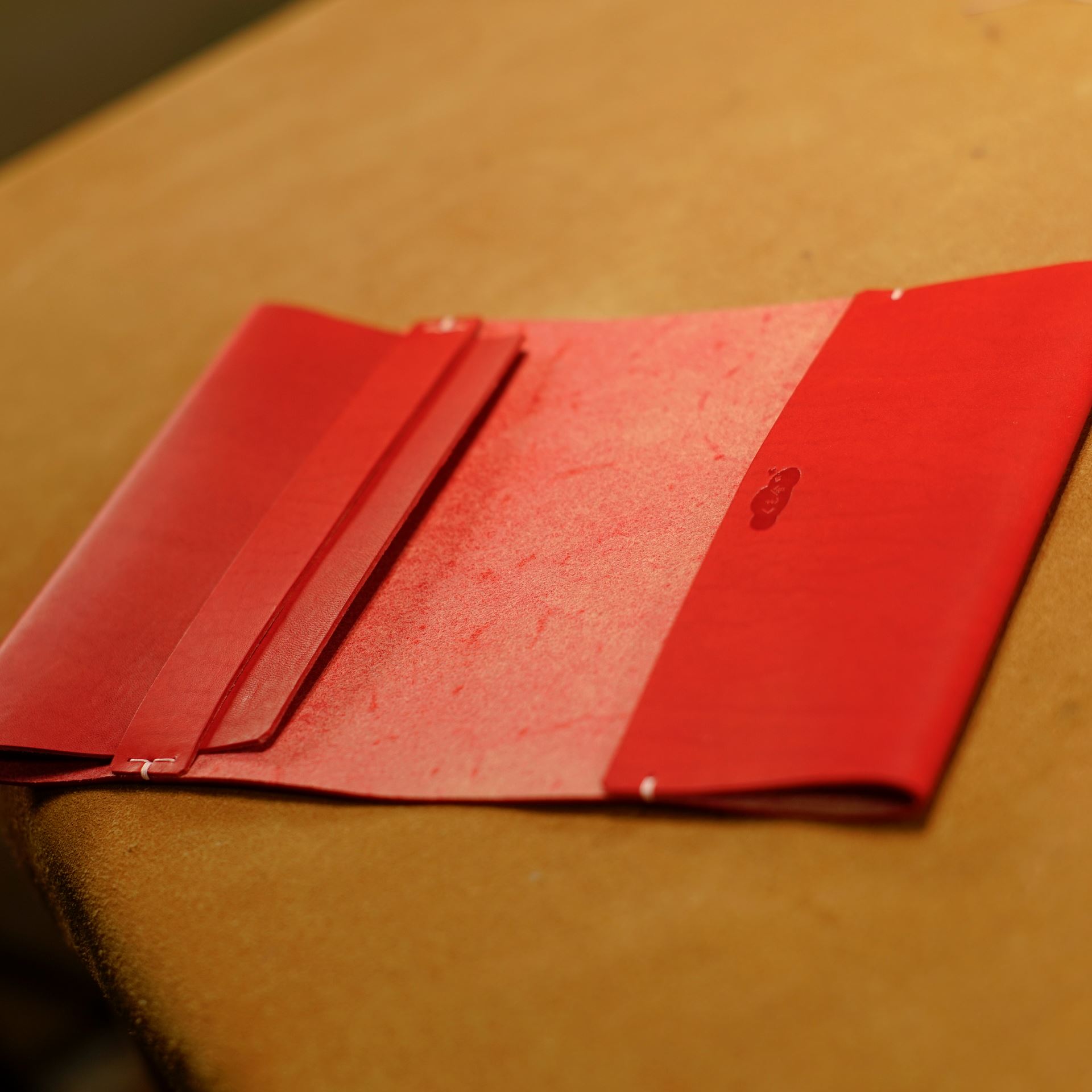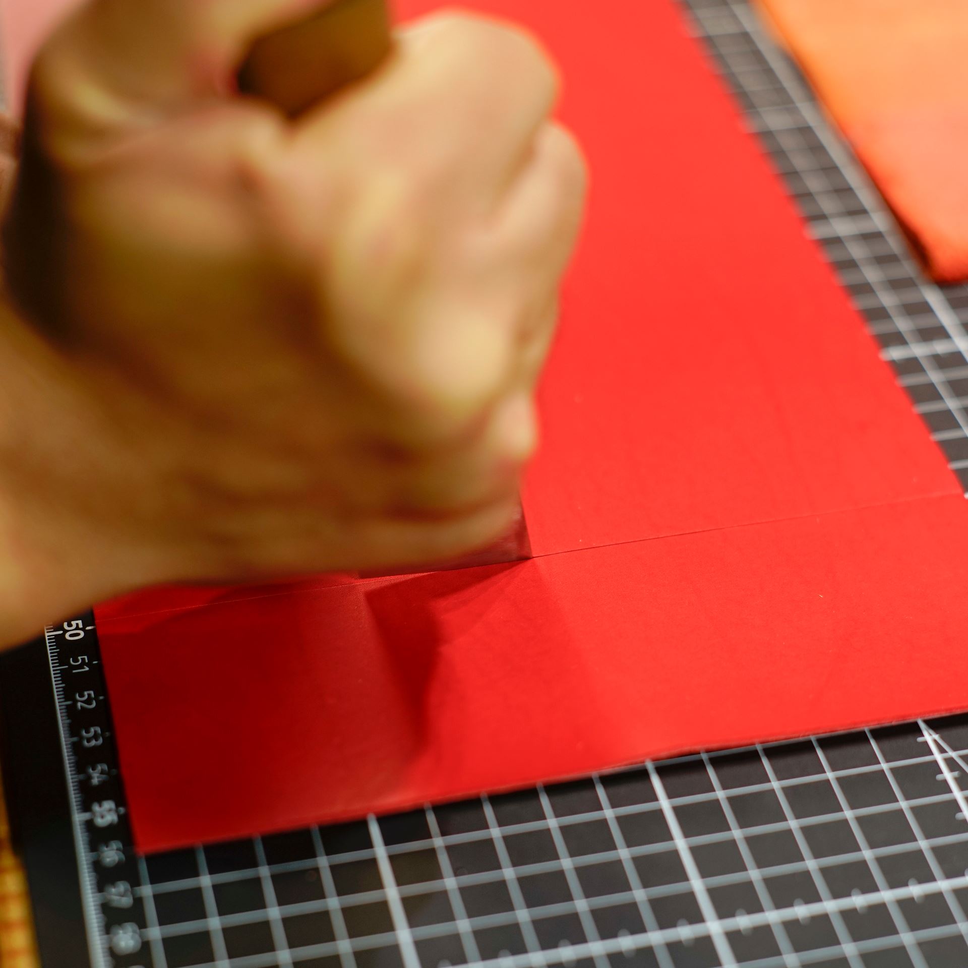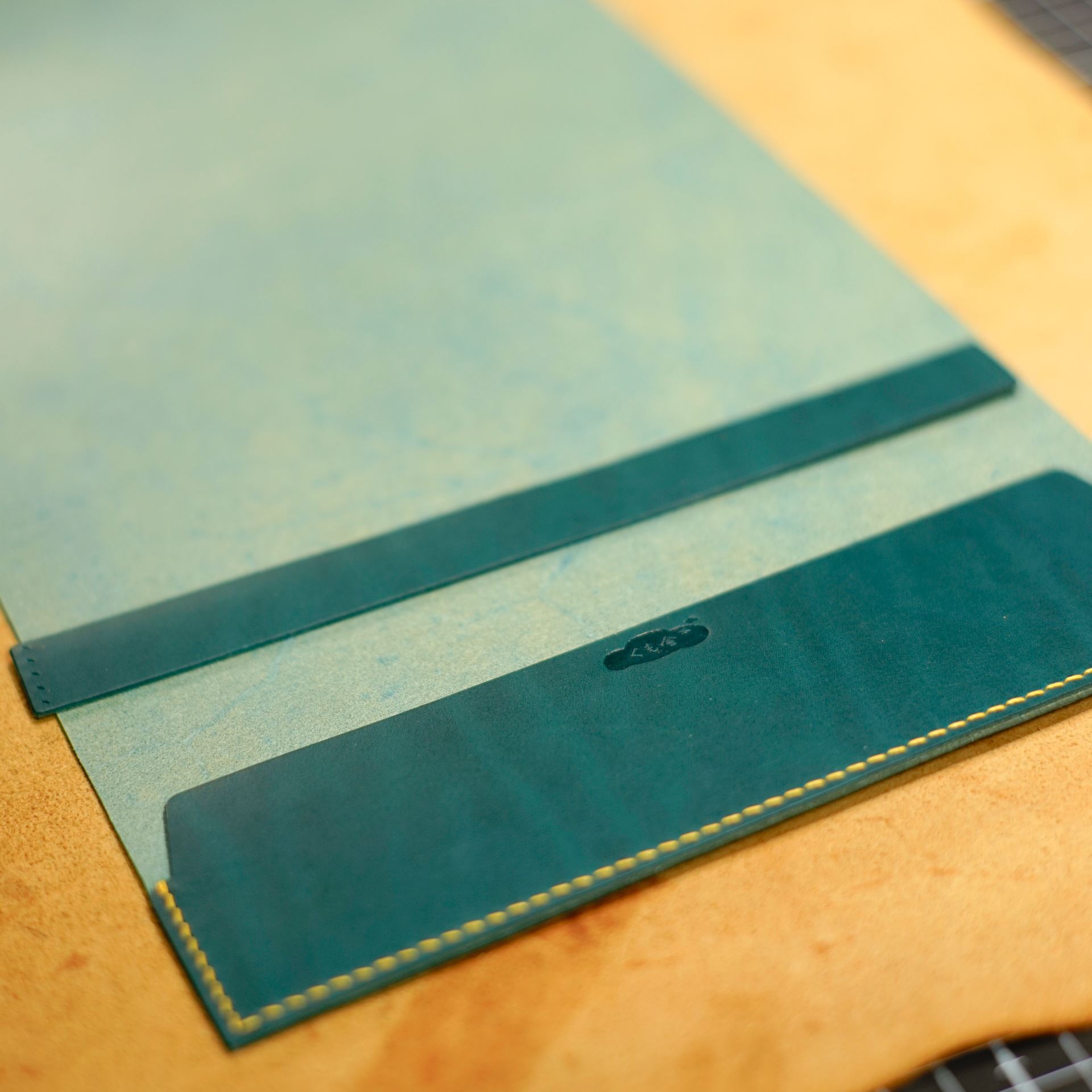 最後に軽いコバ仕上げ(揃える程度)とヘラで本を入れやすくクセ付けして完成です。