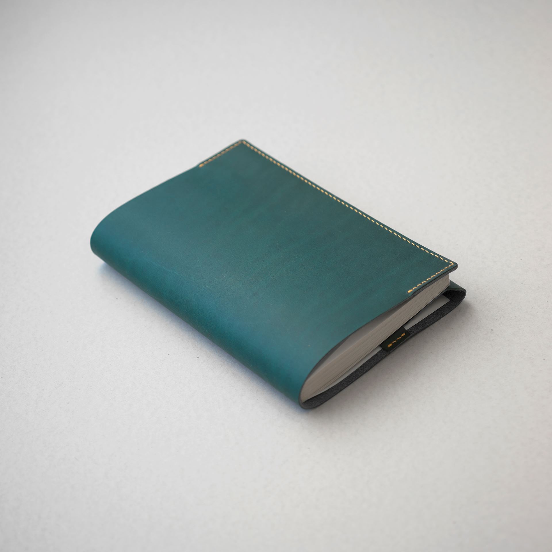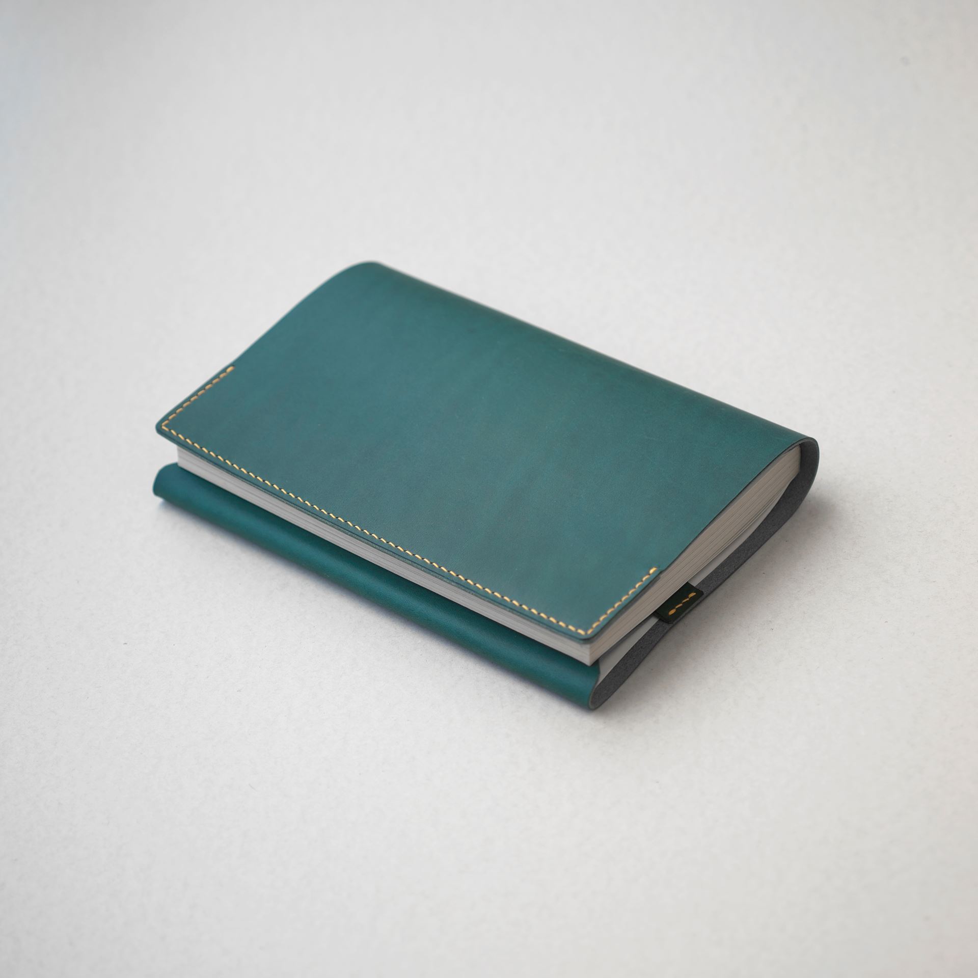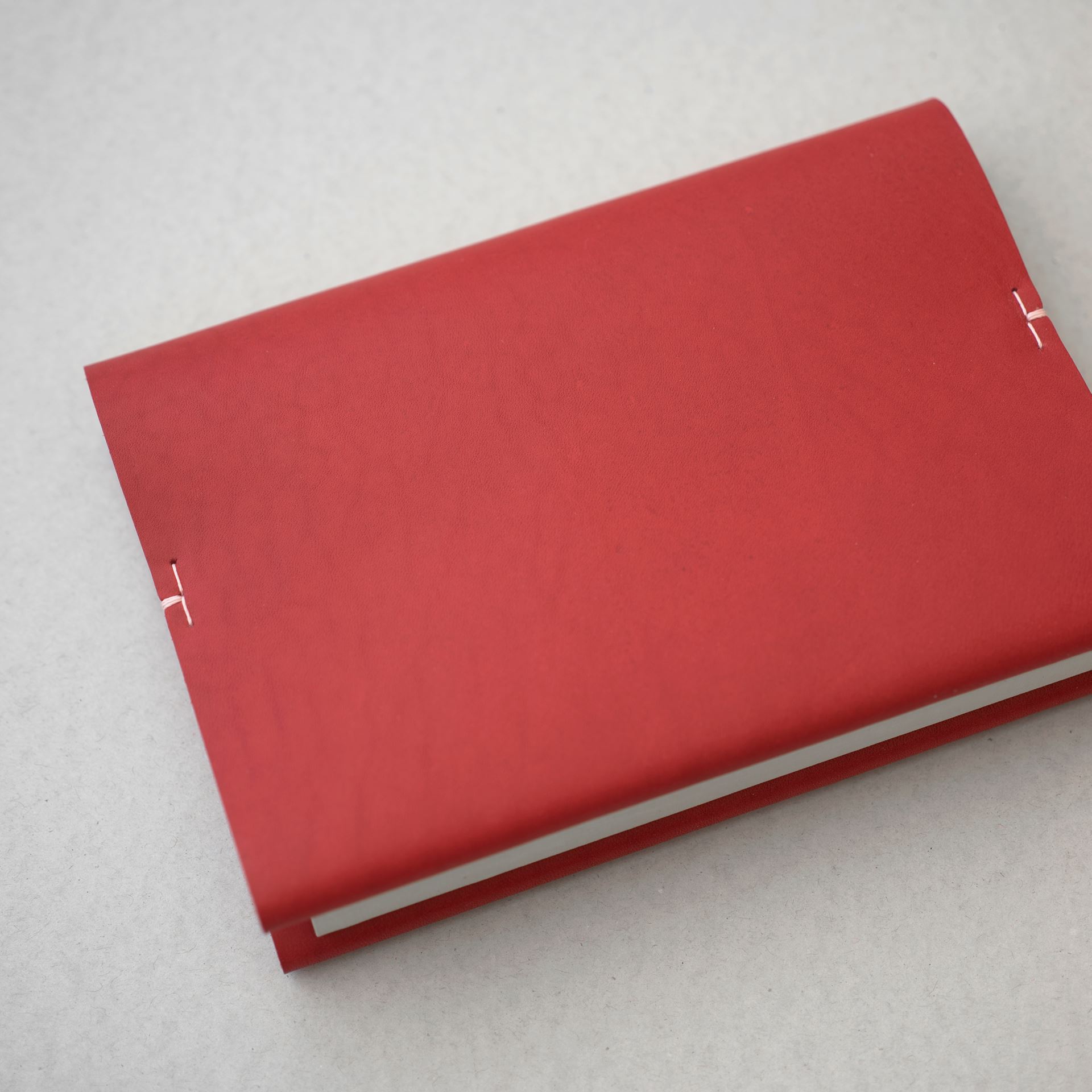 植物タンニン鞣し革に麻糸で手縫いを施したシンプルなつくりです。差込部にステッチを入れることで、ブックカバー1型をよりスマートに、本を読みやすく進化させました。
