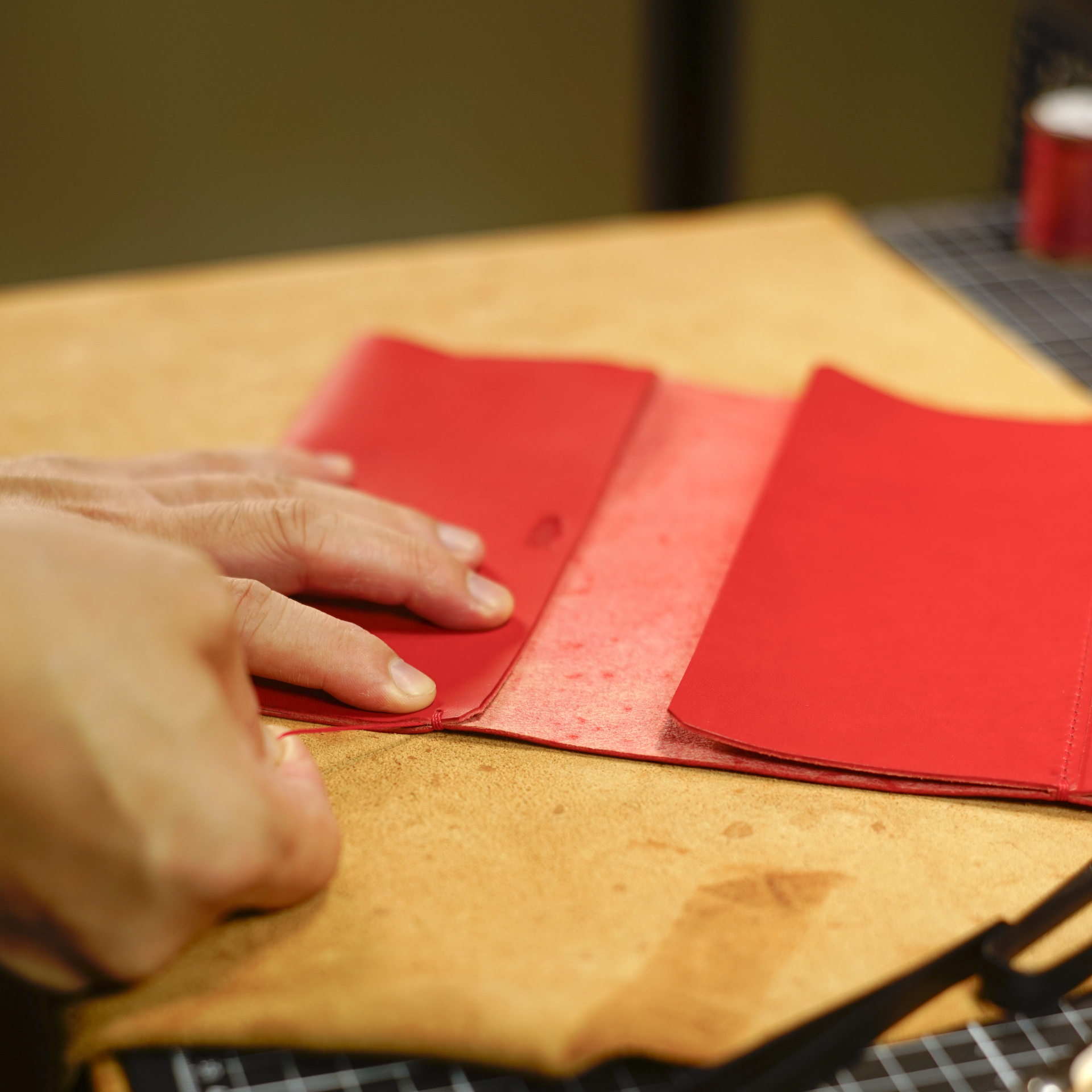 今日はHさんからご依頼いただいた、ほぼ日手帳カバーWEEKS MEGAサイズの制作を行いました。