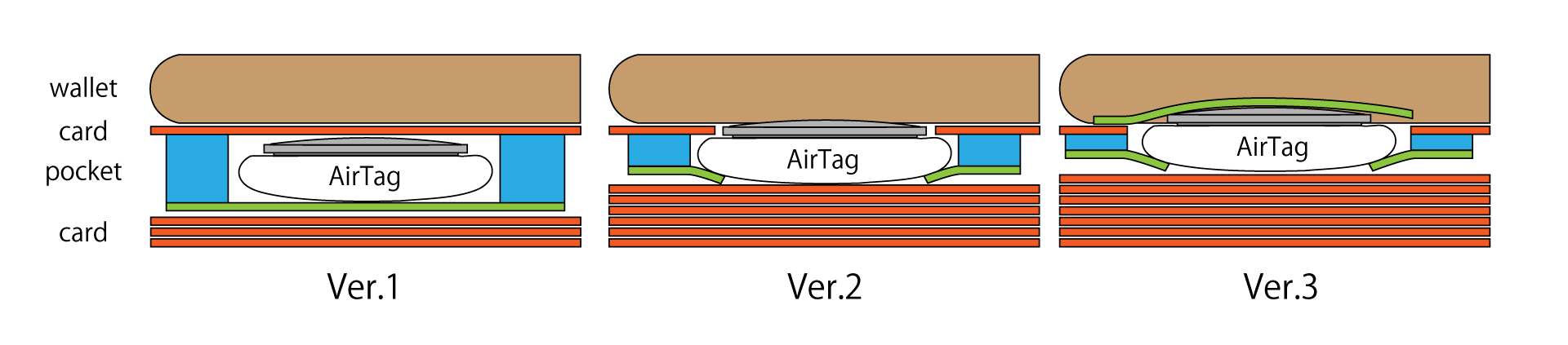 数々の試作を経てミニマリスト財布のAirTag対応版もバージョンアップしております。