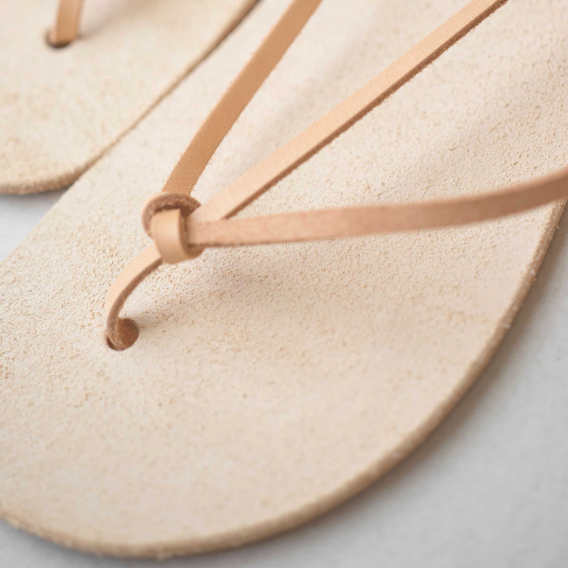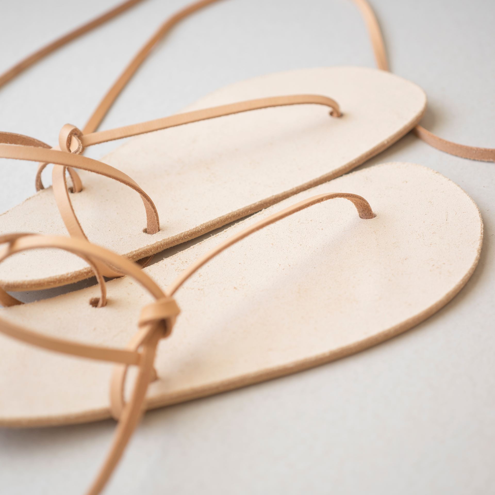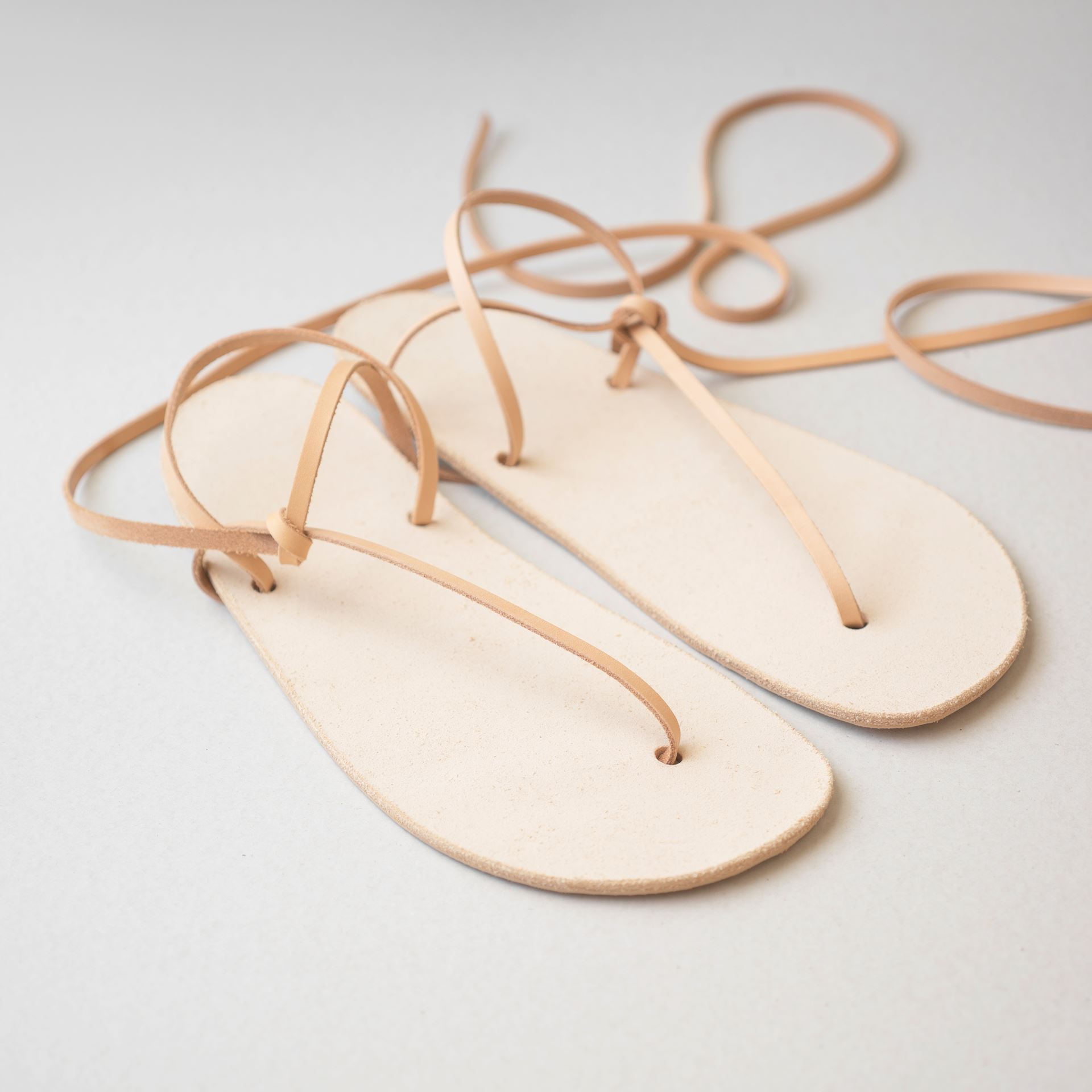 メキシコ山岳部のタラウマラ族が古タイヤと革ひもだけで作ったサンダルを参考に、普段街中を『歩くためのサンダル』に特化させて、丁寧に手作りしたのがくも舎のワラーチです。牛革紐1本で足をしっかりホールドします。一本の革紐から生まれる開放感を楽しめます。