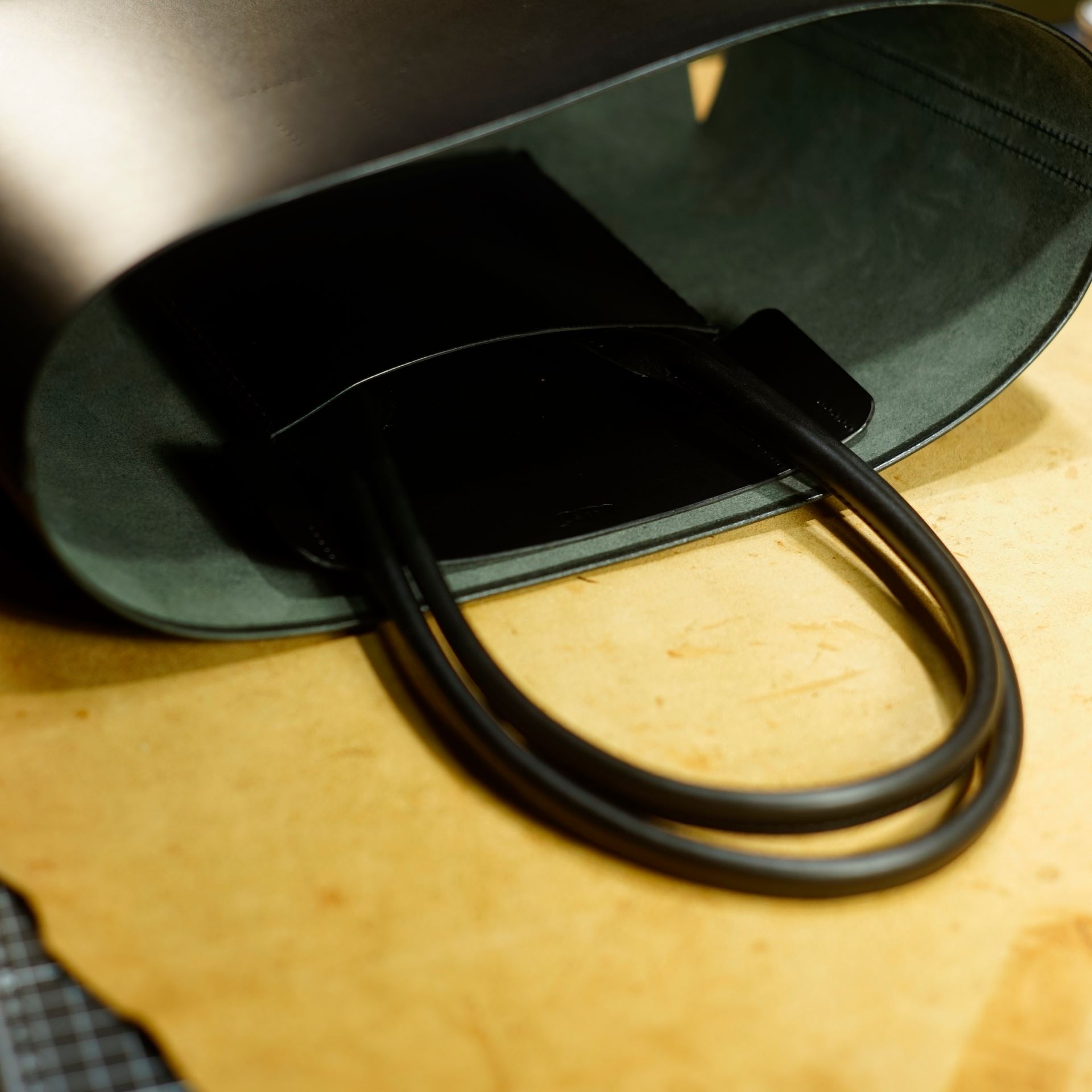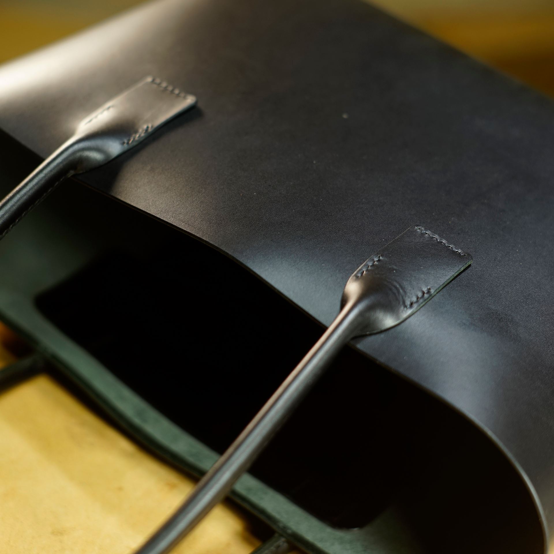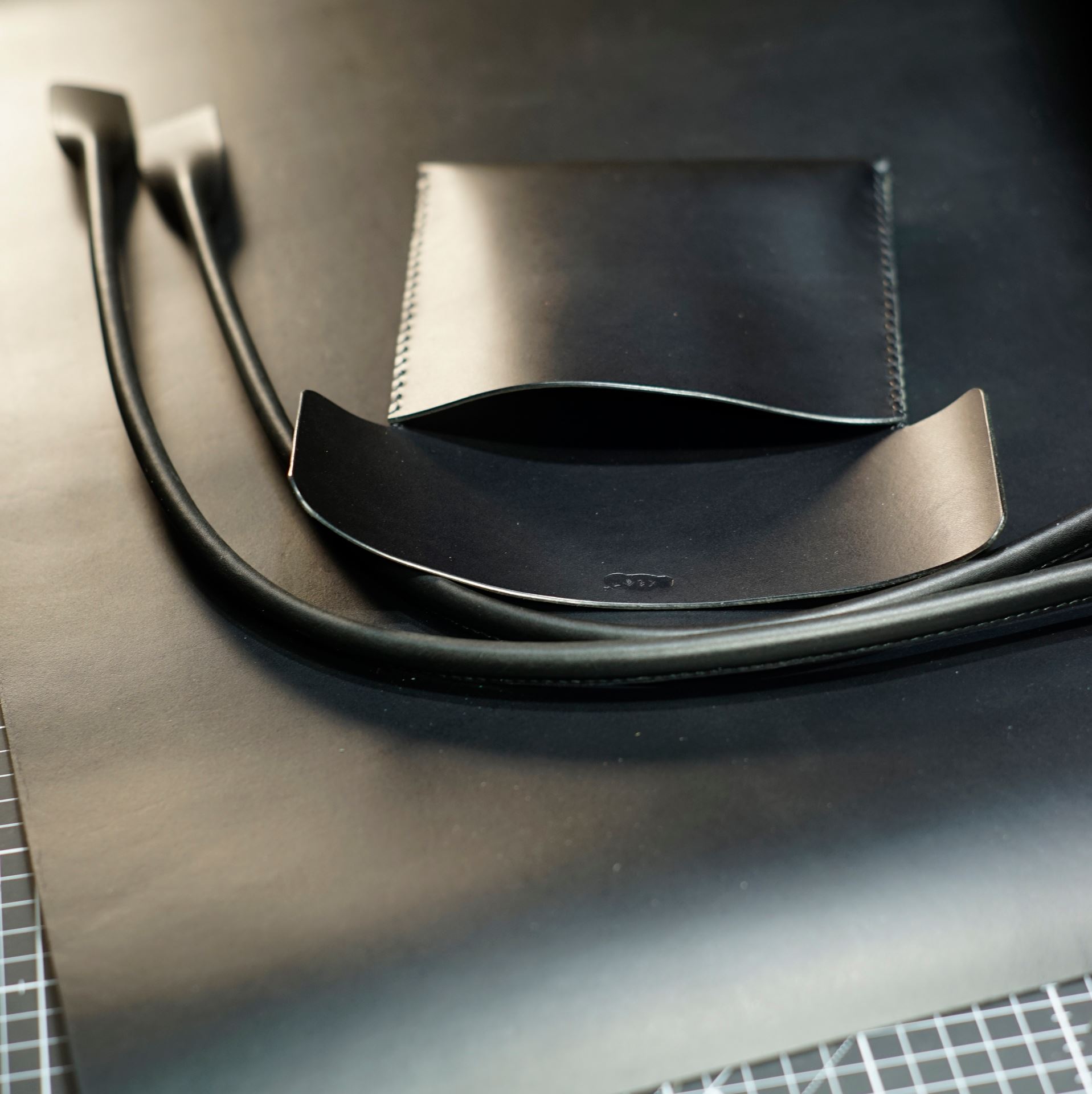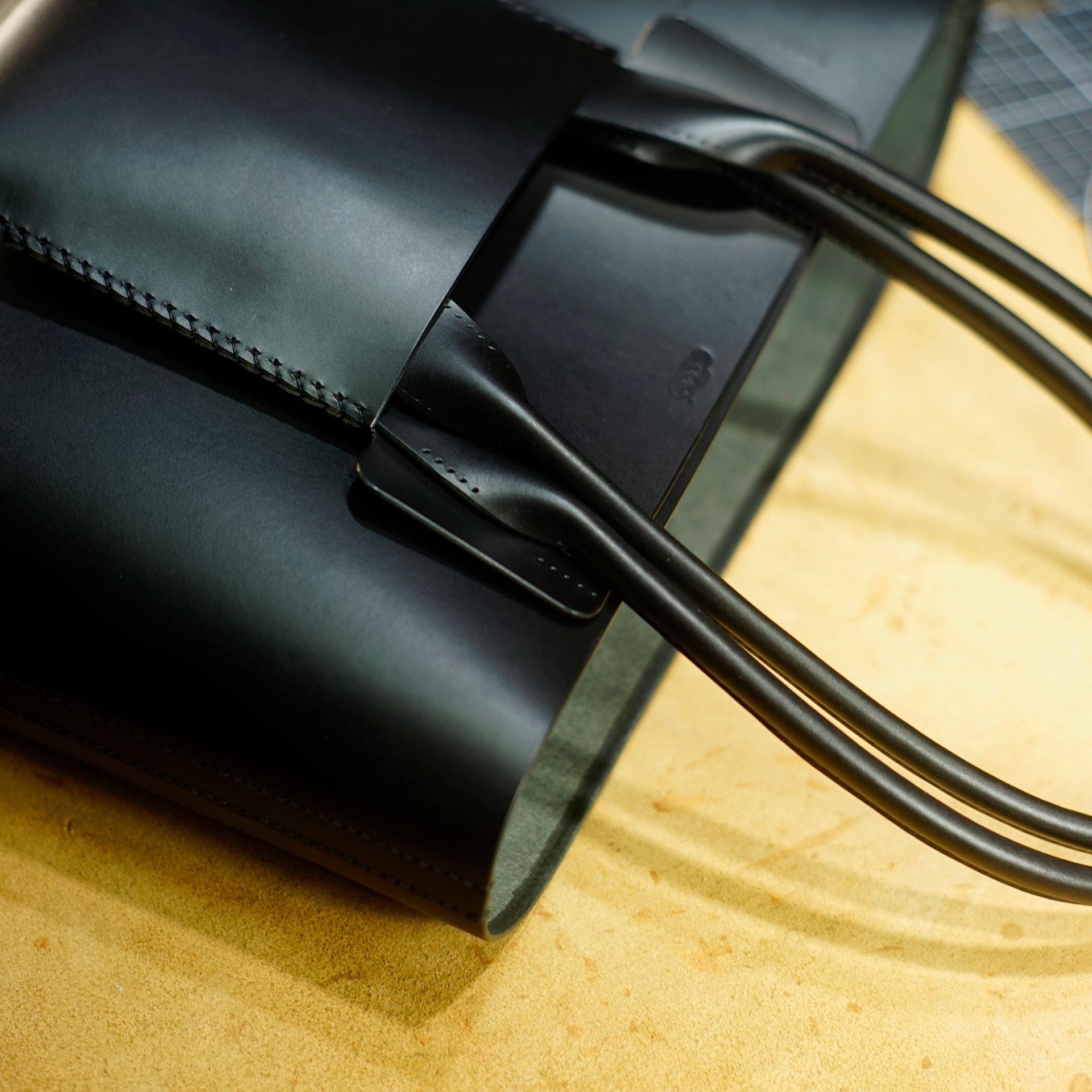 Fさんからご依頼いただいた、黒革のトートバッグ2型制作を引き続き行っております。