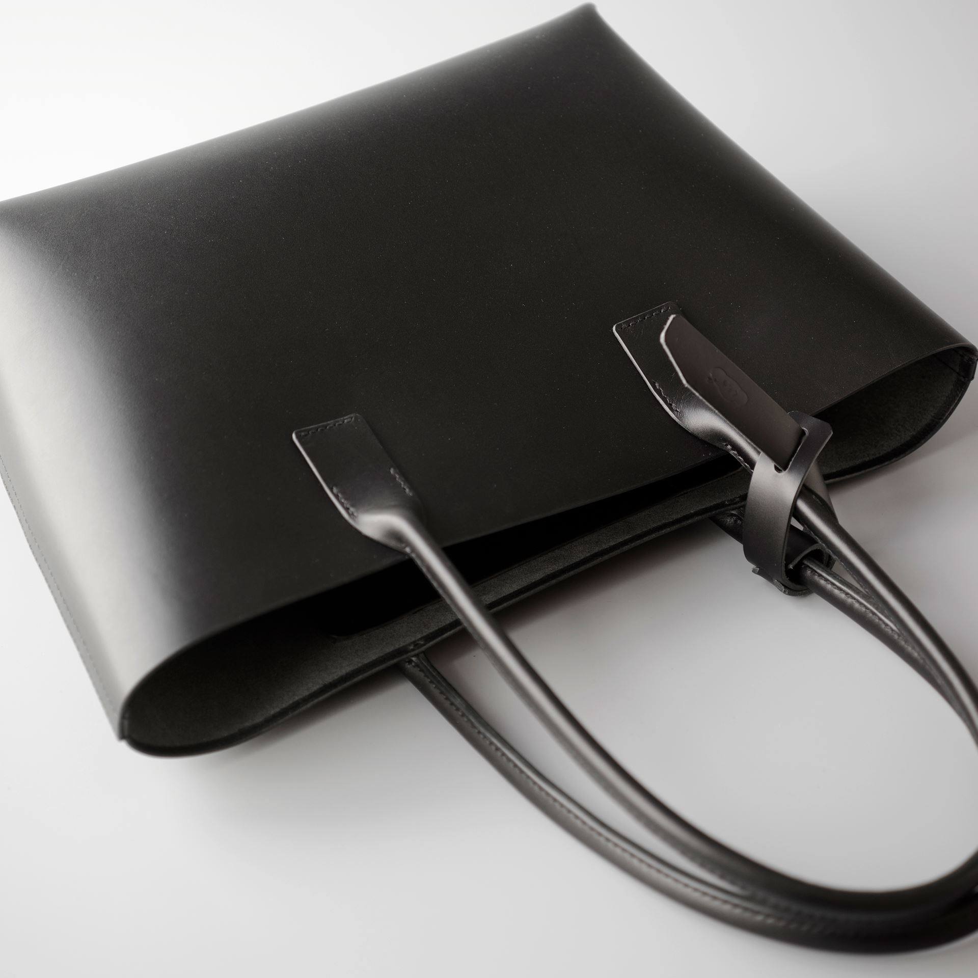 Fさんからご依頼いただいた、黒革のトートバッグ2型が完成しました。