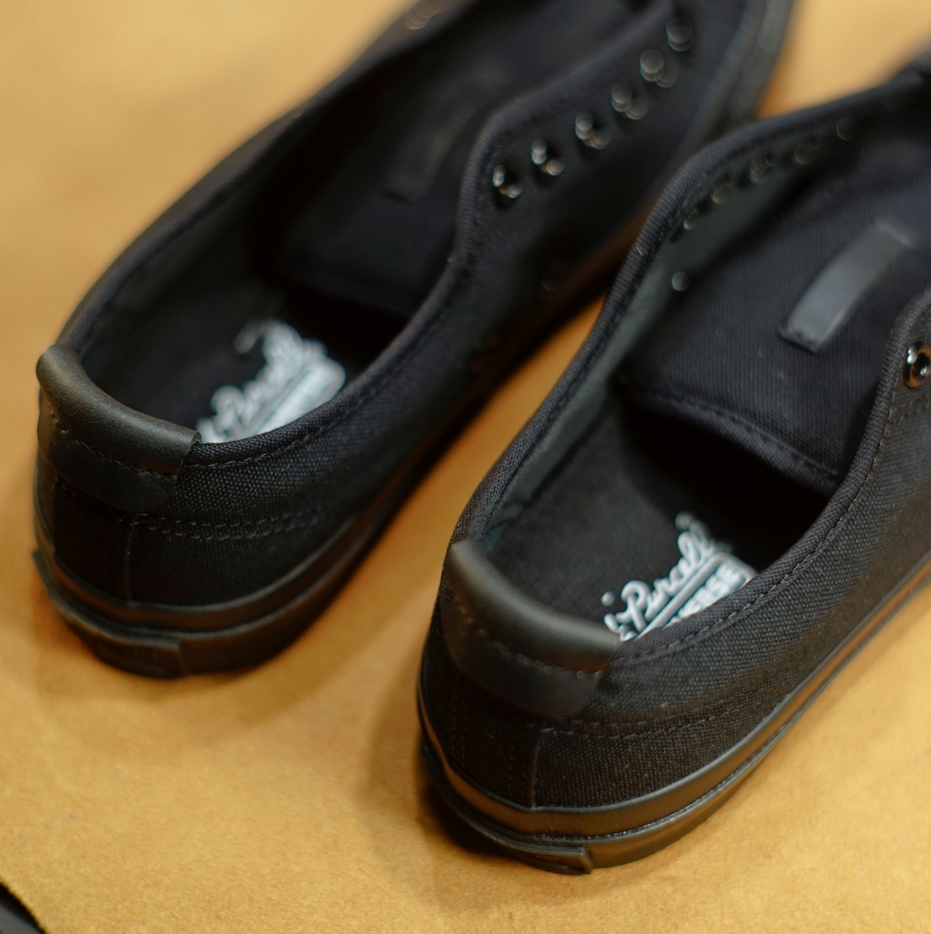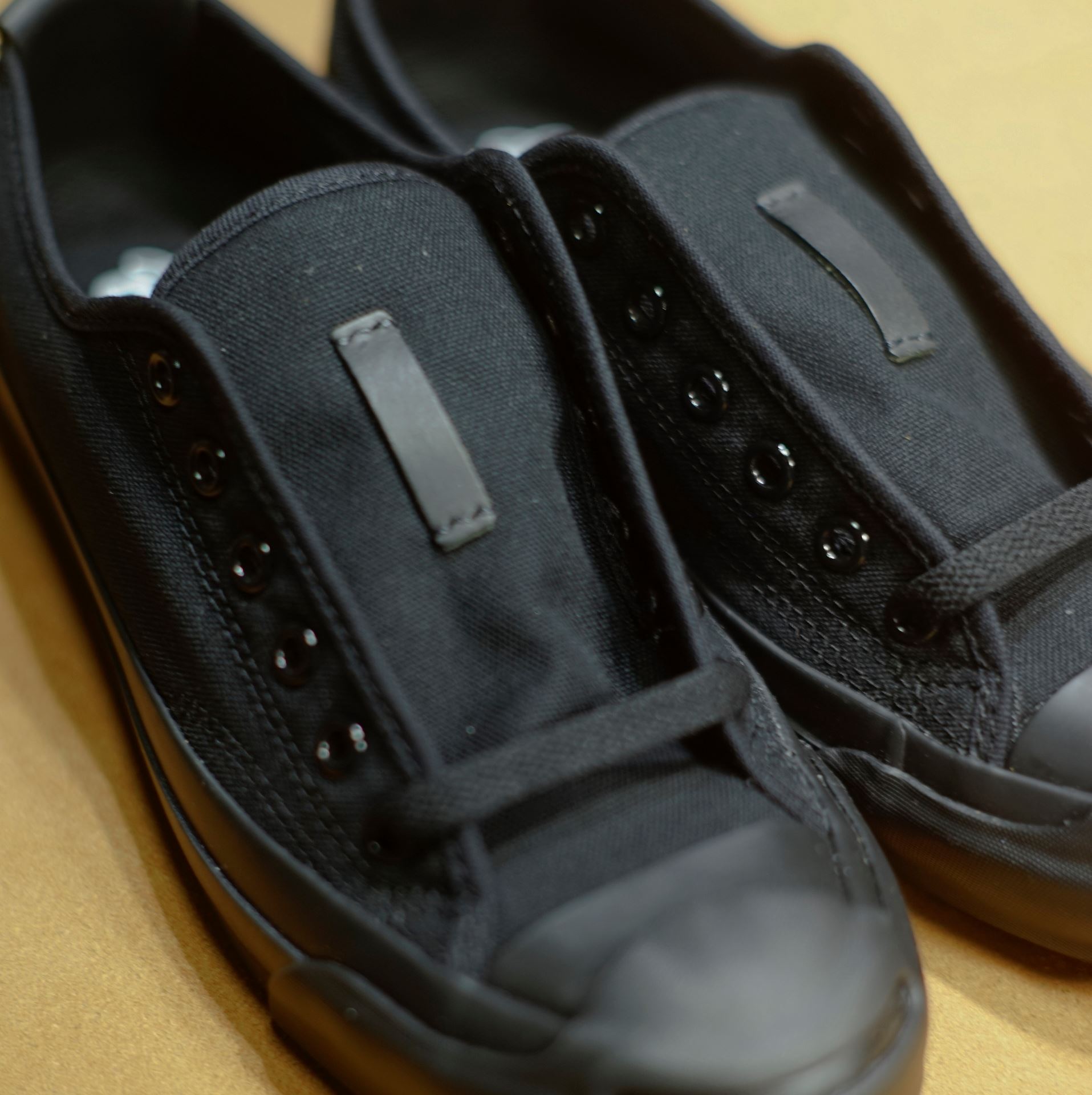 黒ひげ改は特別バージョンの青ひげ改です。名前は「黒ひげ改」。ソールの裏まで真っ黒な青ひげに黒のヌメ革パーツでカスタマイズしました。履きこむほどに革に艶が出てエイジングしていきます。