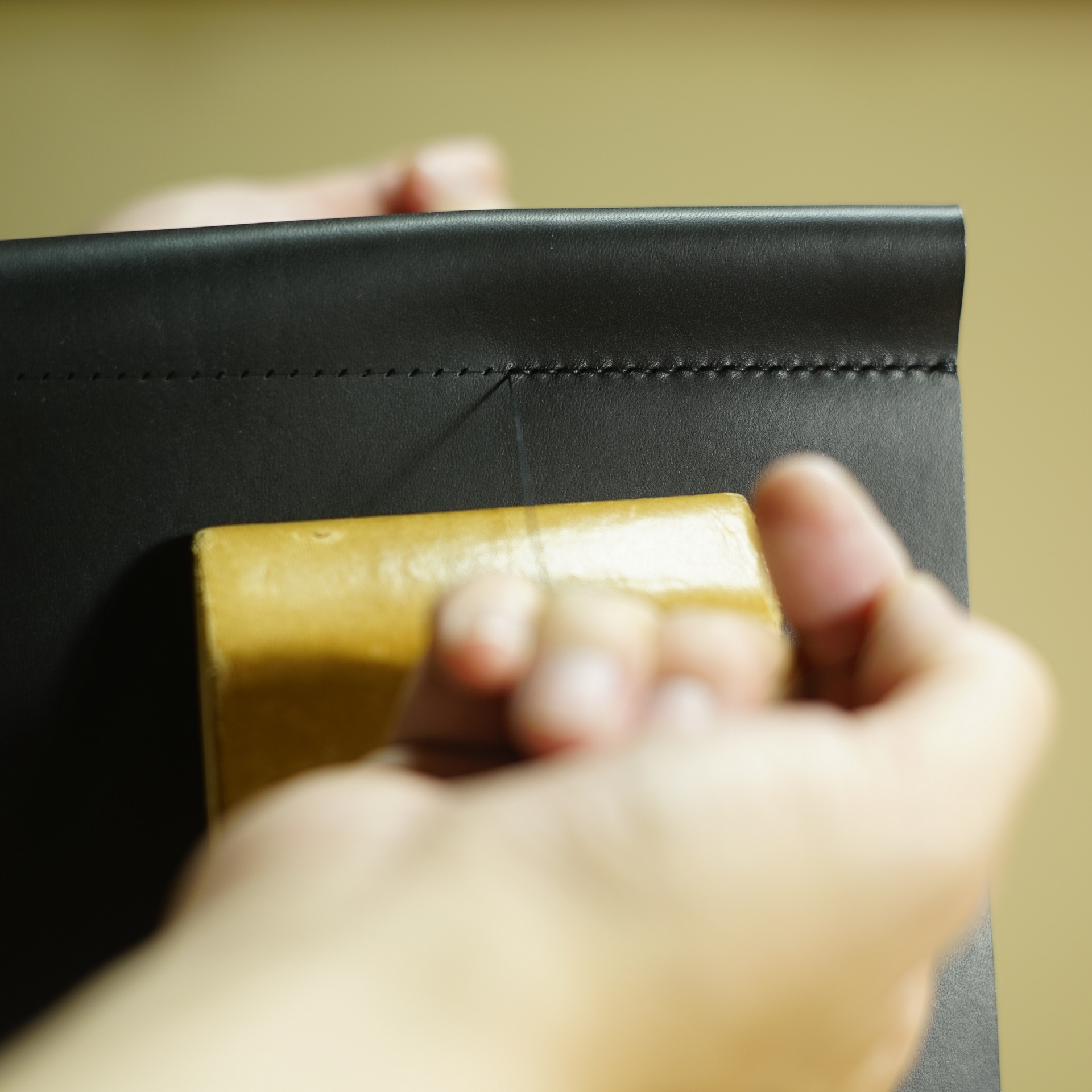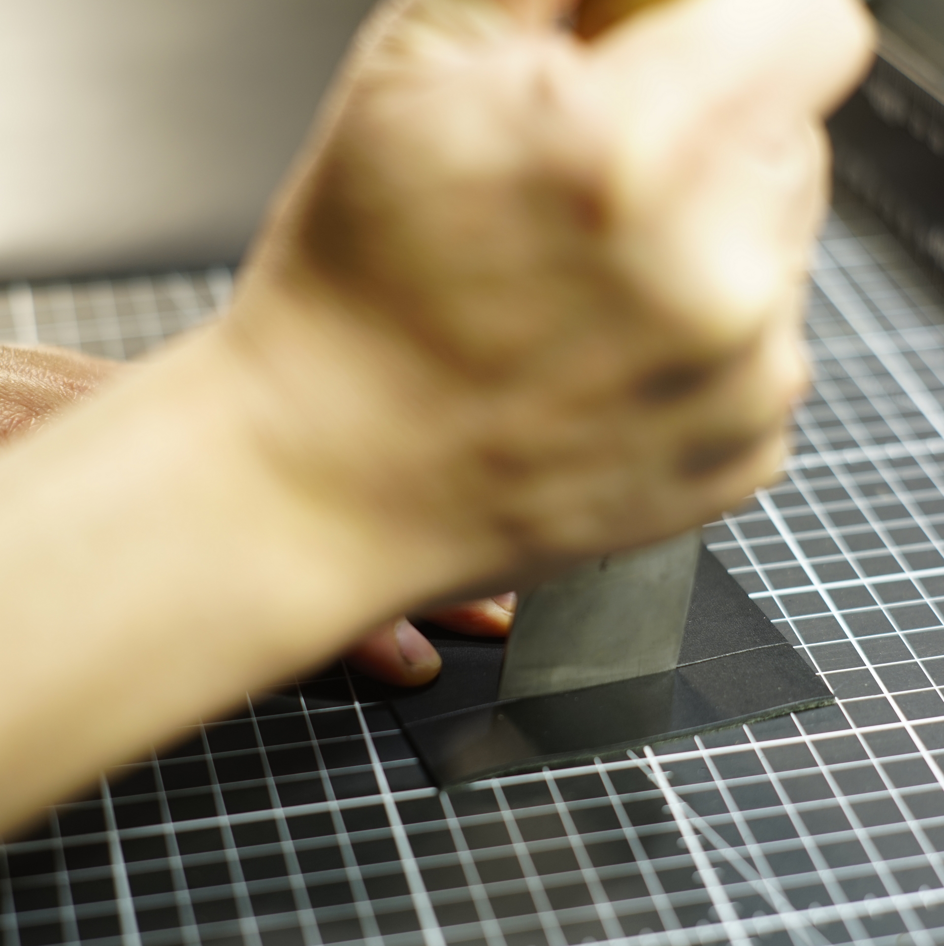 イタリアンソフトのネロを切り出して目打ち、刻印を入れて手縫いの下準備です。