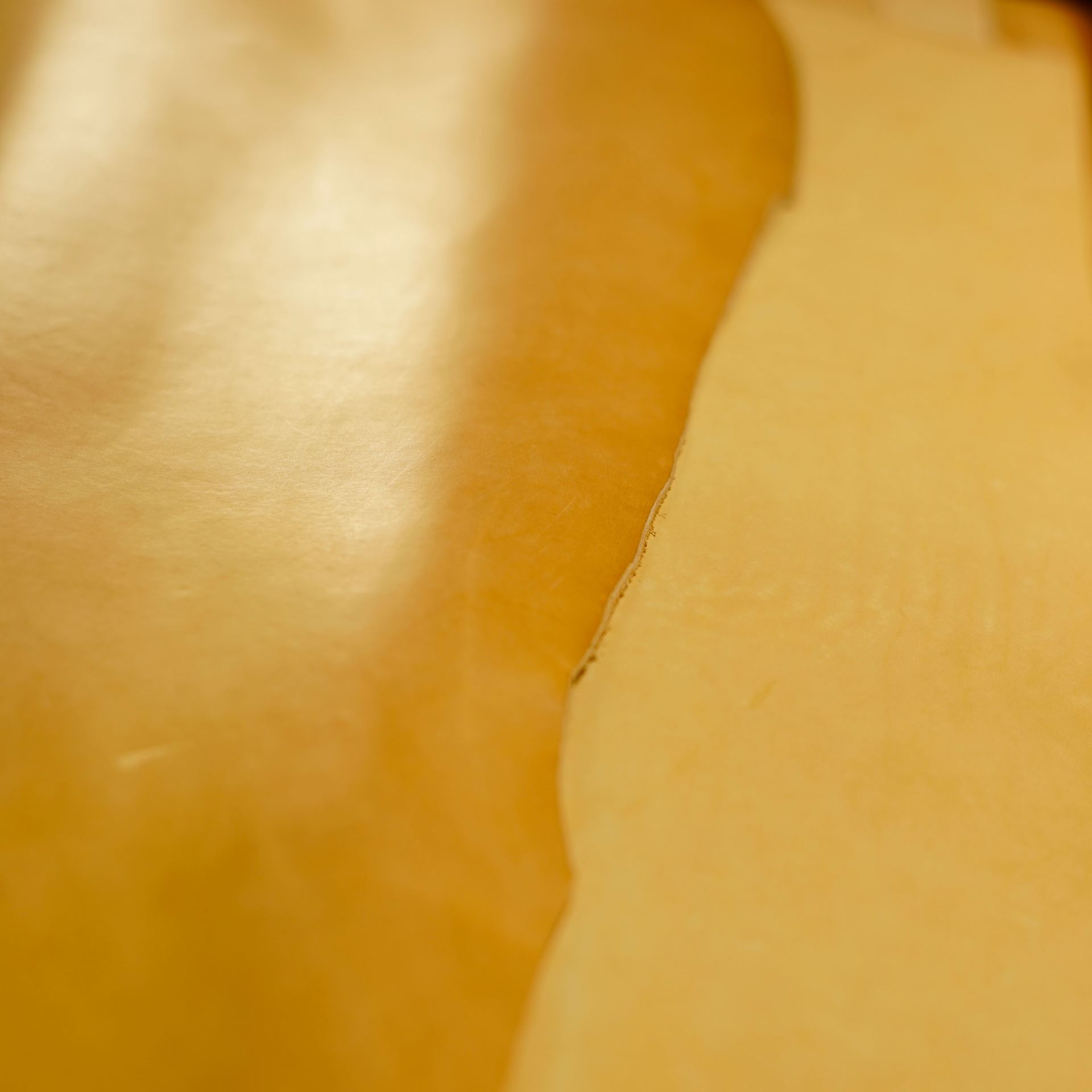 今回使用するのは生成りビンテージとなります。エイジングが進んで艶と飴色になった感じの加工を施しています。下の写真はイメージですが、左がビンテージで右が通常の生成りとなります。