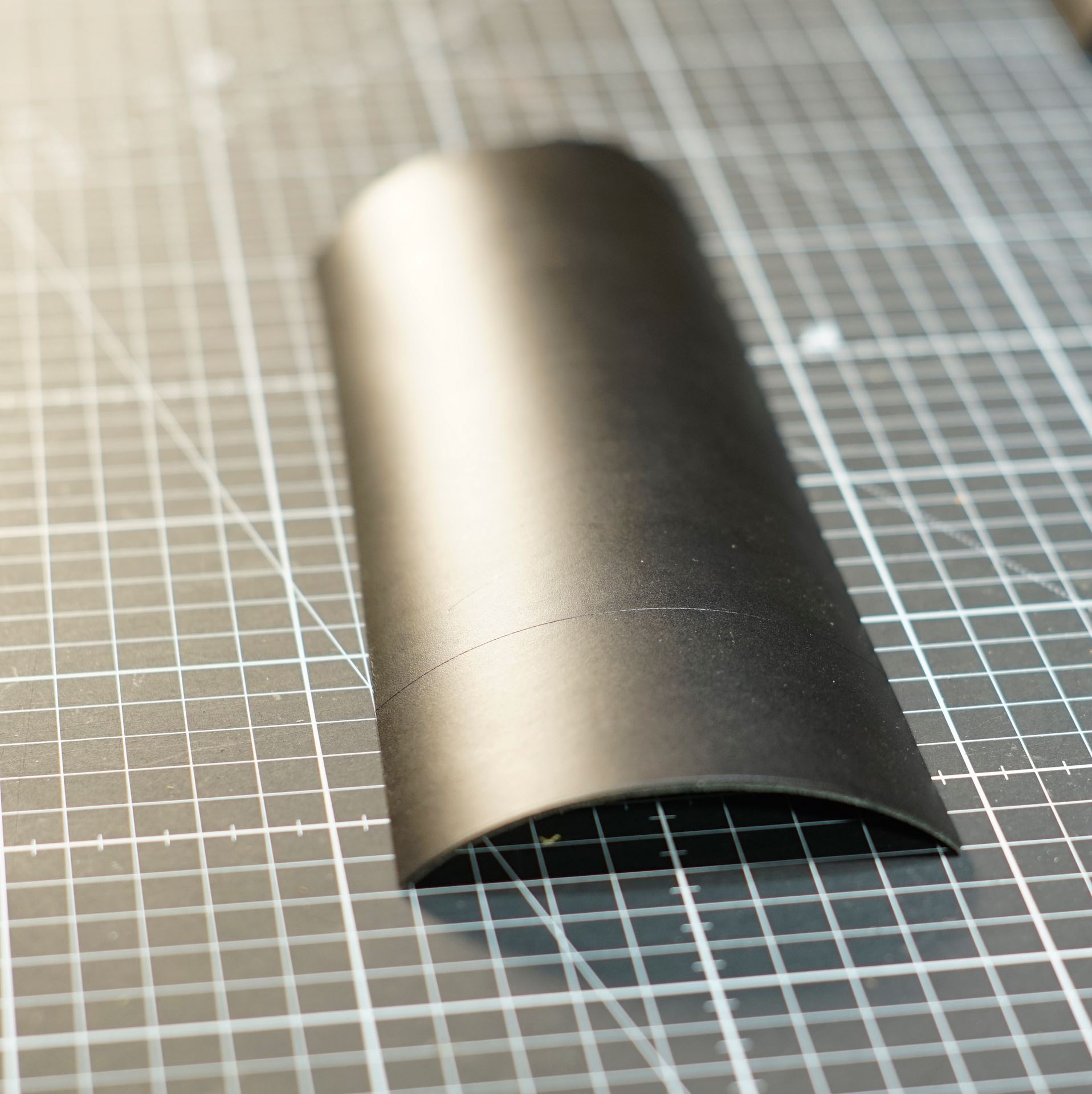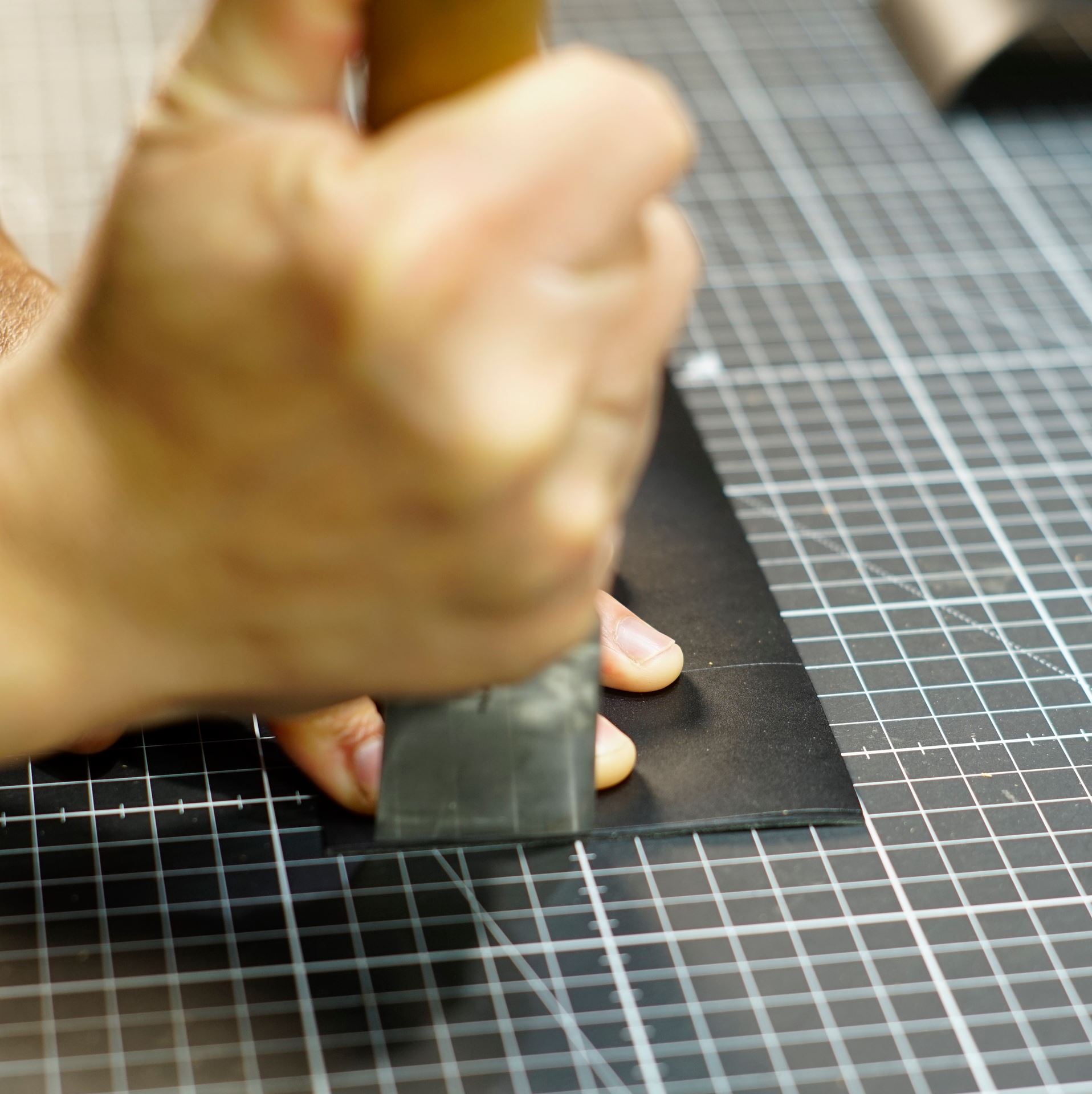 今回制作するのは黒革を使用したミニマリスト財布です。パーツ切出しと目打ち、打刻を終えております。AirTag対応型なのでパーツ類がいつもより多く、内蔵されるポケットの穴もあけてあります。