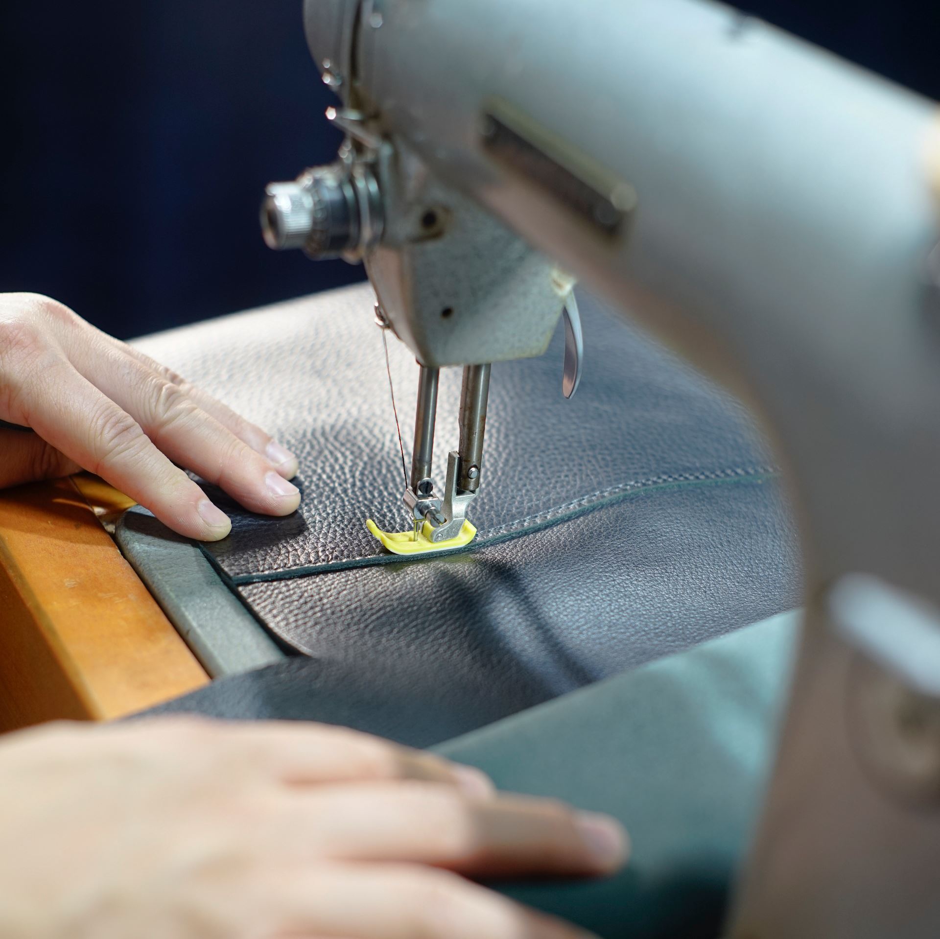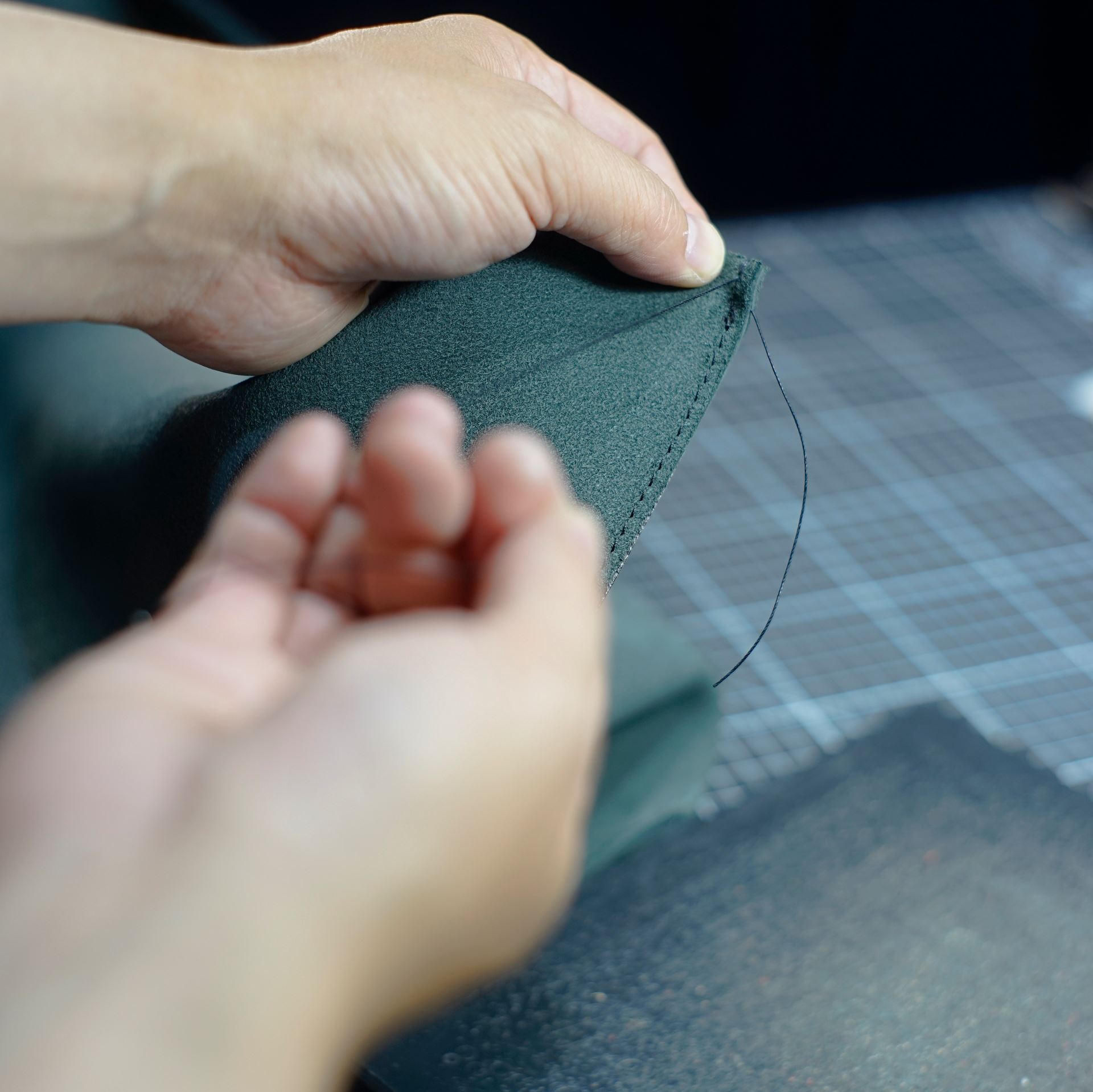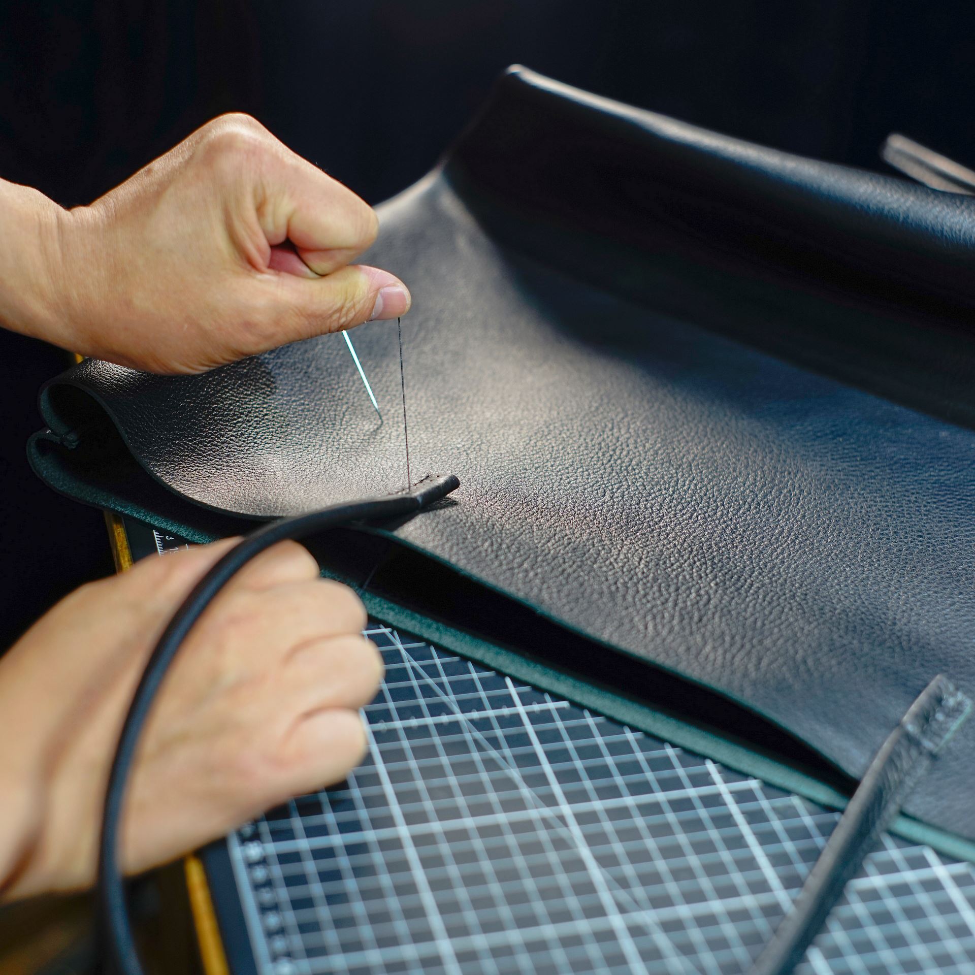 すべてを縫い上げたら革を裏返し、持ち手を縫い付ければ完成となります。