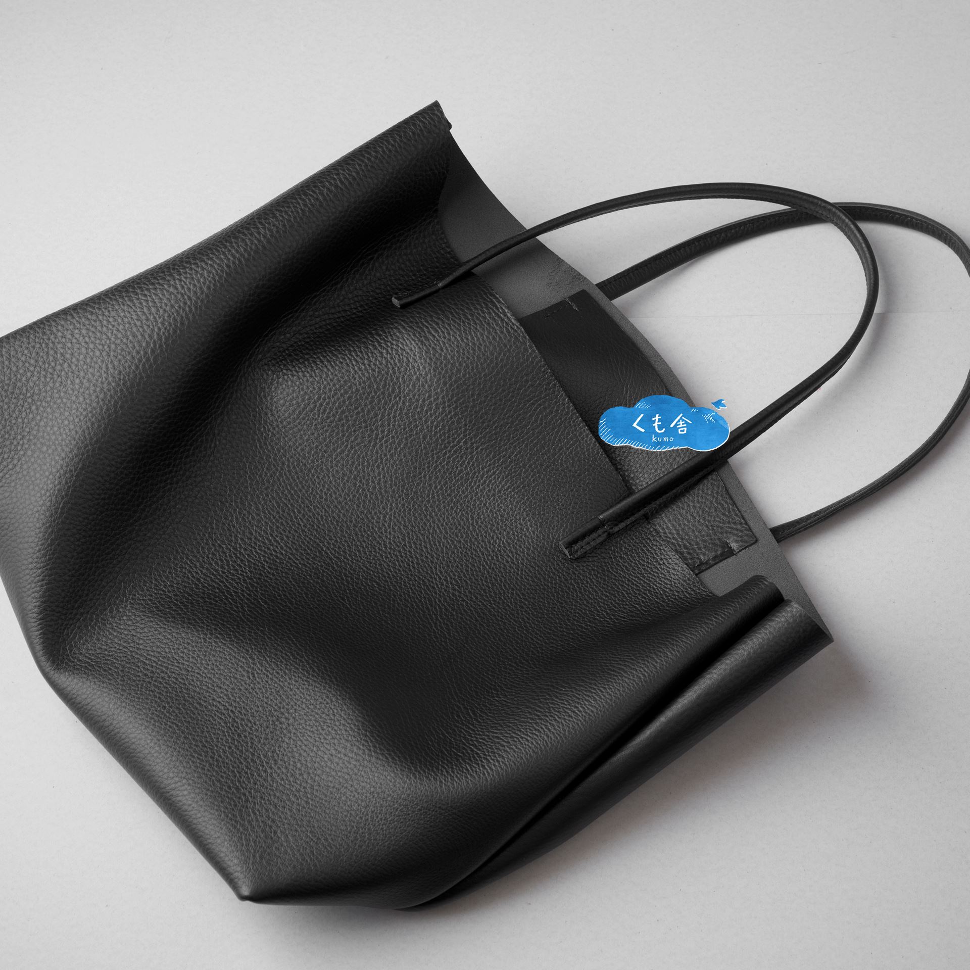 トートバッグ業務型SLは、タフな扱いにも耐えられるよう、水・汚れ・傷に強くて柔らかい、クローム鞣しのシボ革を使用したシンプルなトートバッグです。沢山の道具を放り込めるようマチも大きく、B4ファイルが横にすっぽり入る大きさになっています。