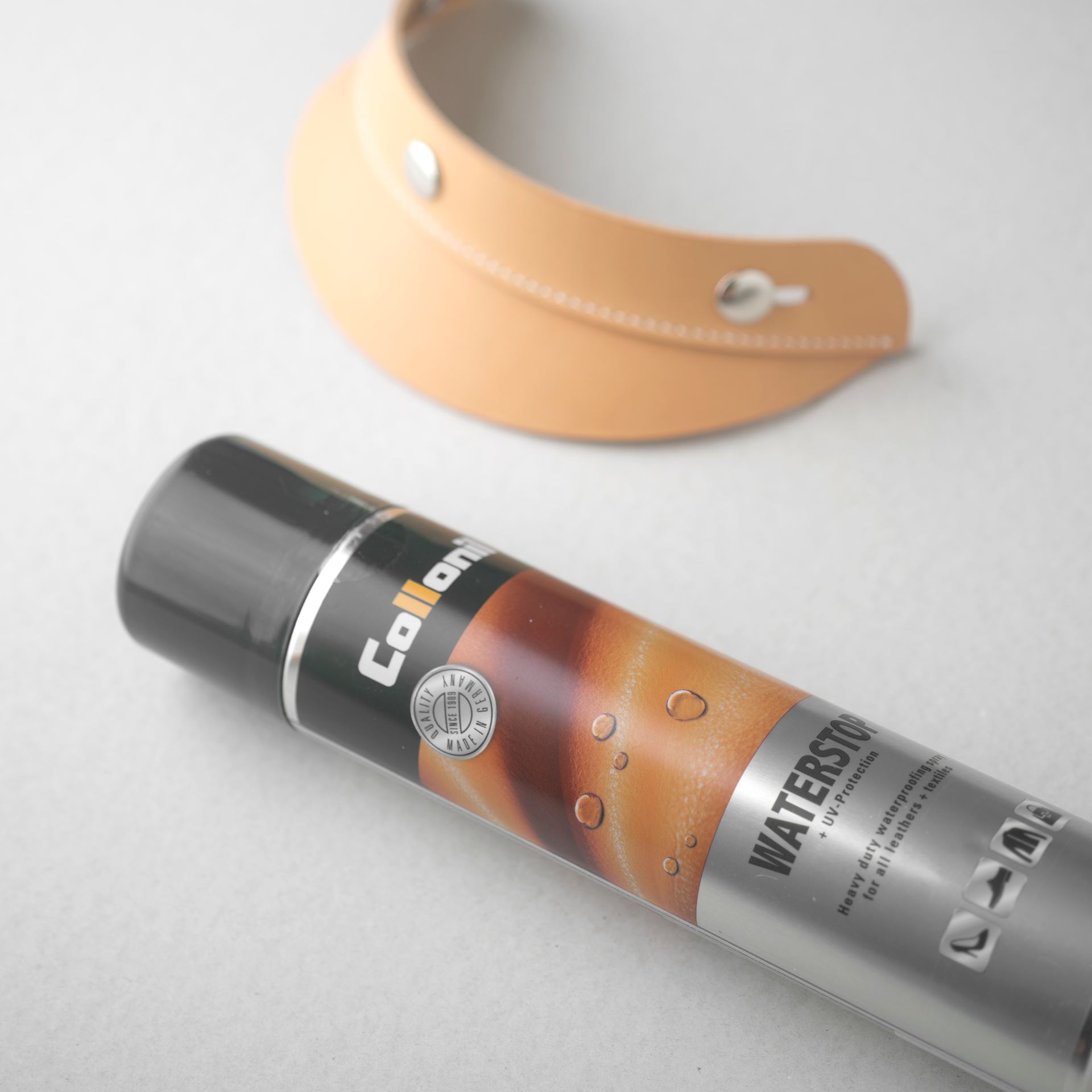 完成しましたが、Oさんのご要望で防水スプレーを塗布させて頂きました。コロニルのウォーターストップです。色が変わらないので生成り革にぴったりです。完全防水ではありませんが、ちょっとした水濡れは防げます。