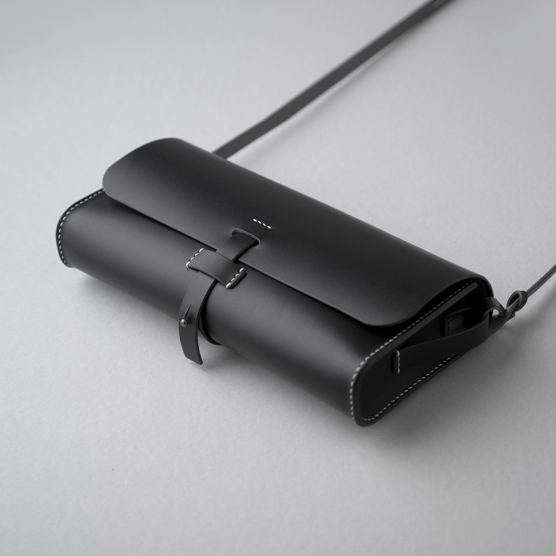 くも舎の耳つき肩かけカバンは、最上級のヌメ革を使用した横長の小さなバッグです。サイズは一般的な長財布や文庫本、携帯電話などが入る大きさです。カバンの側面には大きな耳がついていますので、長いベルトをつければショルダーバッグになります。