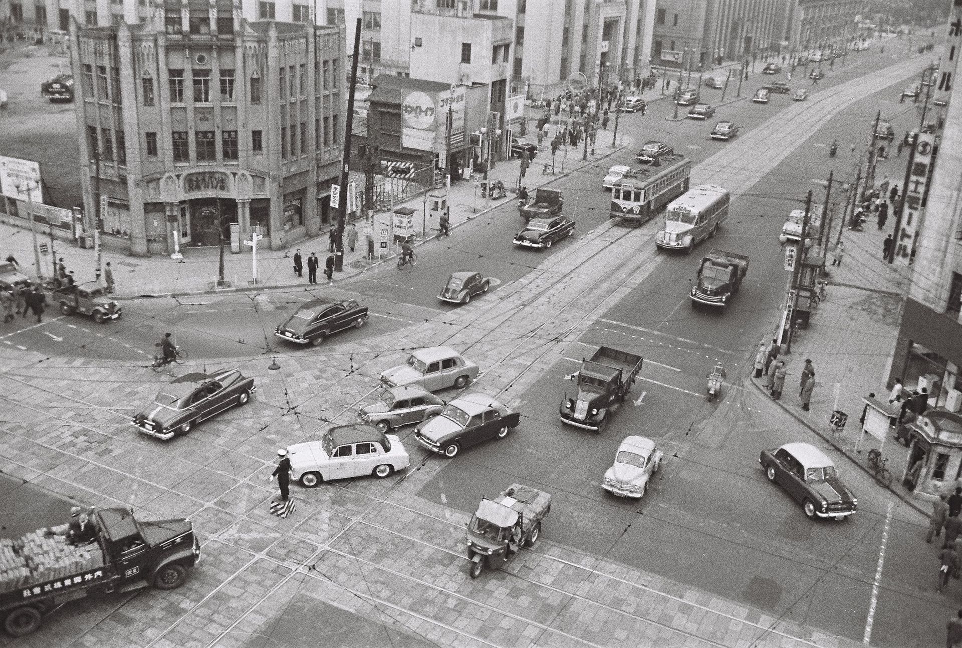 鈴木カバン店については詳細がわかりませんが、東京都オープンデータのアーカイブに昭和30年~39年当時の田村町一丁目交差点(現・西新橋交差点))に鈴木カバン店のビルが確認できます。ビルの目の前に都電田村町一丁目の停留所があったそうです。
