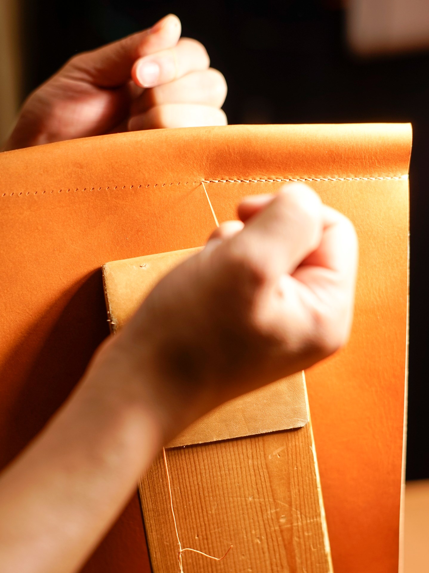 Hand stitching with 00 natural in Rikka linen thread for the natural passport size and 48 honey thread for the natural vintage regular size.