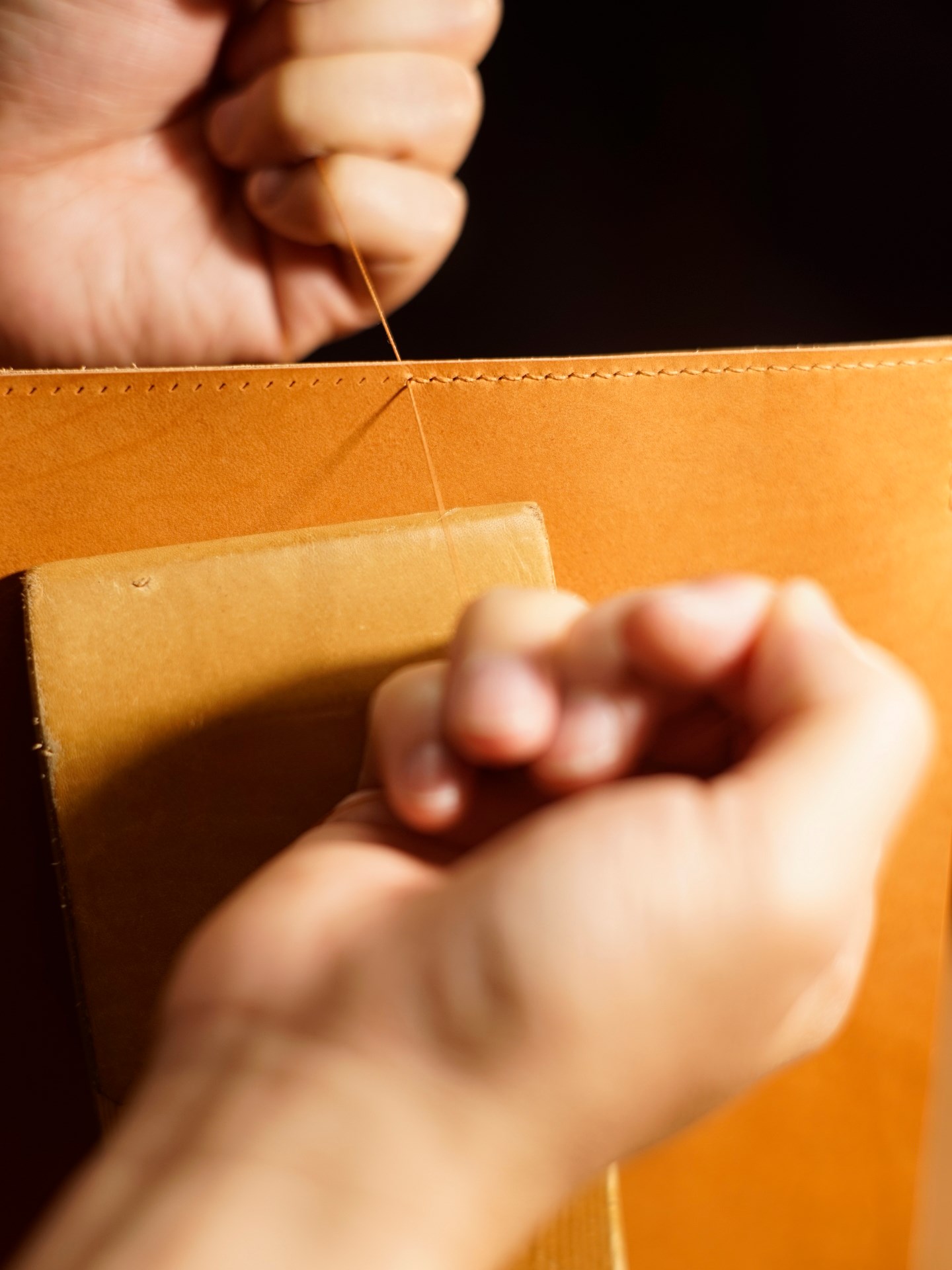 Stitching is done with Rikka linen thread.