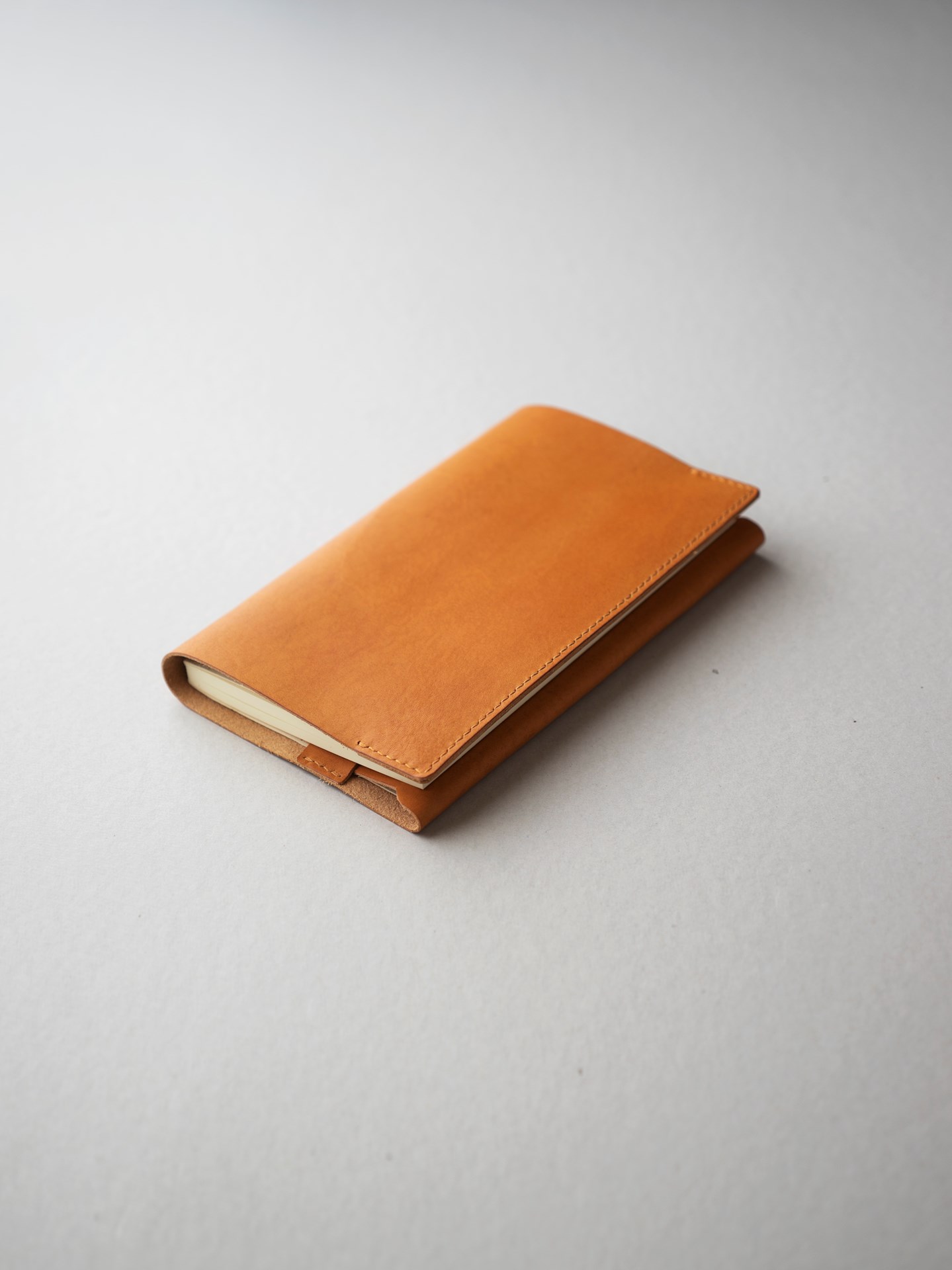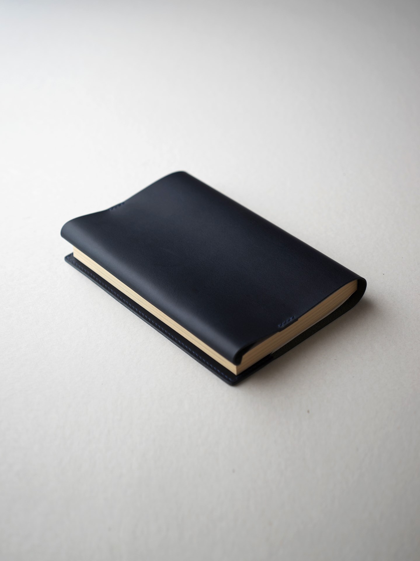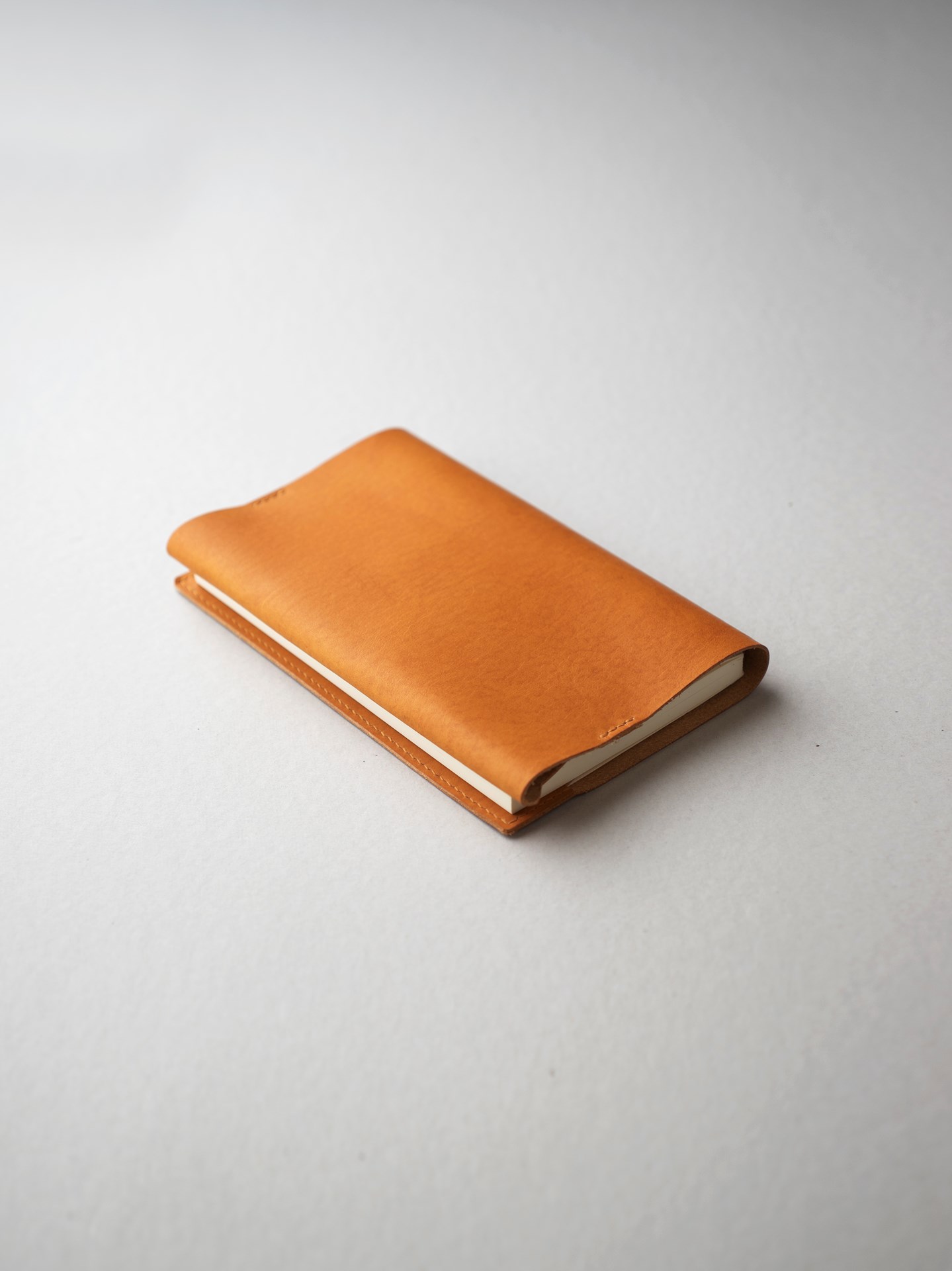 This simple book cover is hand stitched with linen thread on vegetable-tanned leather. This is an evolution of Book Cover Type 01, making it easier to read books.
