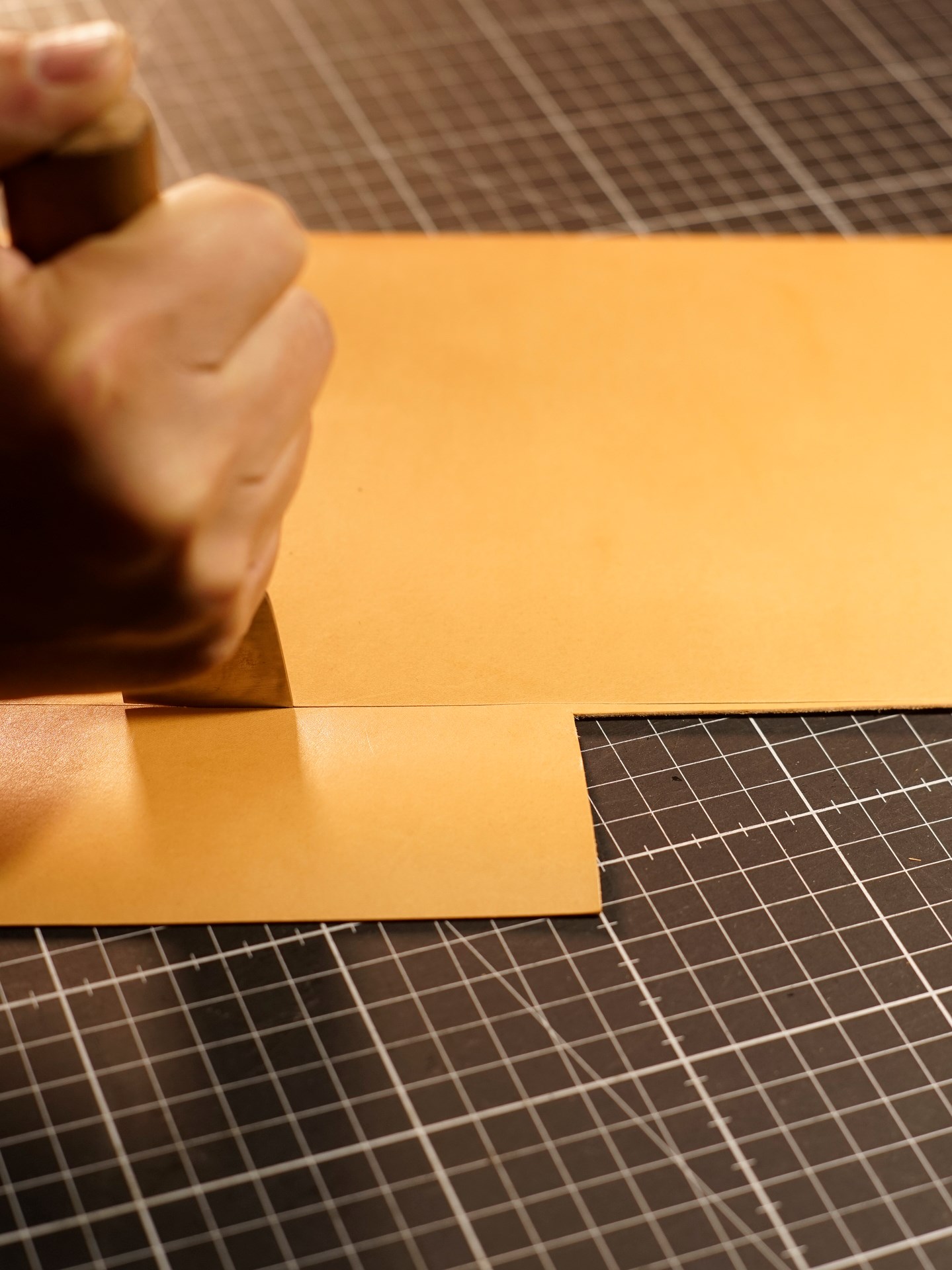 イタリアンソフトの生成りをカットして、くも舎刻印、目打ち、軽いコバ磨きを済ませます。