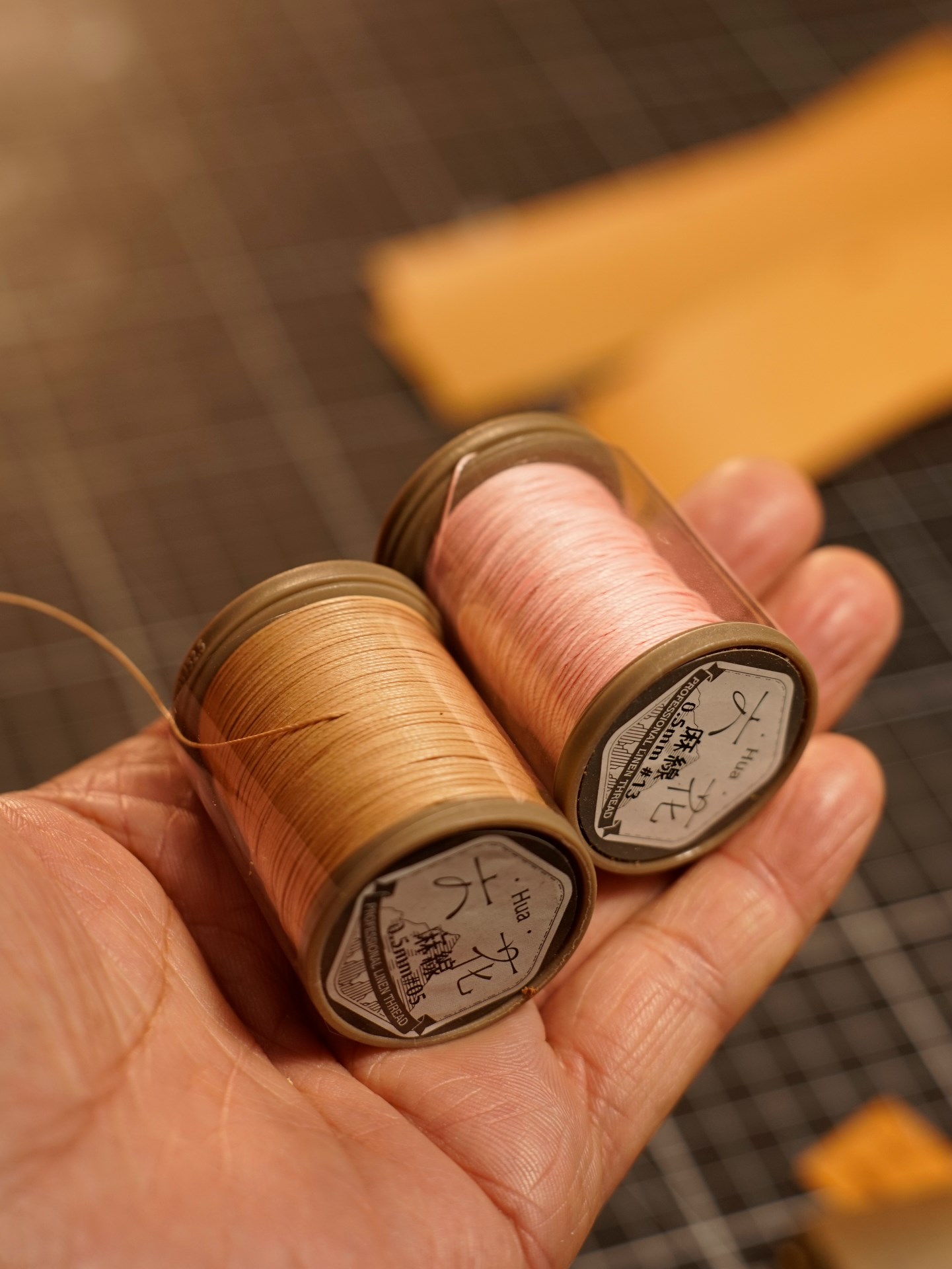 Stitching is done with Rikka linen thread.