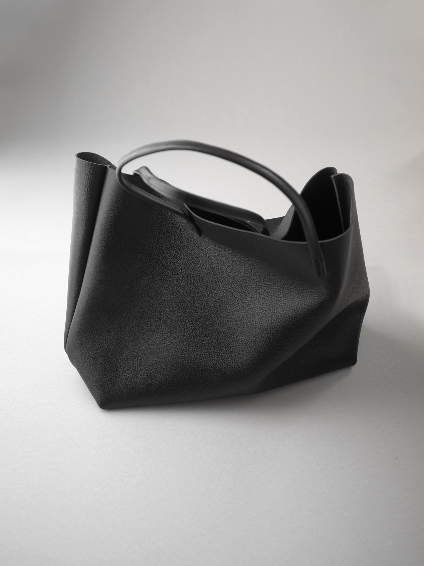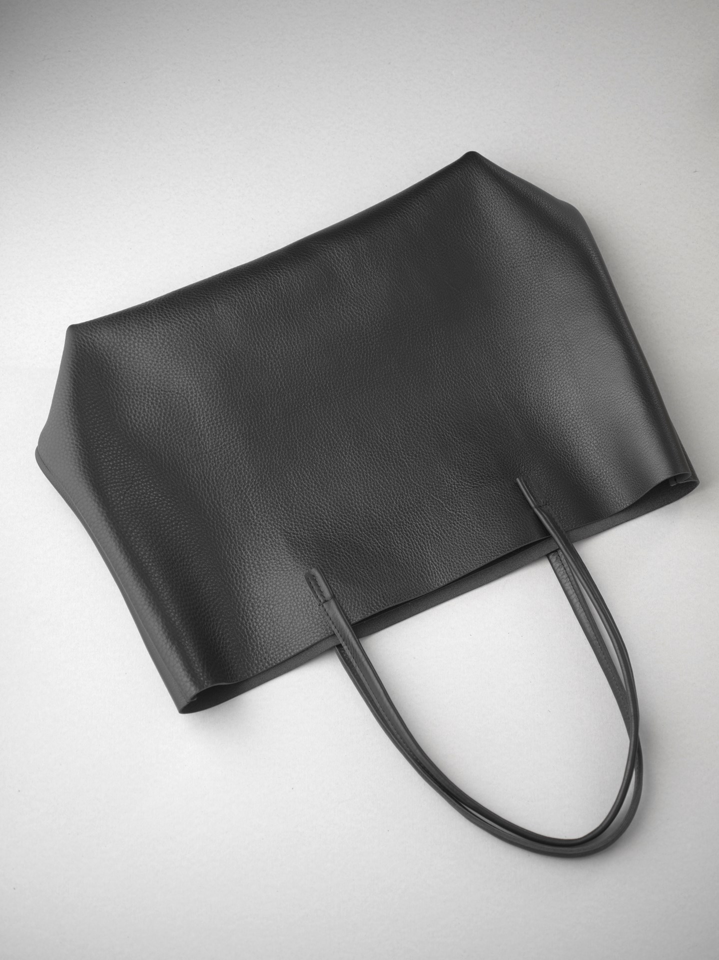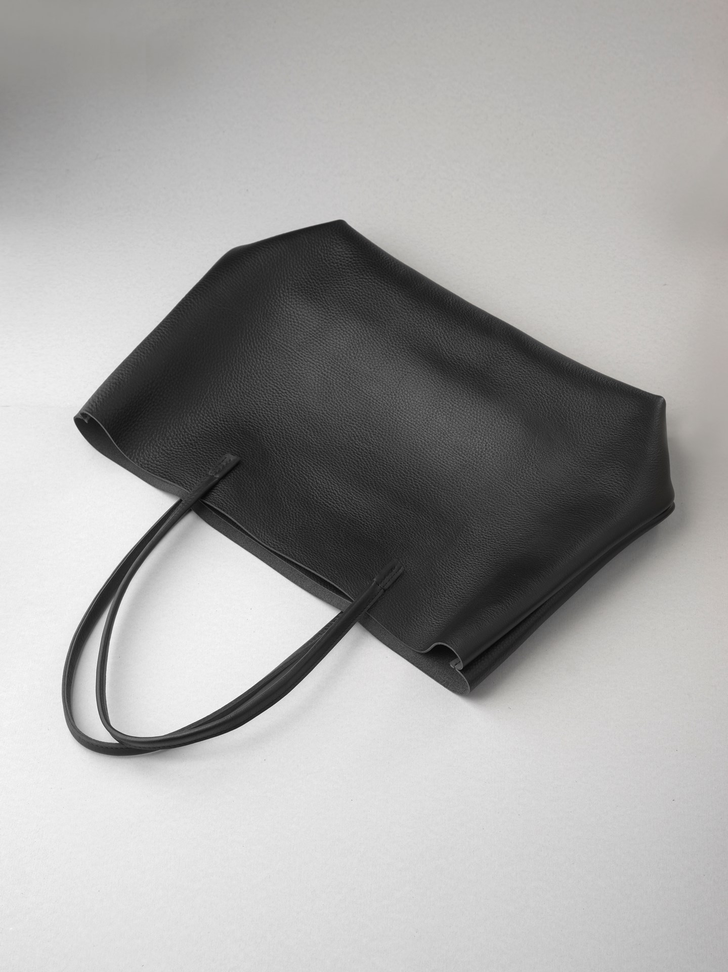 トートバッグ業務型SLは、タフな扱いにも耐えられるよう、水・汚れ・傷に強くて柔らかい、クローム鞣しのシボ革を使用したシンプルなトートバッグです。沢山の道具を放り込めるようマチも大きく、B4ファイルが横にすっぽり入る大きさになっています。