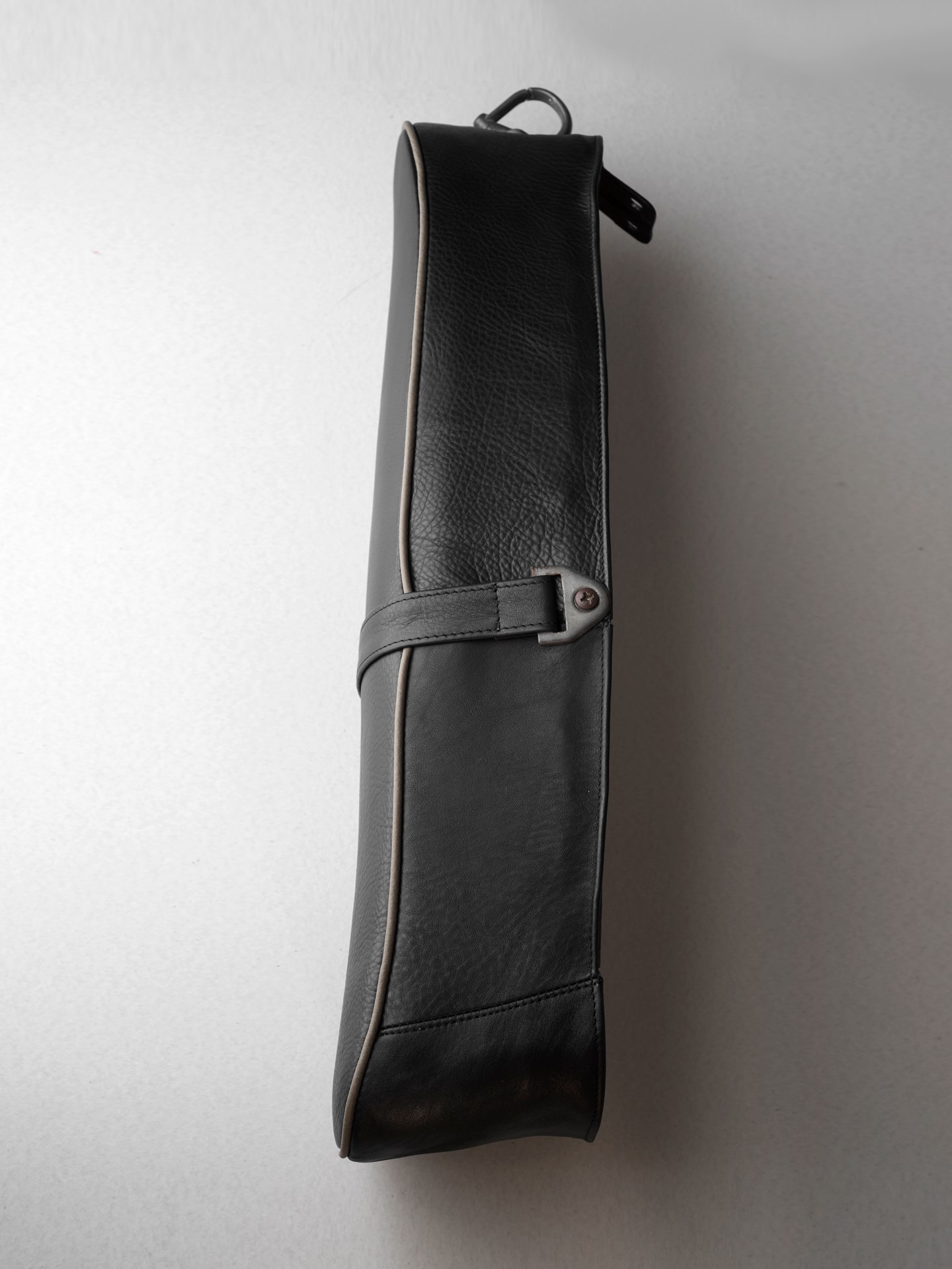 ハギレの為大きな革が使えないのでつぎはぎだらけですが、タンデムベルトが被るので問題ありません。パイピングはグレーの革が無くてトリヨンのエトープで作りました。天面は全て手縫いで縫い合わせています。