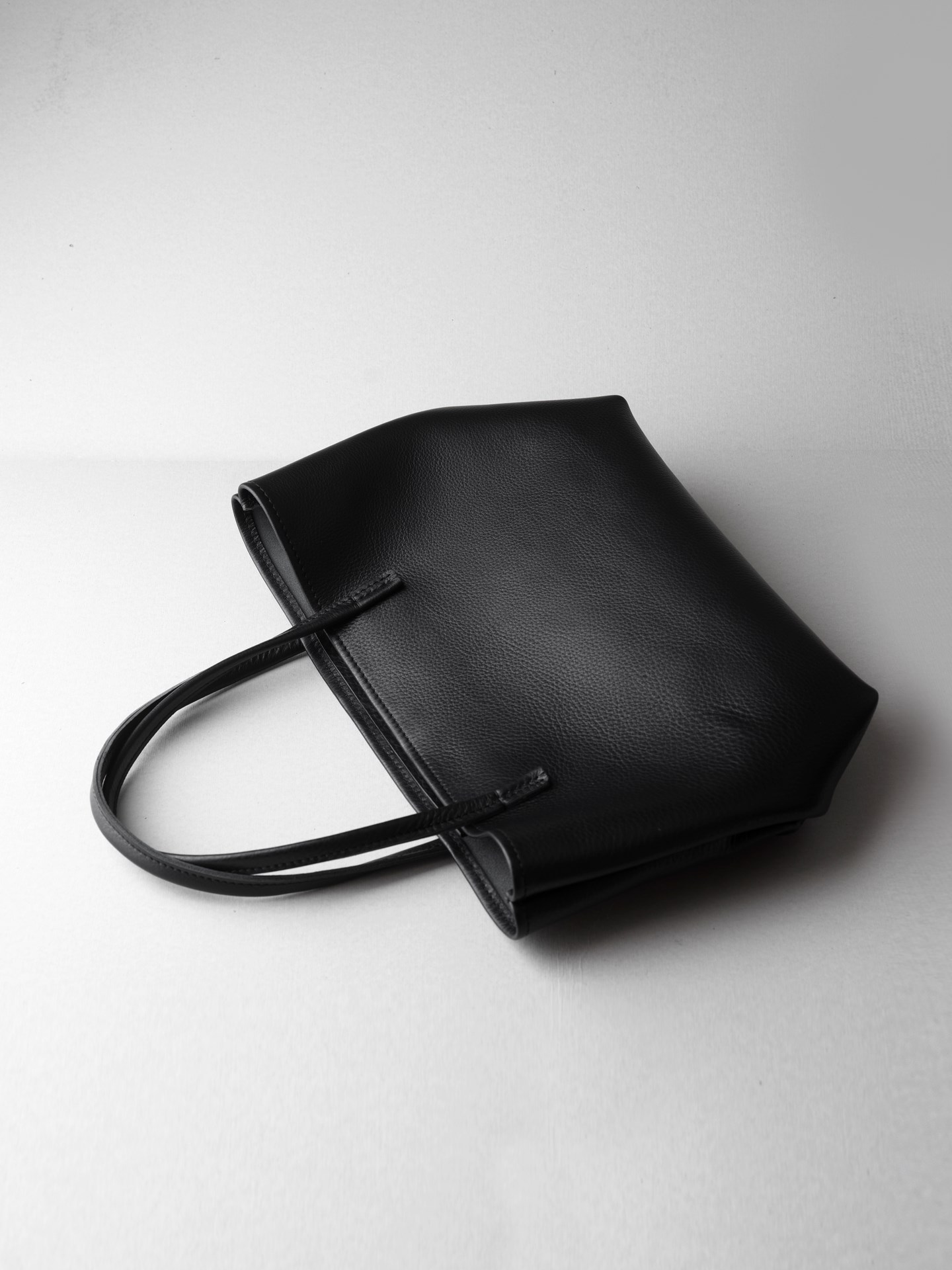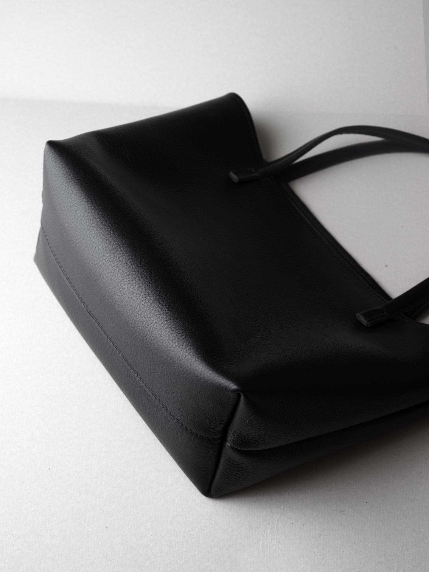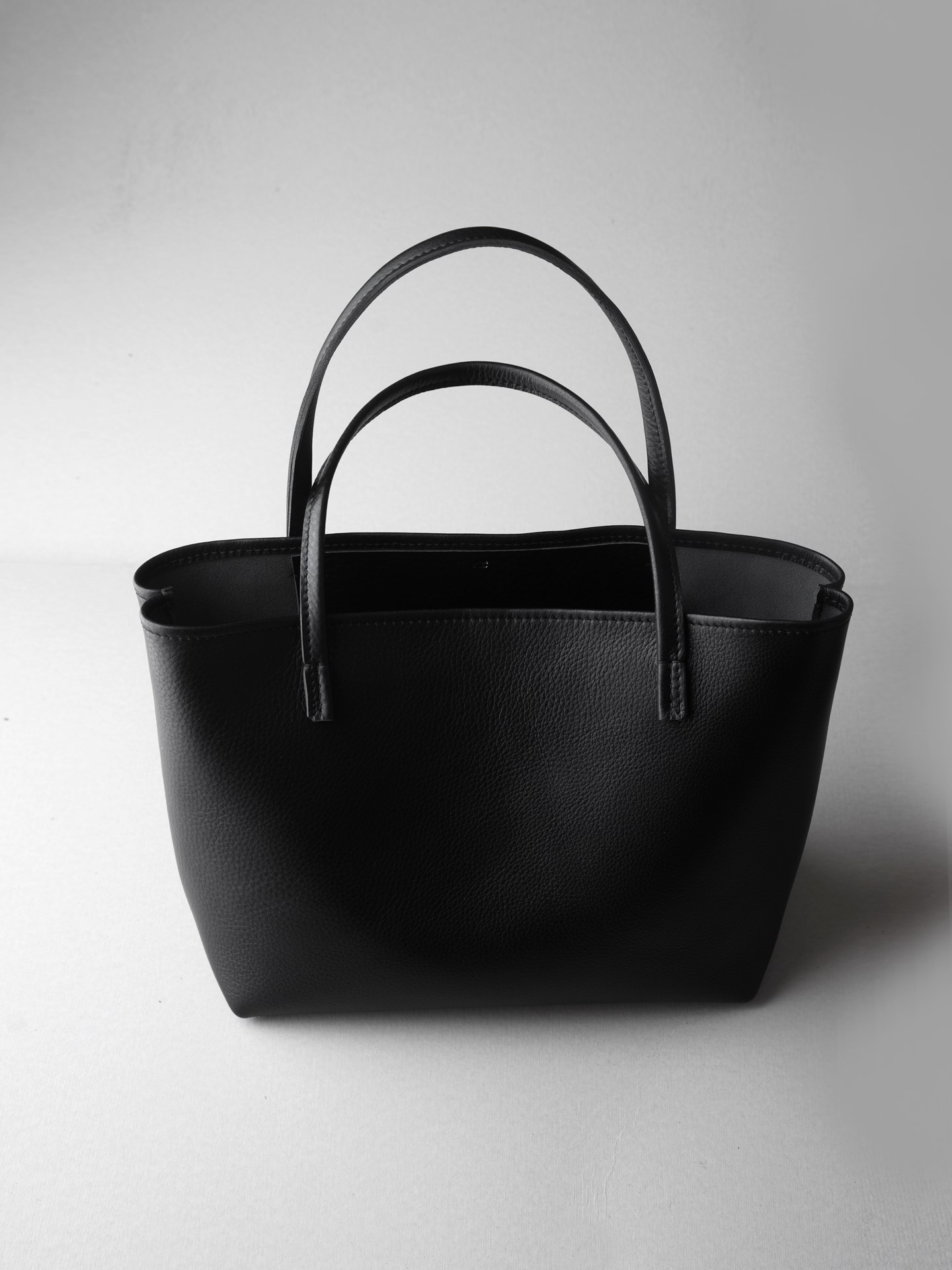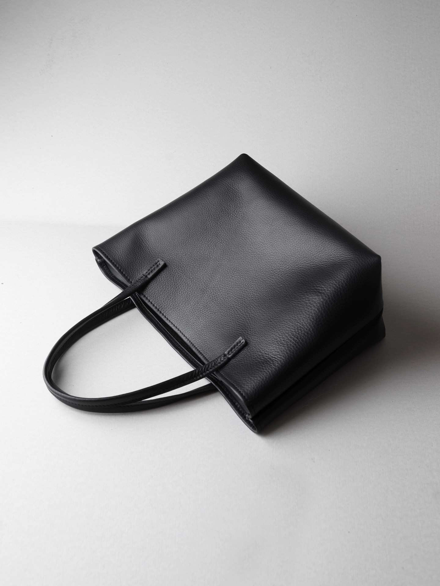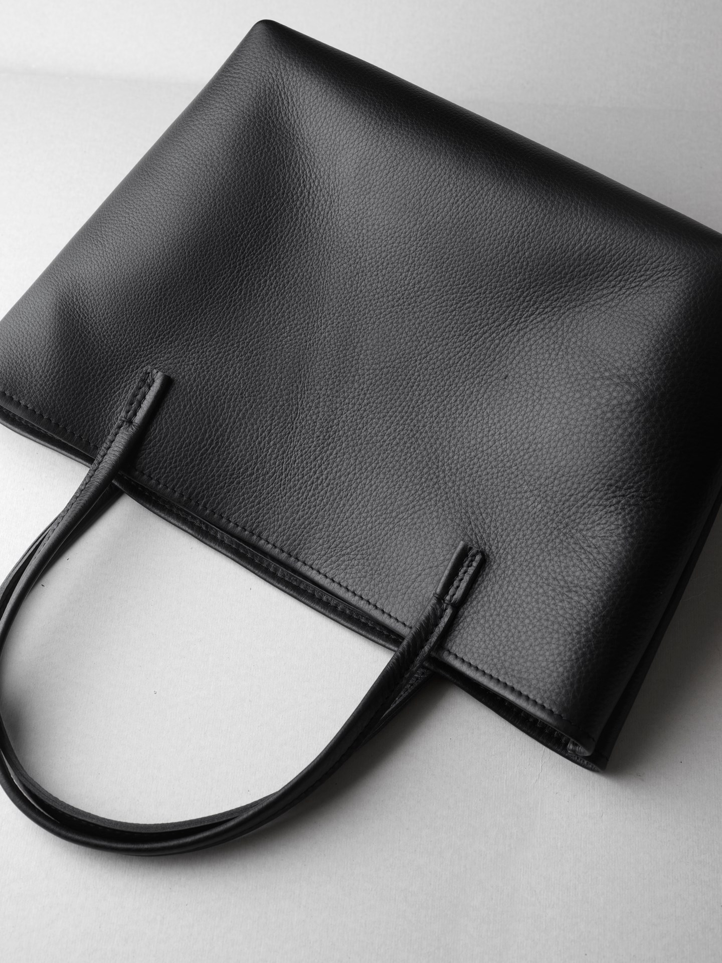 トートバッグ業務型SLは、タフな扱いにも耐えられるよう、水・汚れ・傷に強くて柔らかい、クローム鞣しのシボ革を使用したシンプルなトートバッグです。沢山の道具を放り込めるようマチも大きく、B4ファイルが横にすっぽり入る大きさになっています。
