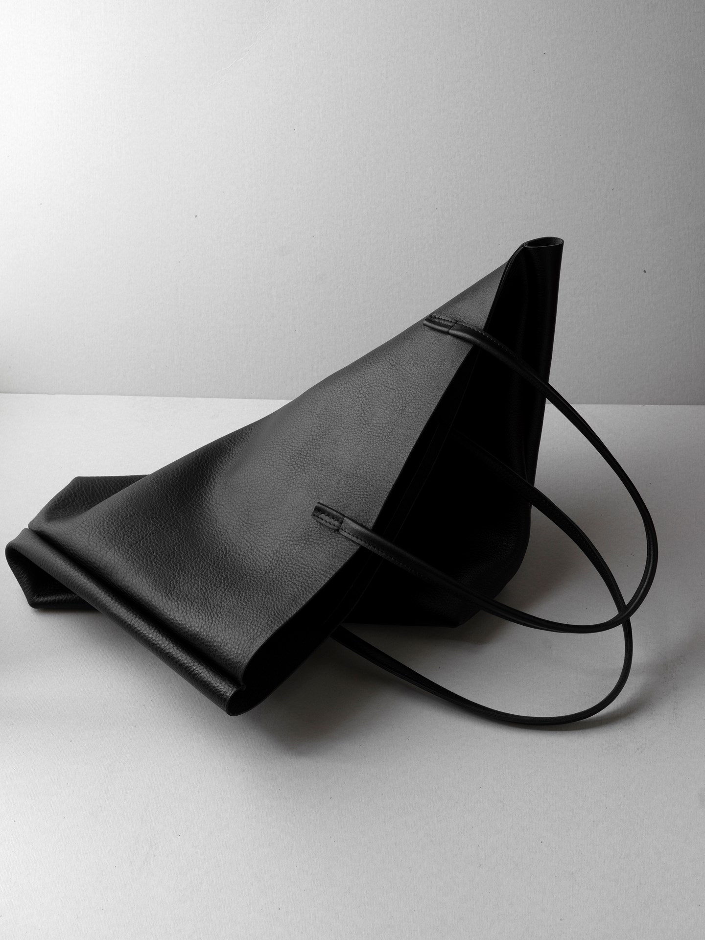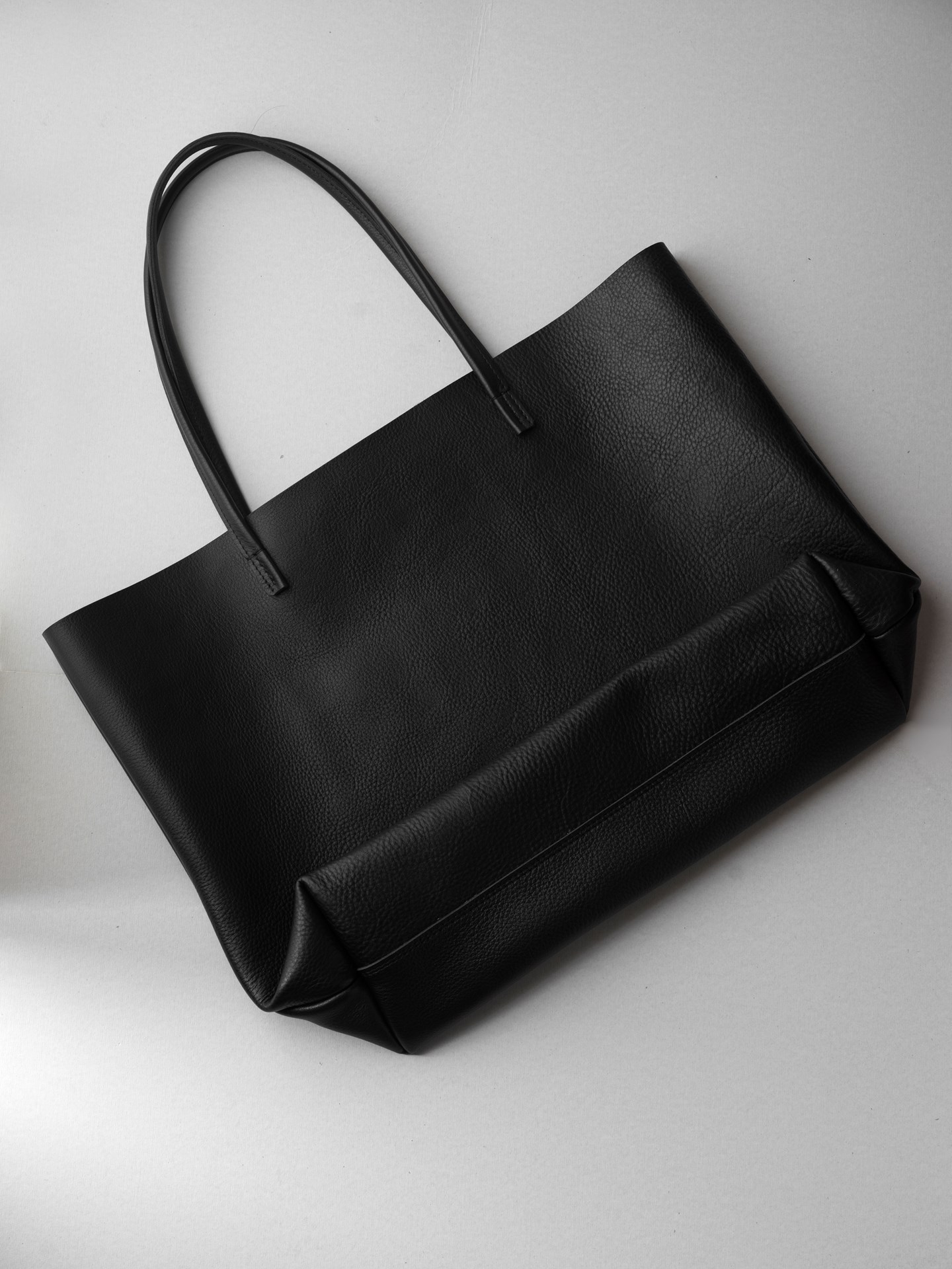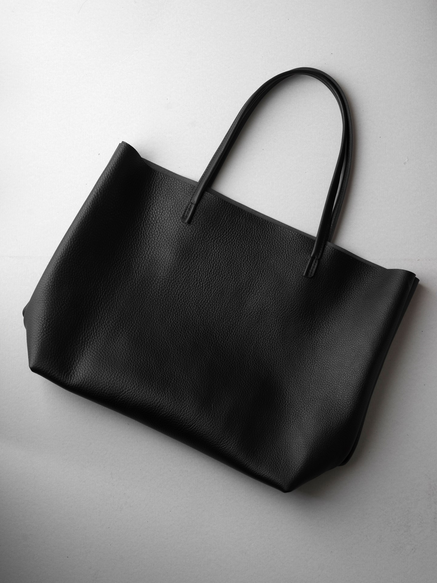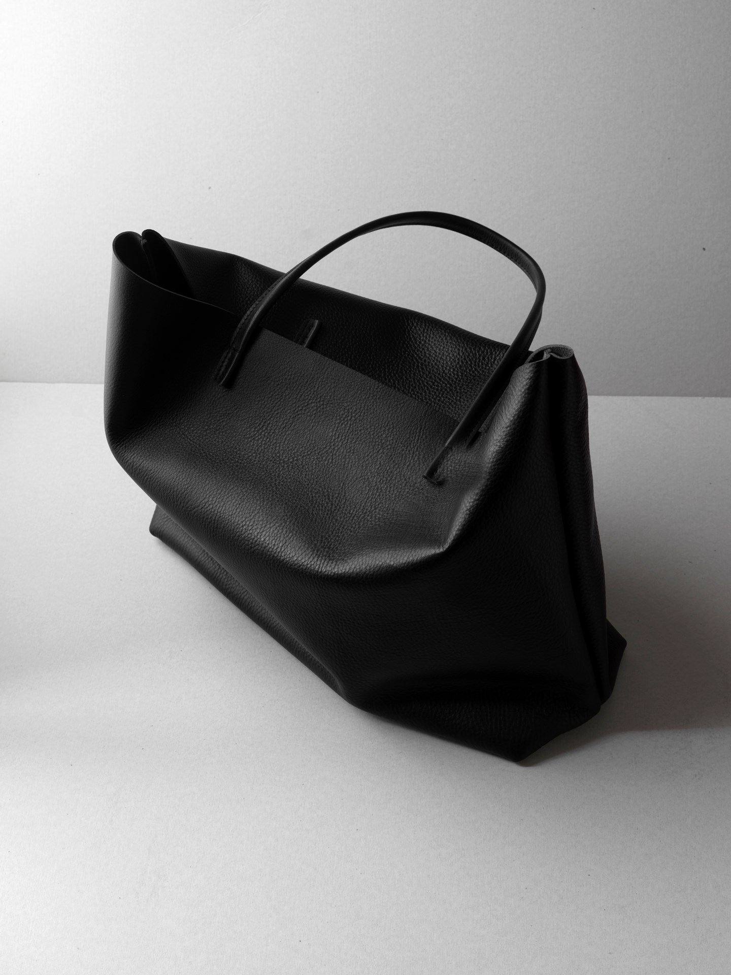 トートバッグ業務型SLは、タフな扱いにも耐えられるよう、水・汚れ・傷に強くて柔らかい、クローム鞣しのシボ革を使用したシンプルなトートバッグです。沢山の道具を放り込めるようマチも大きく、B4ファイルが横にすっぽり入る大きさになっています。
