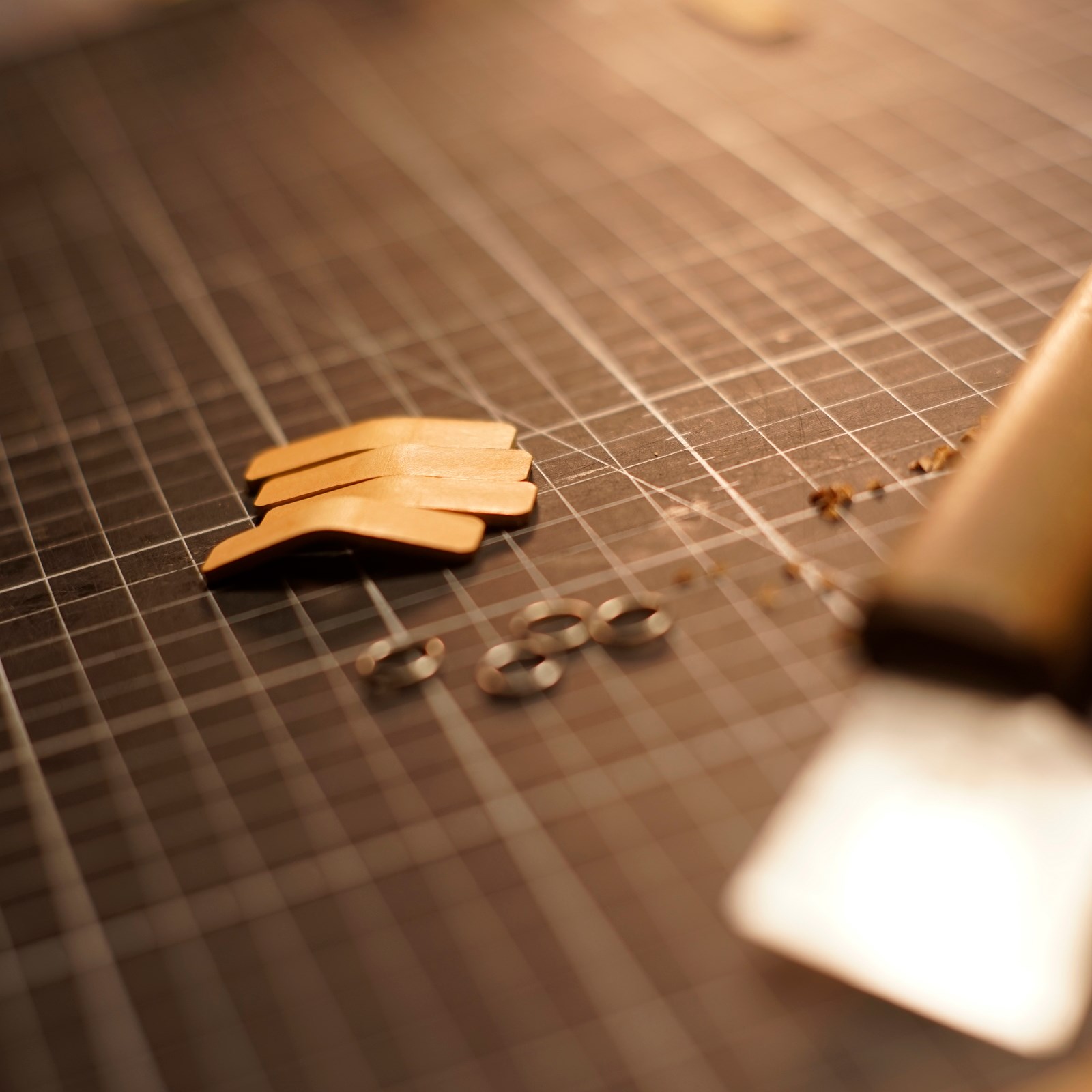 イタリアンハードの生成り革からすべてのパーツを切り出します。