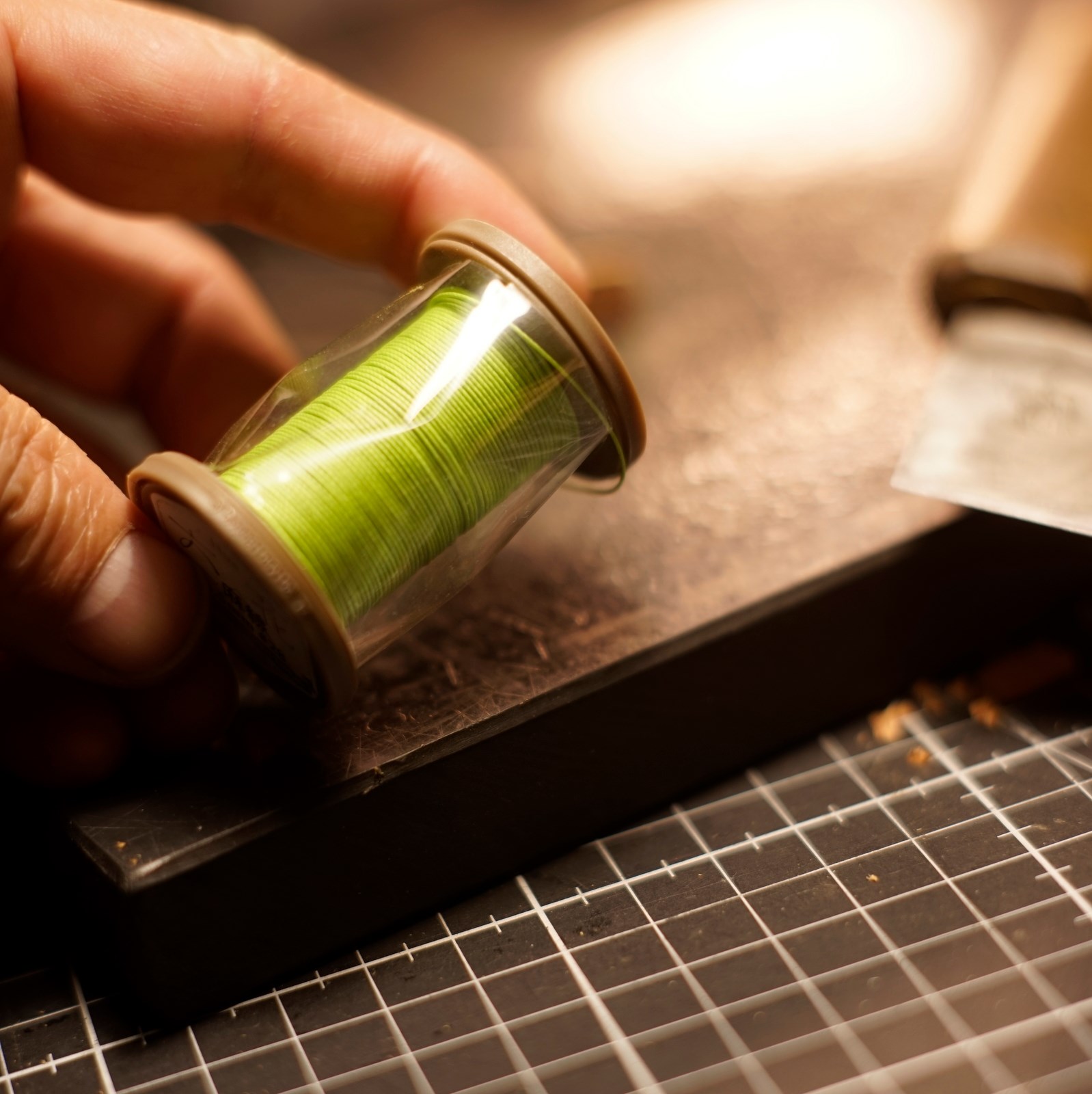 今日はUさんからご依頼頂いた生成りのカメラストラップ3型コネクターとビスケットミラーの制作を進めました。
