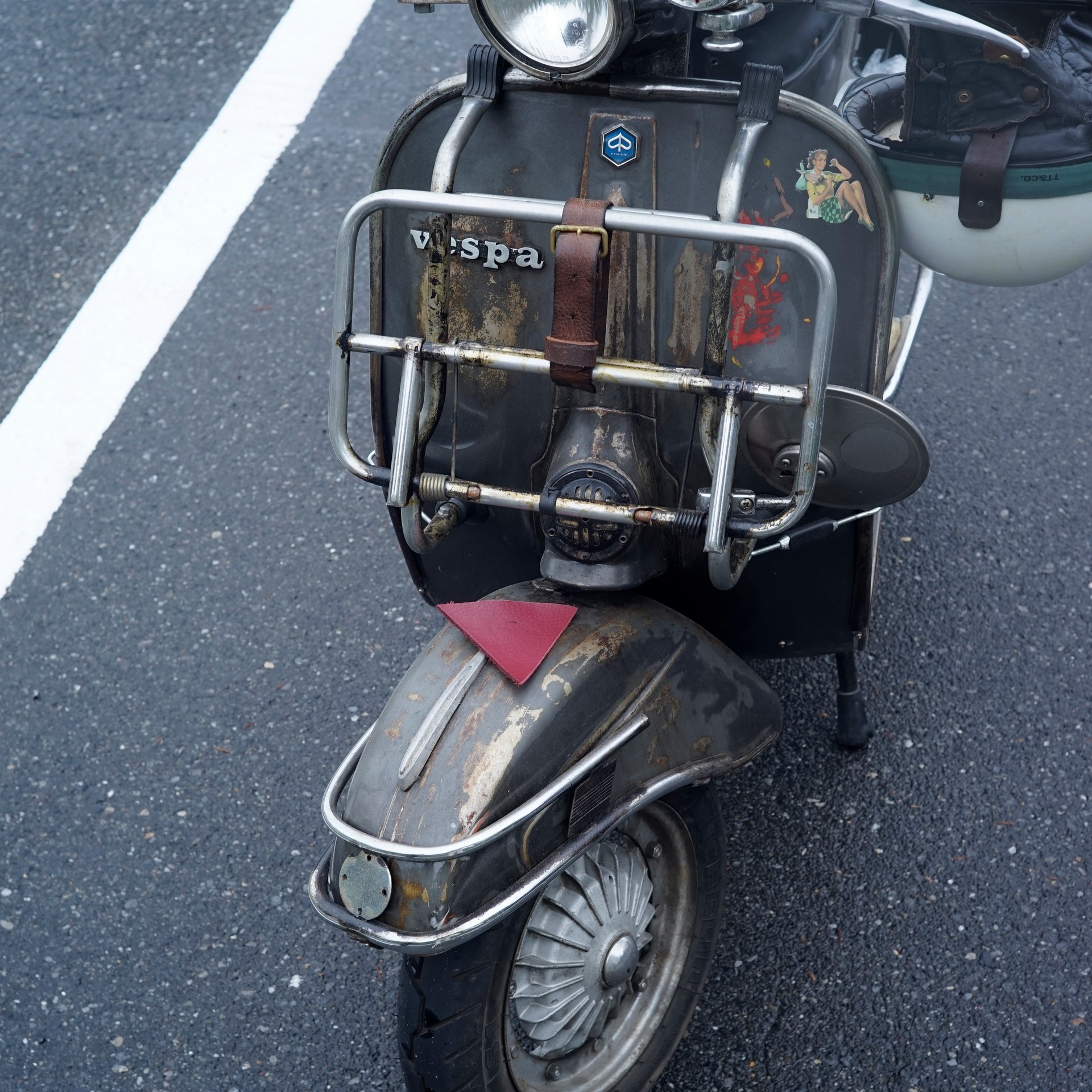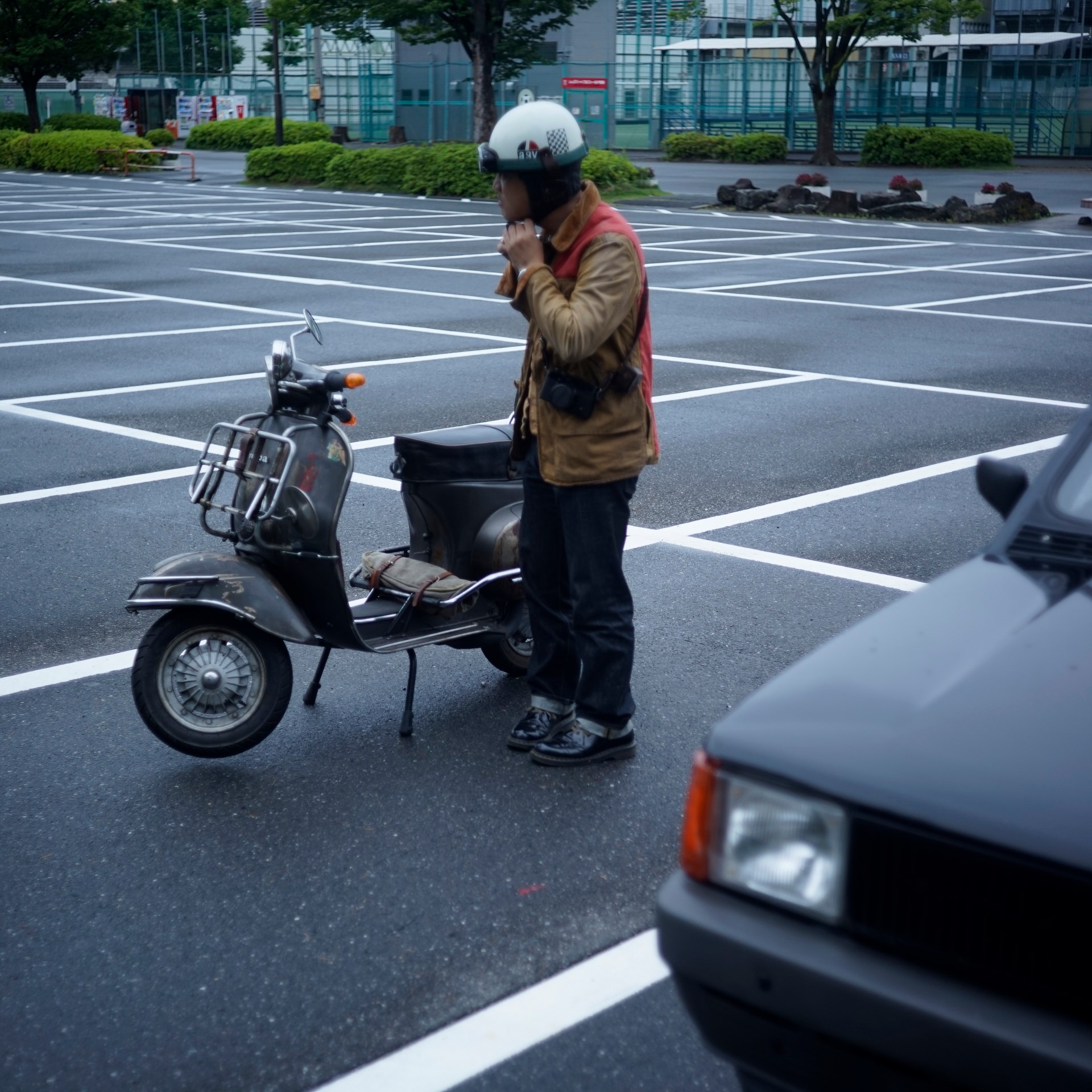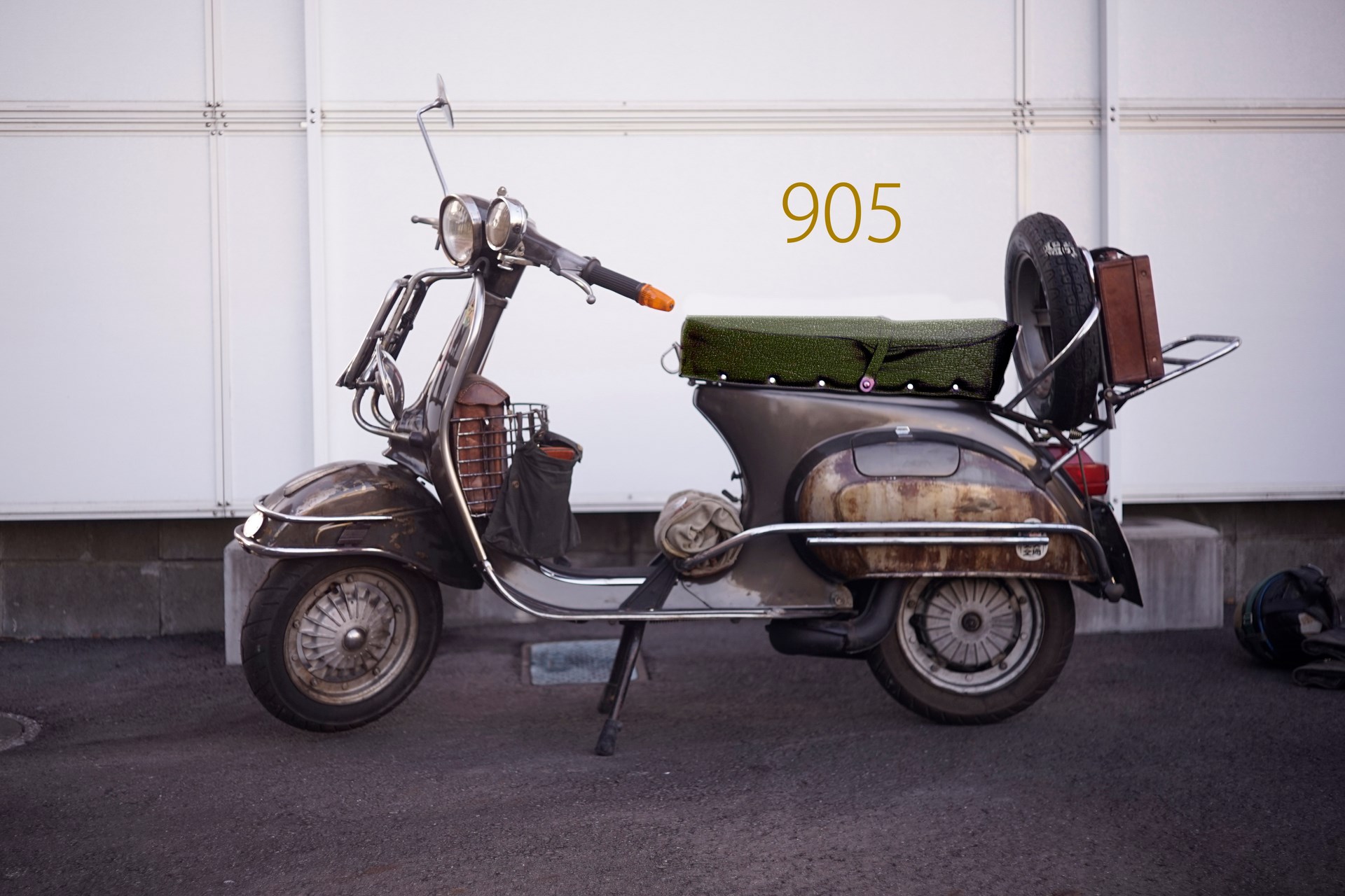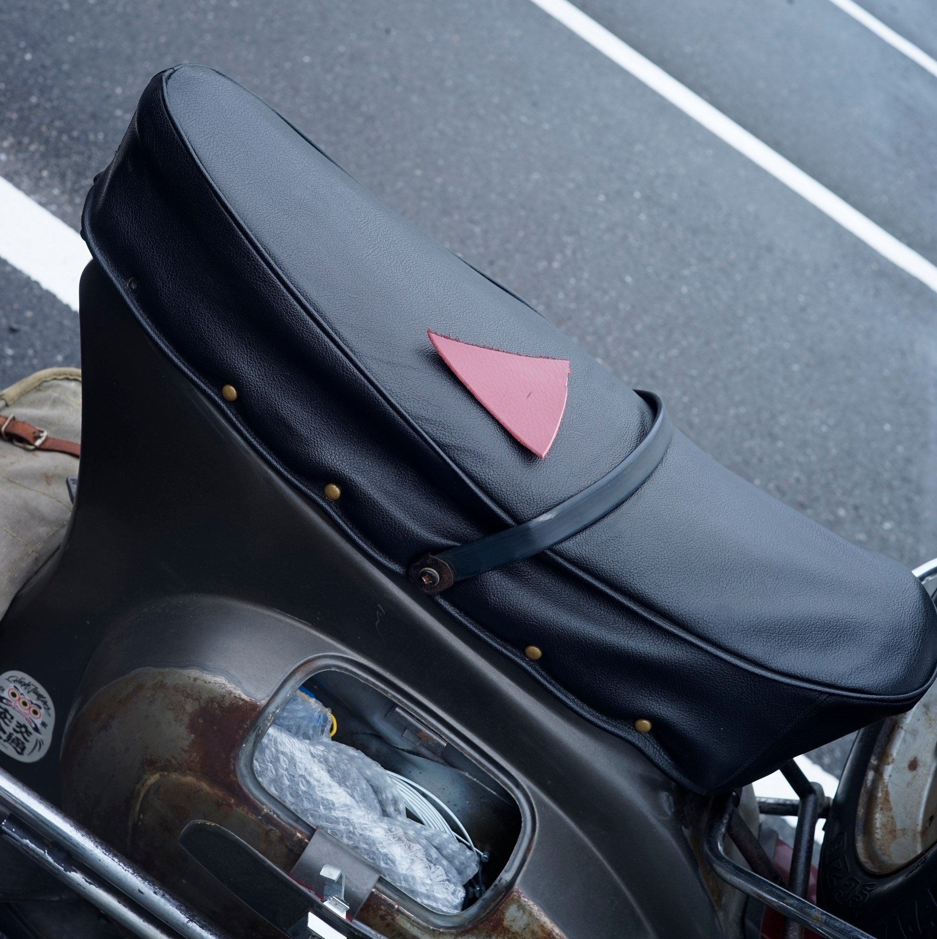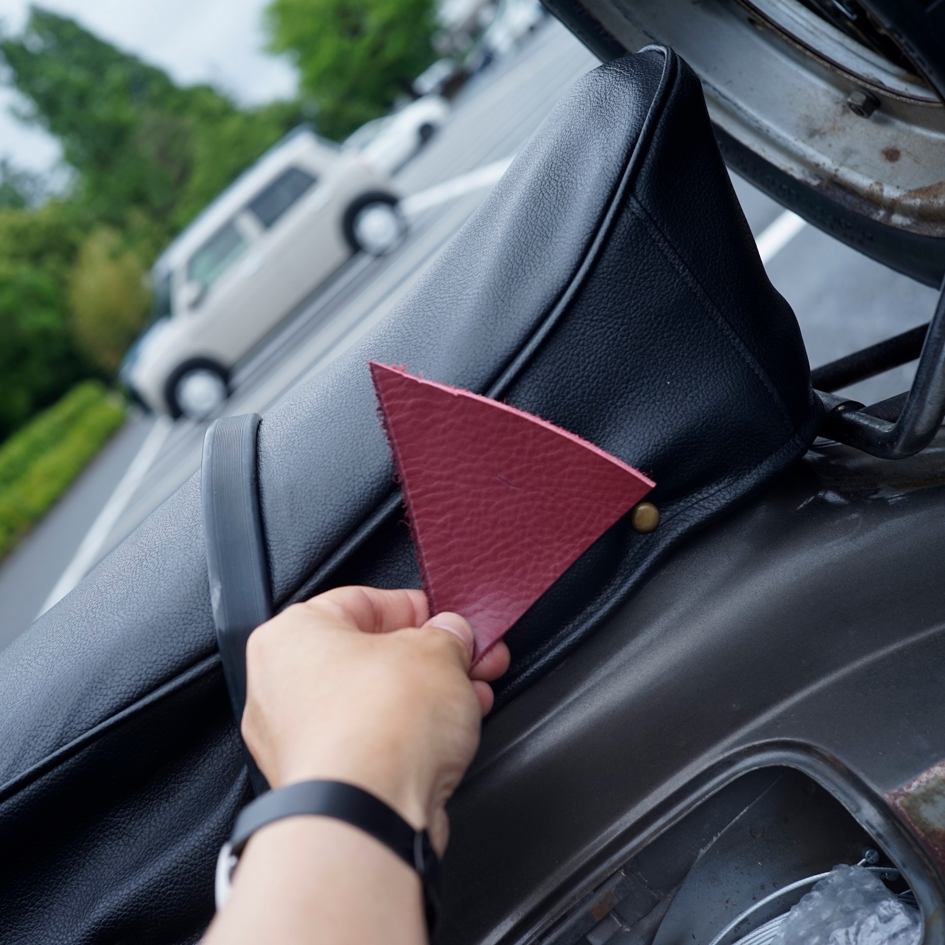 希望の革の色は緑系かボルドー系なので、クライアントのベスパの写真に希望の革を合成して完成イメージを確認してもらいます。