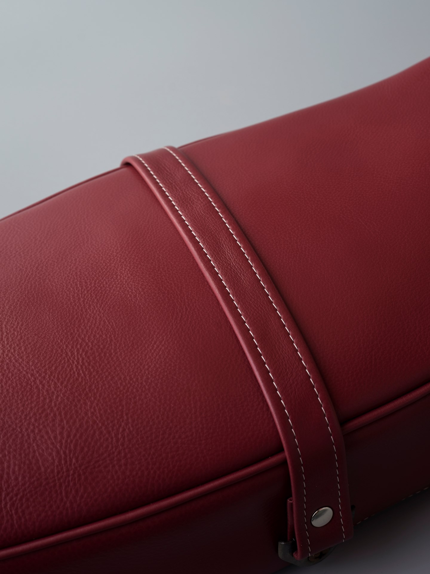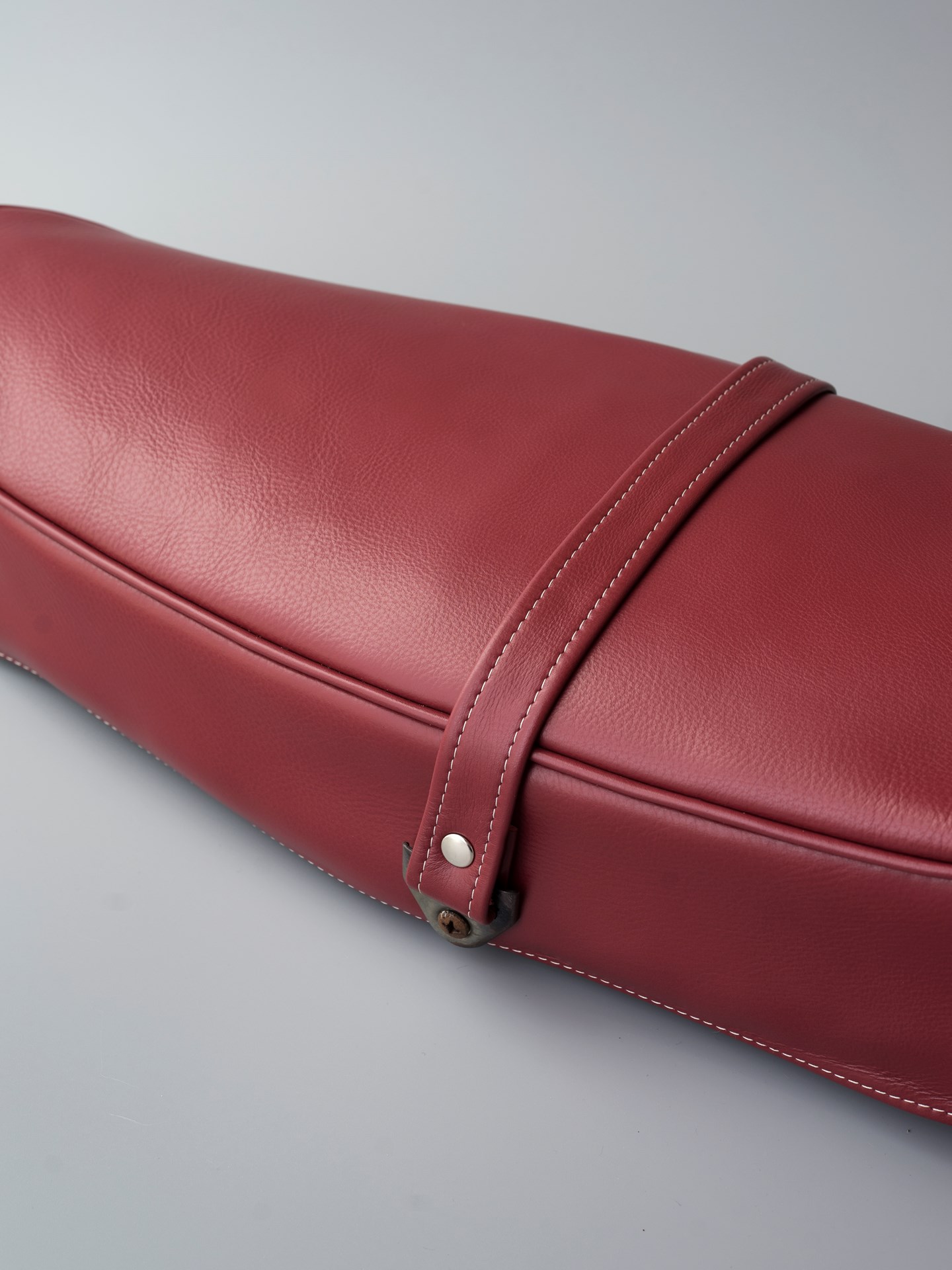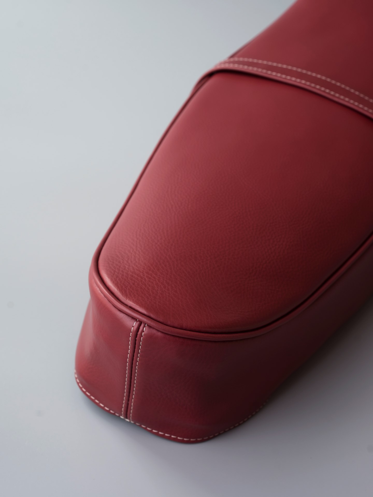 シートカバーは雨に強い牛シボ革で、経年による割れに強く長い期間上質な座り心地となります。