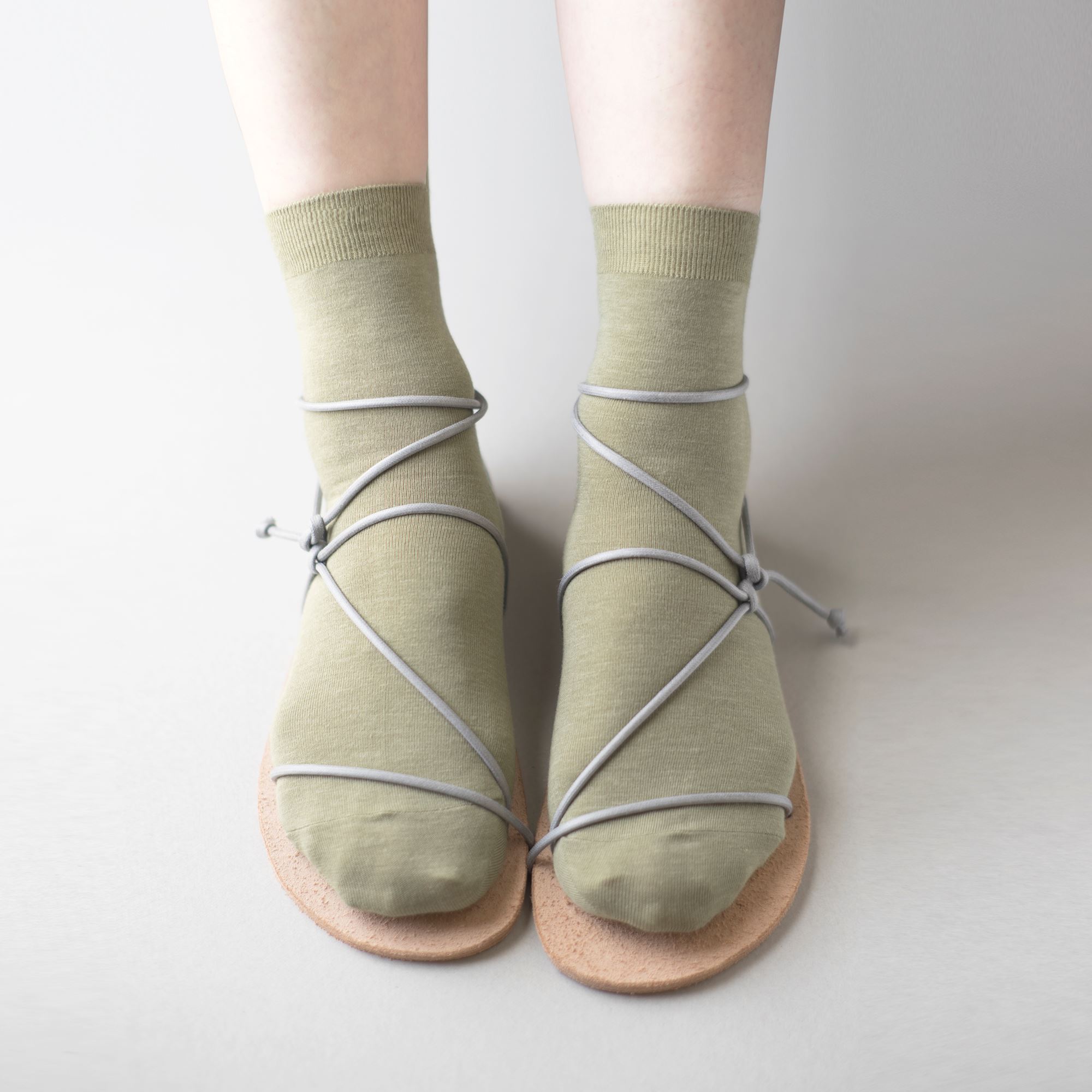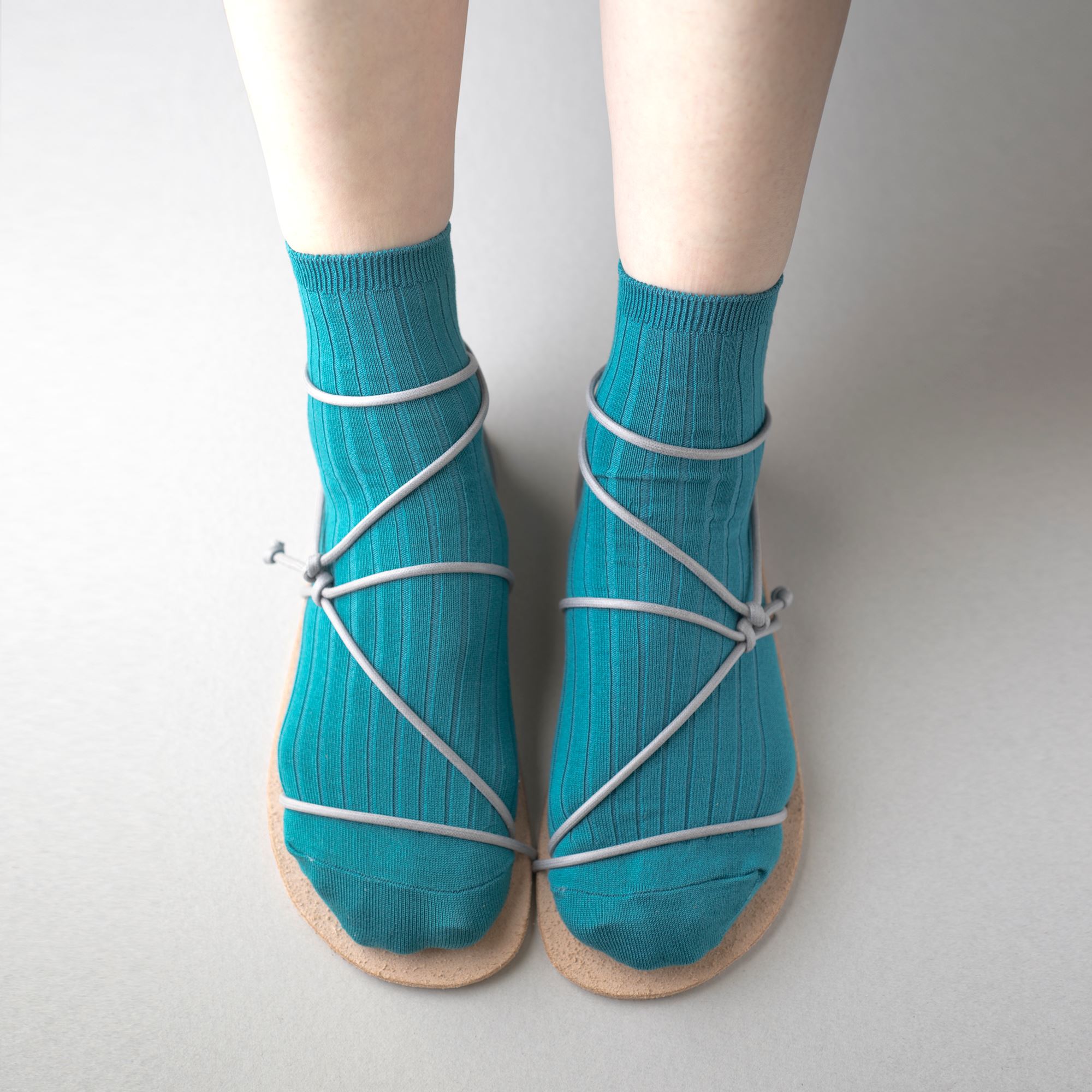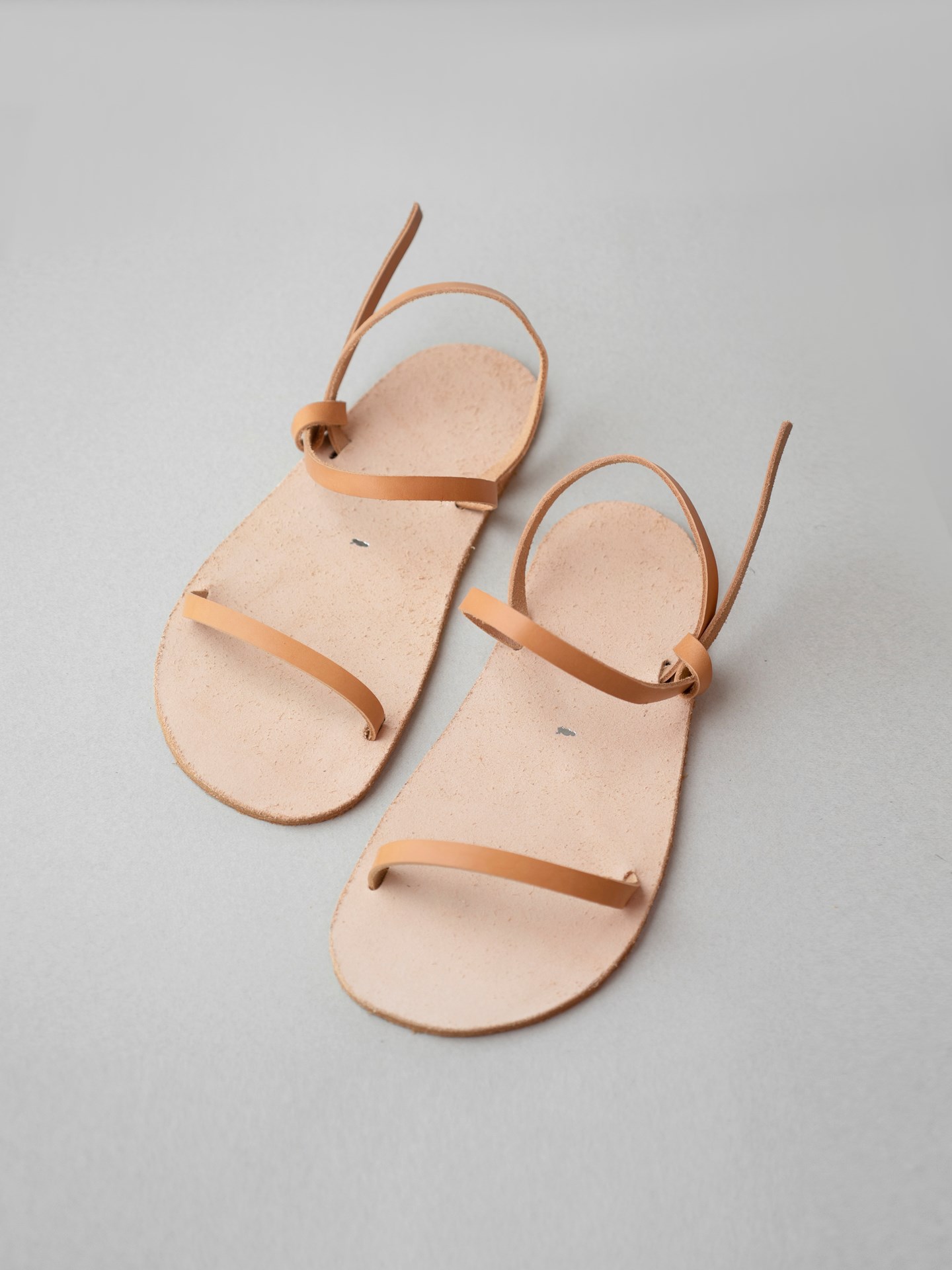 一本の紐を引っ張って足にフィットさせ、最後は結んで終わり。とてもプリミティブなサンダルです。
