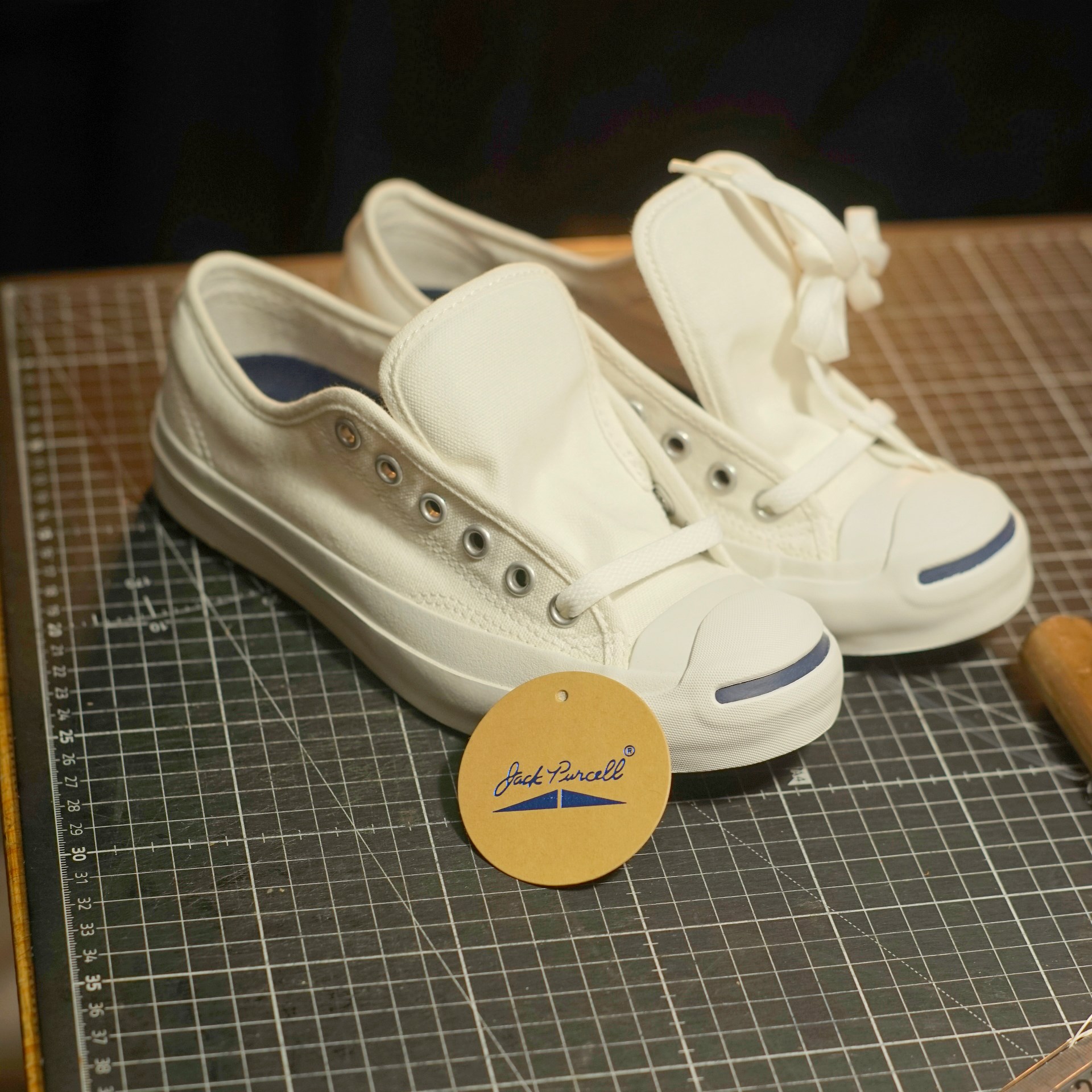 昨今の青ひげ不足ですが、在庫していた24.5の青ひげを1足用意します。今回制作するのは青ひげ改の紺革バージョンになります。