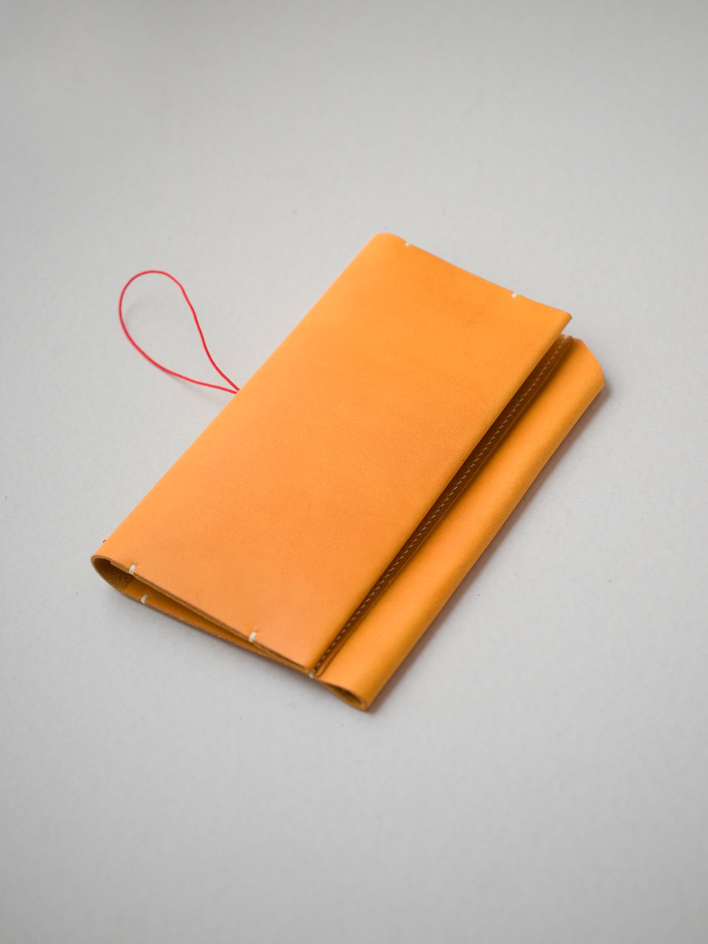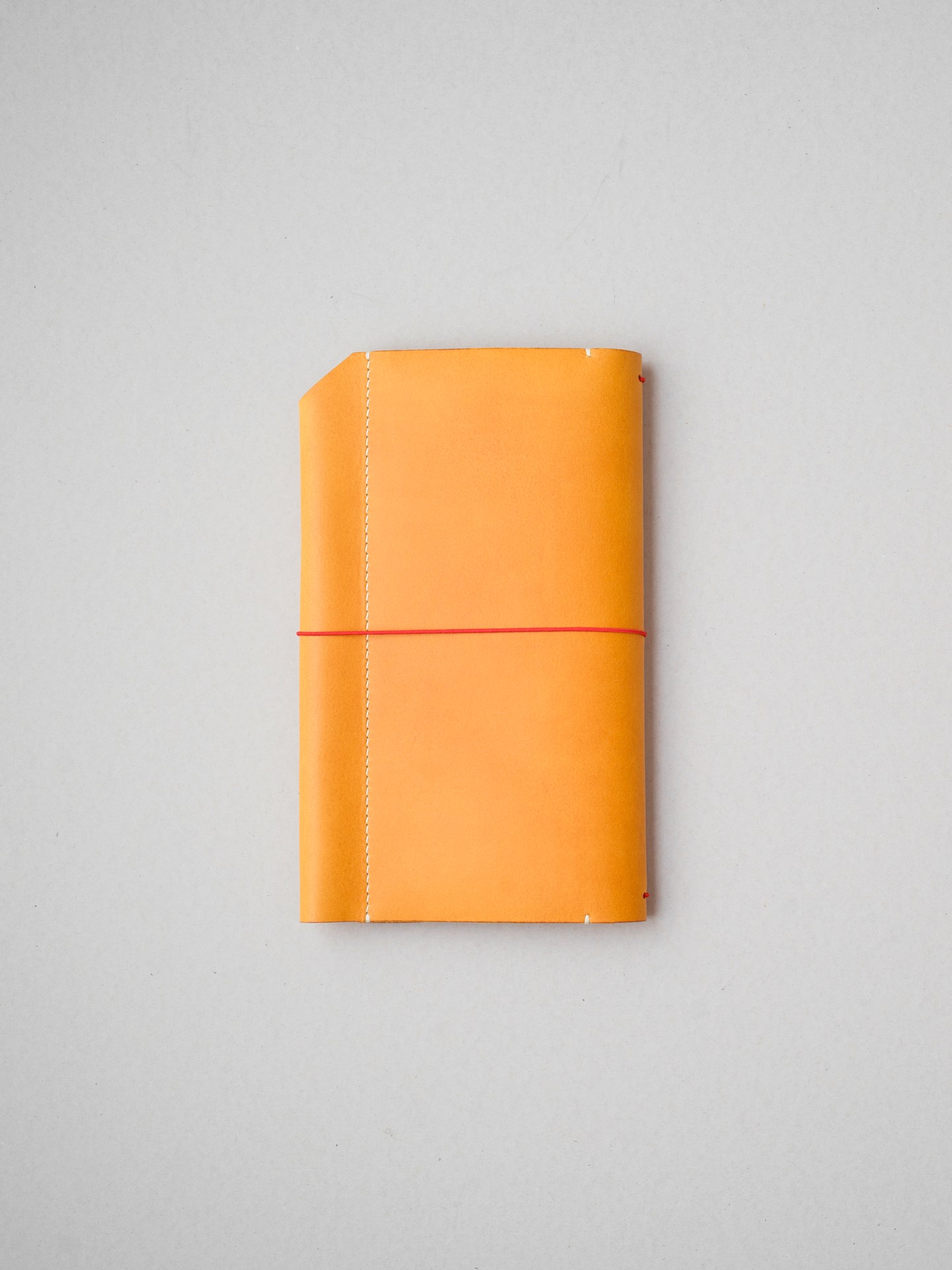 トラベラーズノート用のノートカバーです。植物タンニン鞣し革にラミー糸で手縫いを施したシンプルなつくり。太めのペンもしっかり収納できます。ゴム紐つきで挟めるリフィルが増やせます。カバーのバインドも可能です。
