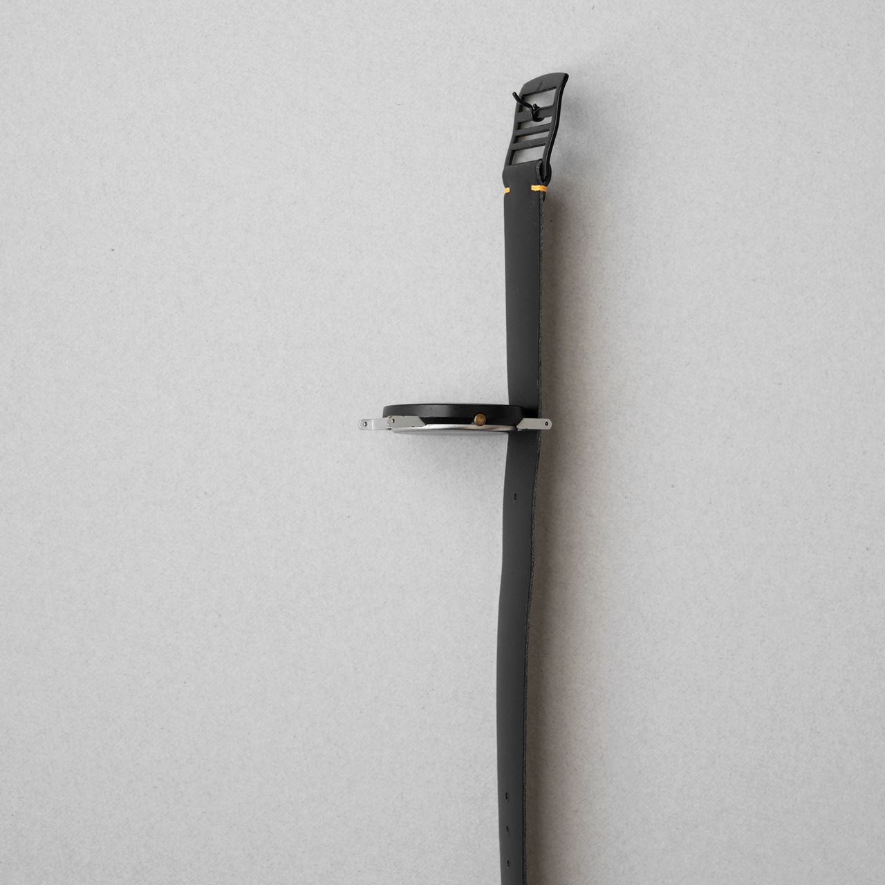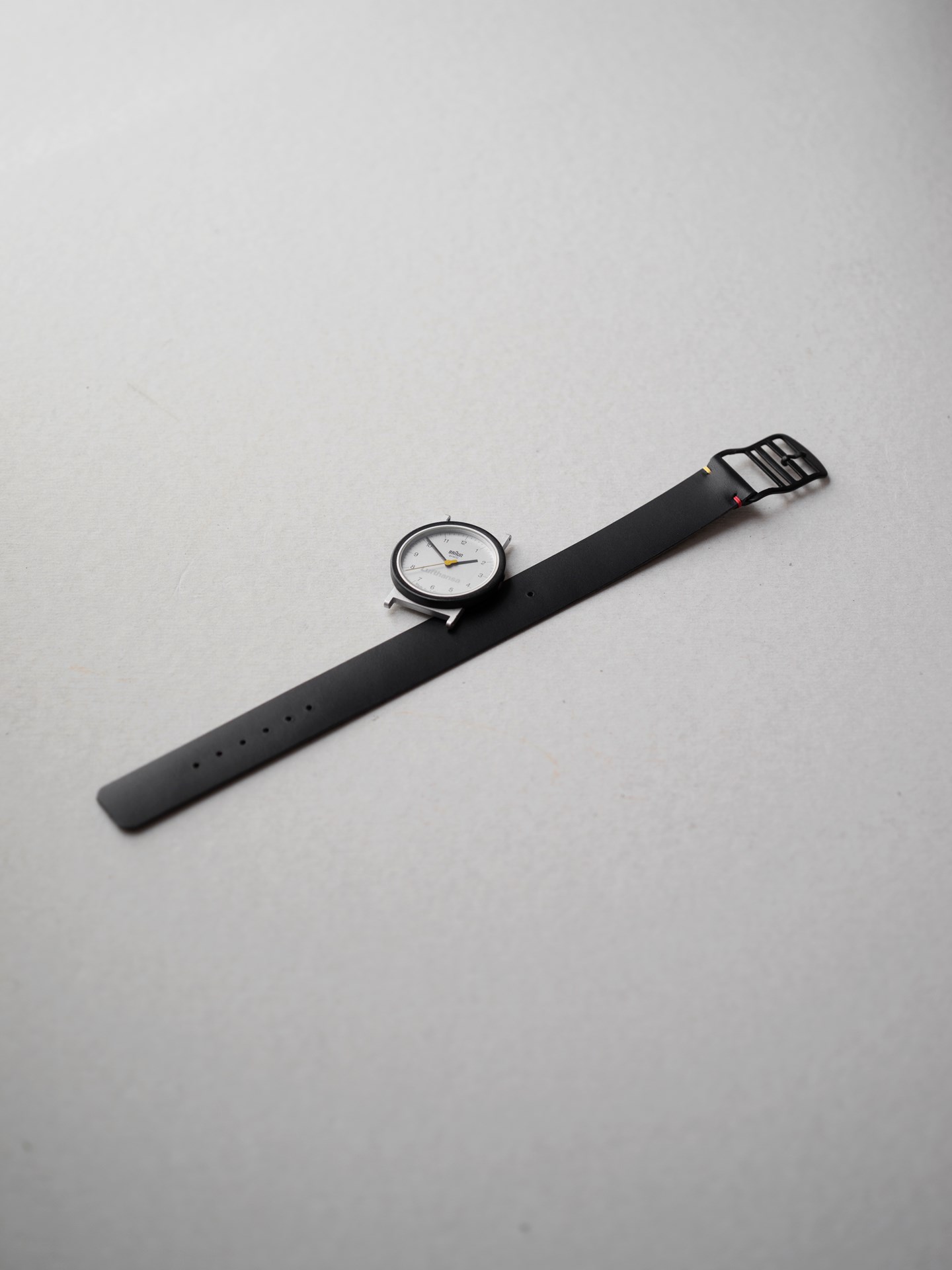 ドイツBRAUNの名作時計AWシリーズのためのレザーストラップです。薄くてもハリのあるイタリア鞣し革を、貼り合わせや縫い合わせをせず1枚革で使用しています。また、バックルはスイス軍式を採用し、ベルトループを無くすことで、AWシリーズのデザインポリシーにマッチしたシンプルなストラップになりました。