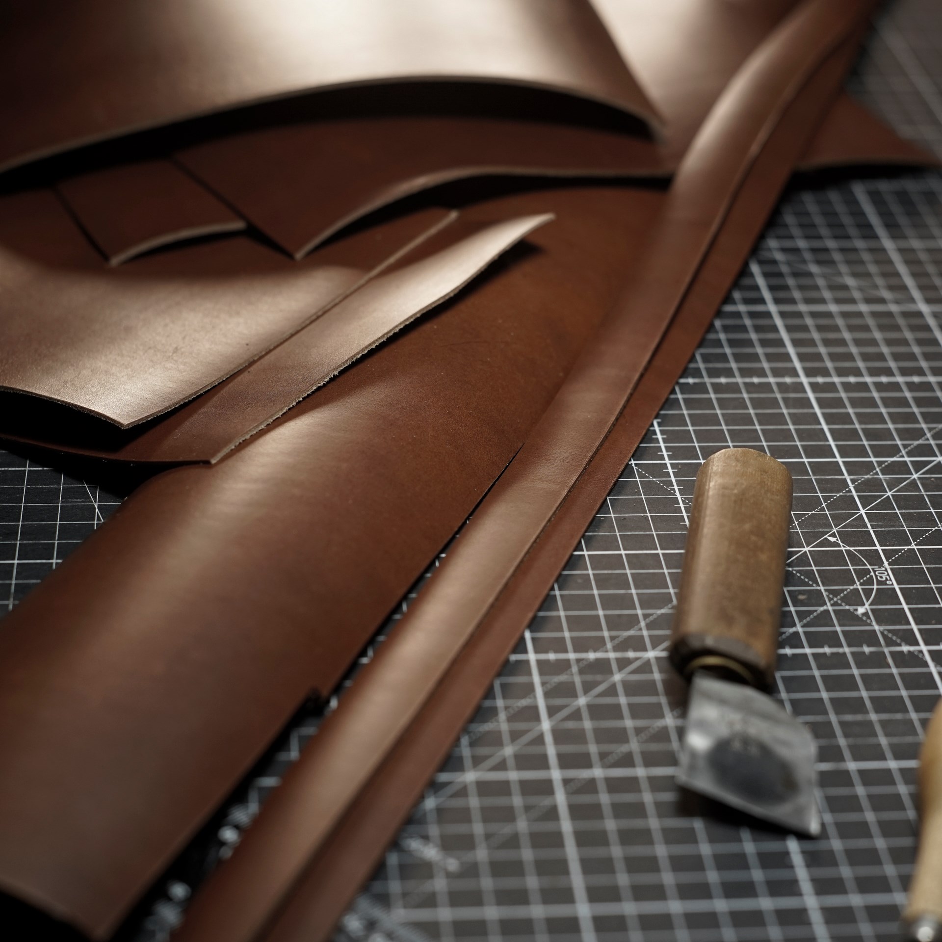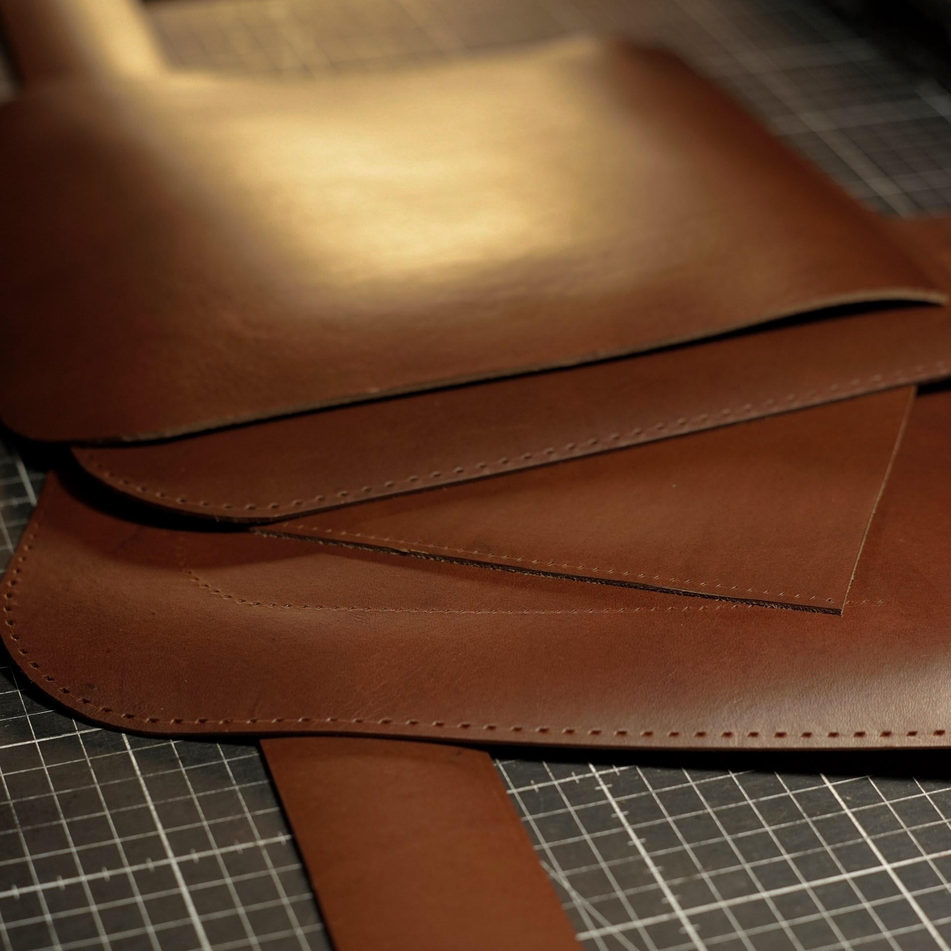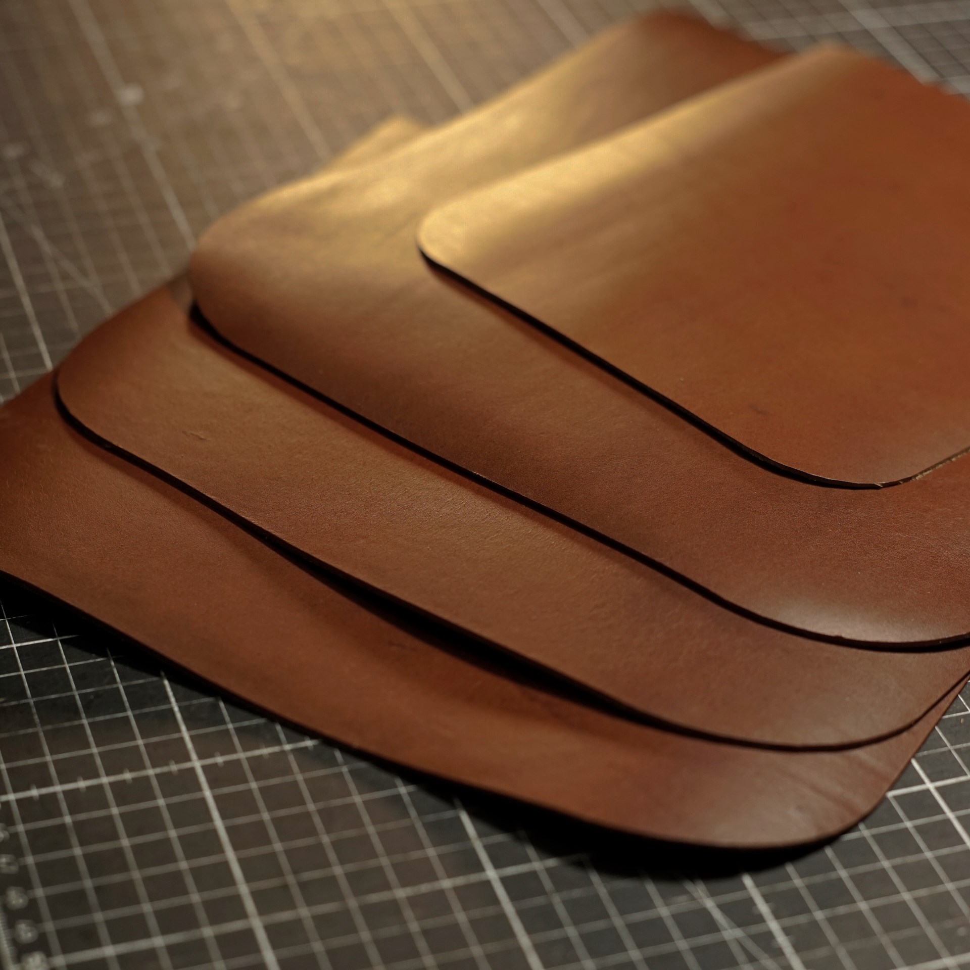 今回はイタリアンハードのチョコでおつくりします。普通はイタリアンソフトを使用しますが、今回はコシのあるハードです。革の切り出しと穴あけなど下準備を進めていきます。