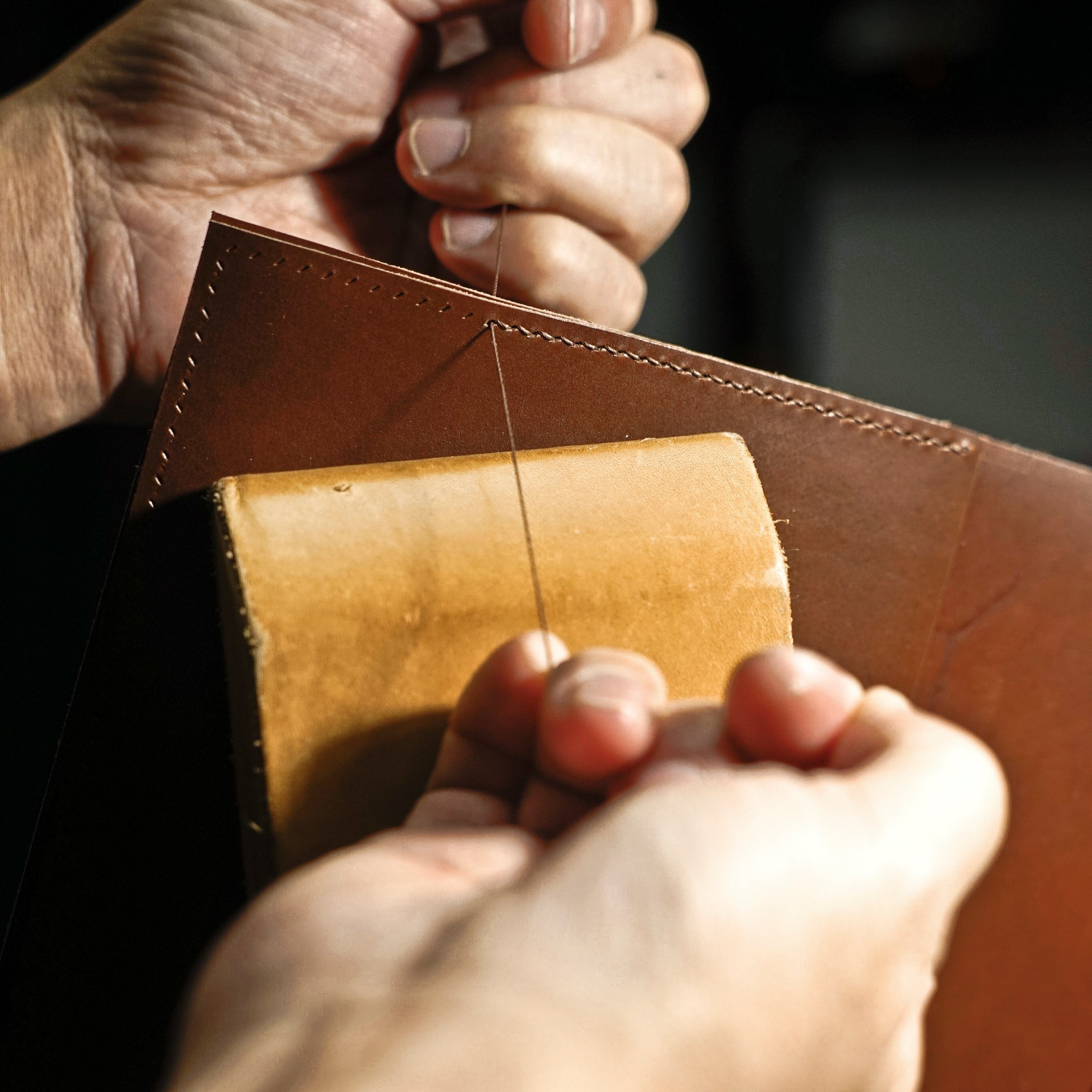 内ポケットと外ポケットの手縫いが終わりました。これから本体部分の手縫いに取り掛かります。
